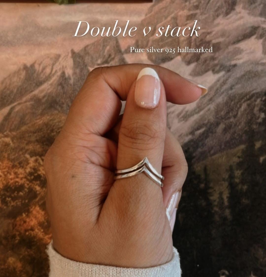 pure silver 925 hallmarked -The Double v Stackable Ring