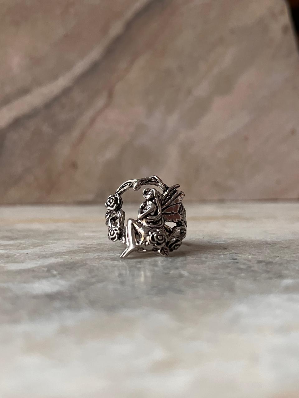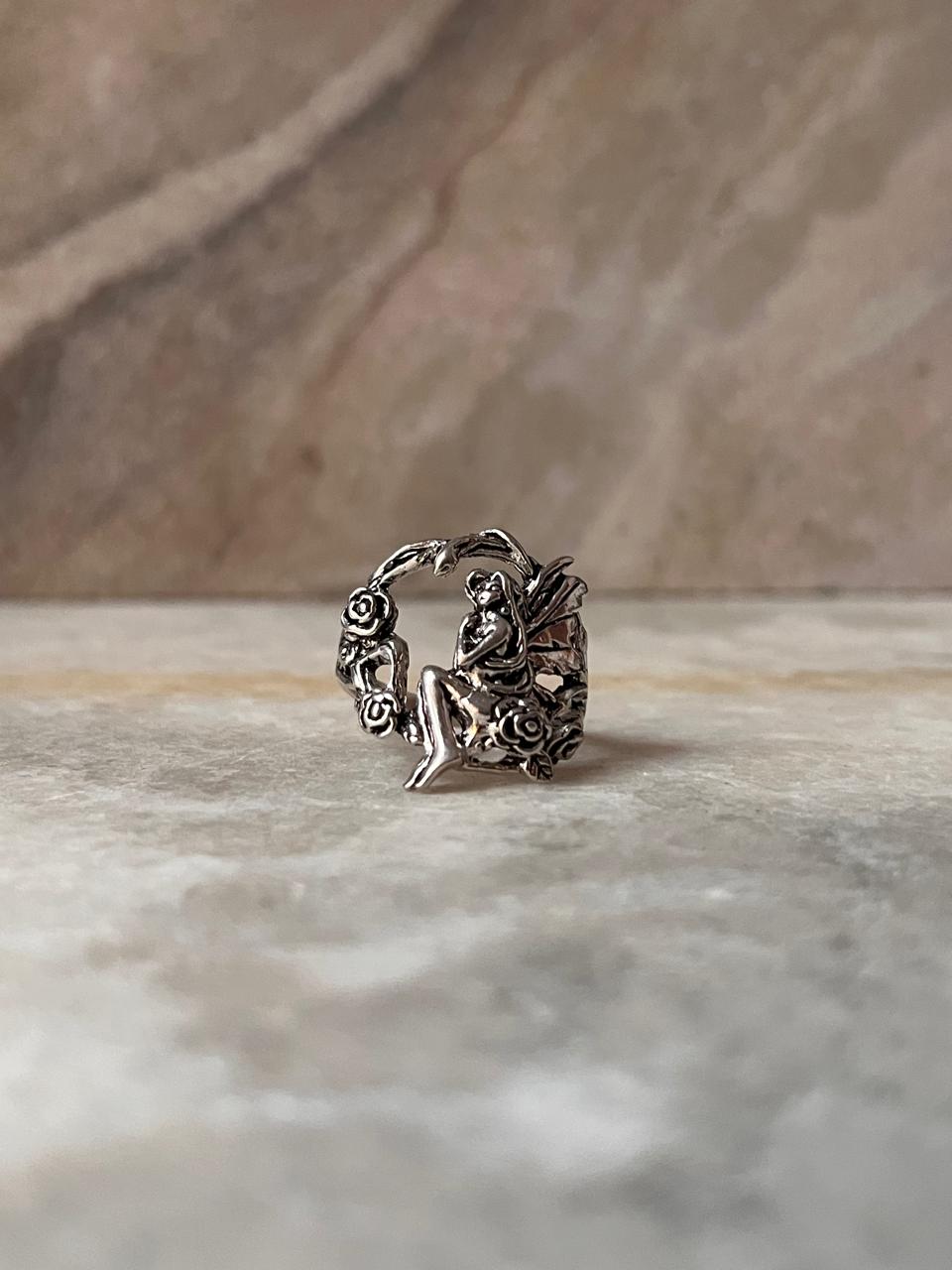 "Step into a world of fantasy with this 'fairy in the forest' ring. Its intricate details bring to life the charm and allure of a fairy’s secret woodland hideaway."