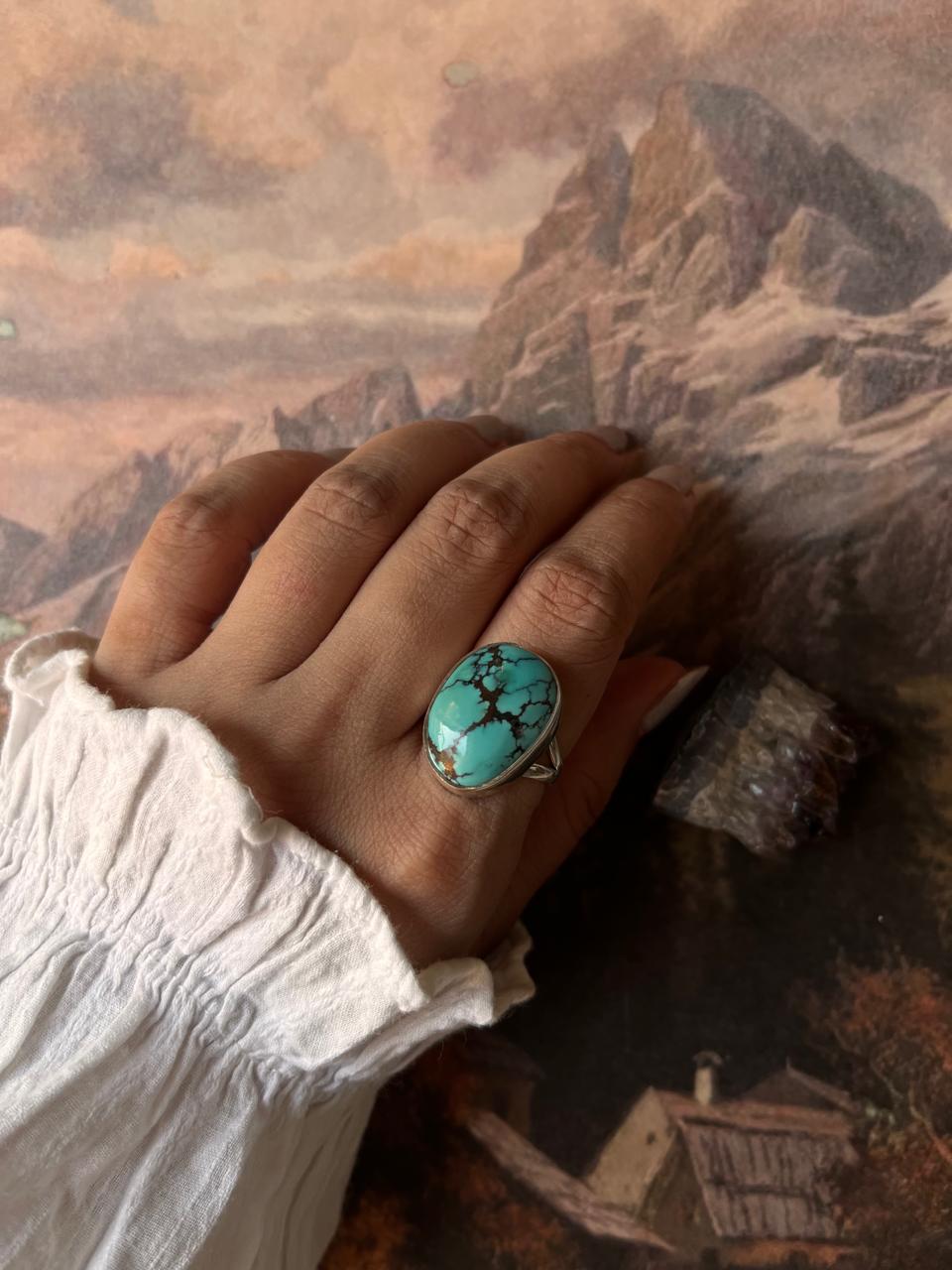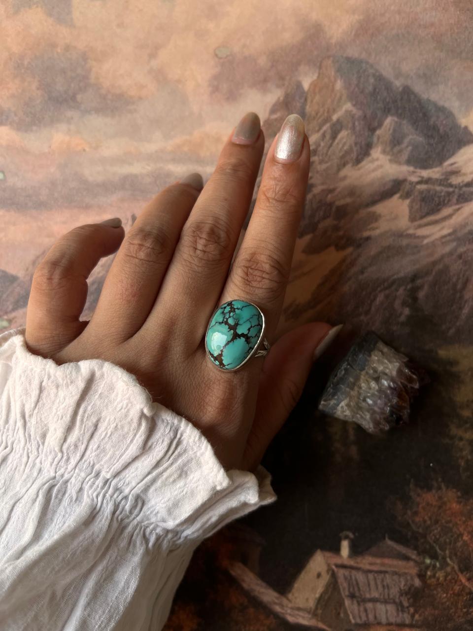 The Turquoise Big Oval 925 Sterling Silver Ring features a stunning large oval turquoise stone, celebrated for its vibrant blue-green hues and protective, healing properties. Set in durable 925 sterling silver, this bold statement piece blends timeless elegance with bohemian charm, making it perfect for those who want to add a pop of color and positive energy to their jewelry collection.