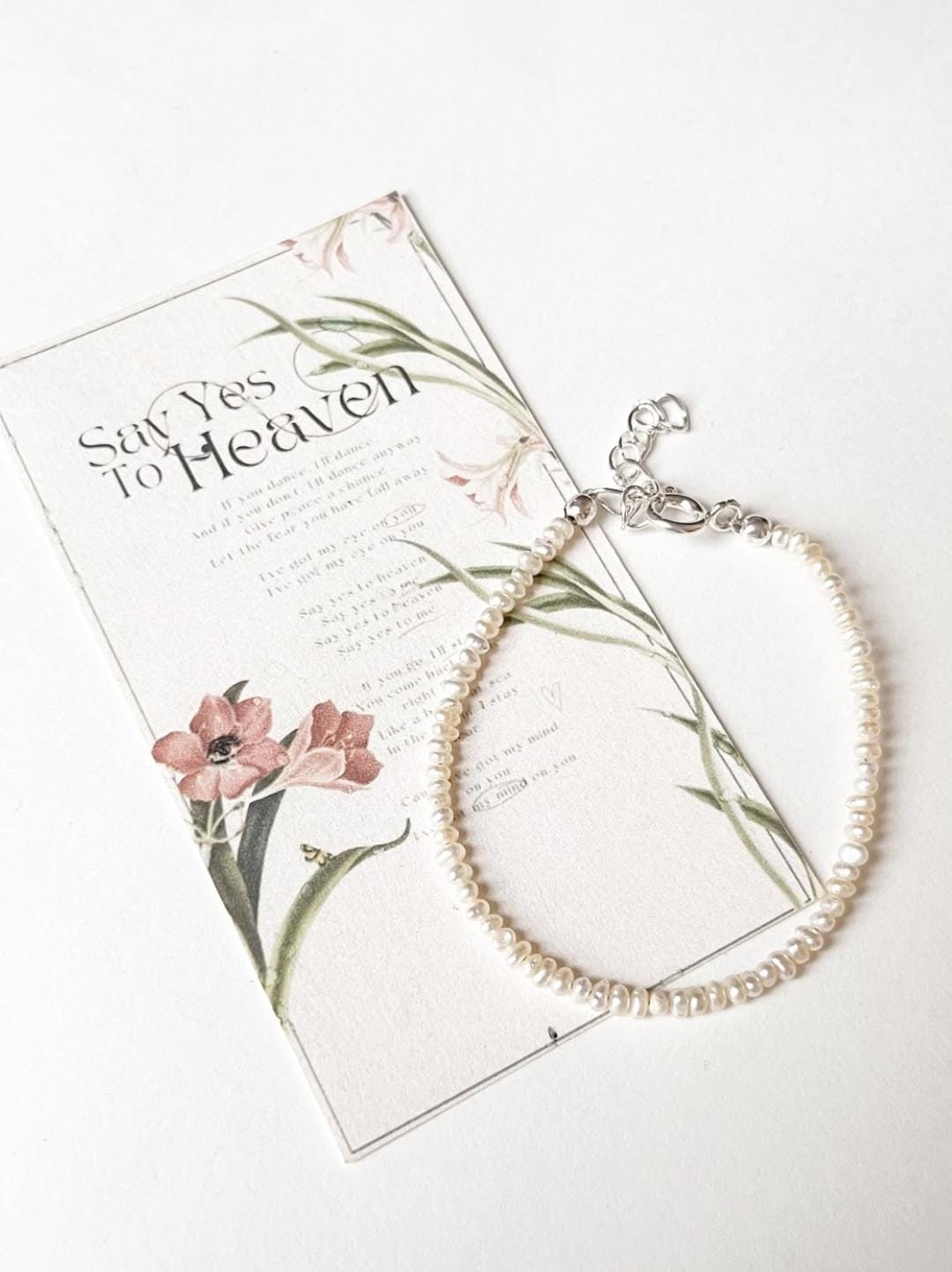 Graceful and timeless, this bracelet features luminous 2mm warm-tone freshwater pearls, elegantly strung and secured with a 925 sterling silver lock. Pearls are symbols of purity, wisdom, and emotional balance, cherished for their calming energy and classic elegance. Their delicate size makes this piece perfect for stacking or wearing solo for a subtle touch of sophistication. A versatile and meaningful accessory that reflects inner grace and enduring beauty.