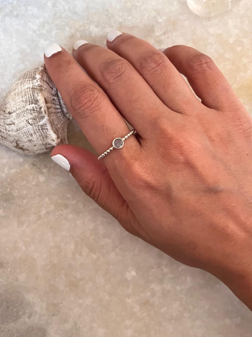 Expertly crafted and beautifully designed, our Full Dot Band Labradorite Silver Ring is a must-have addition to any jewelry collection. Made with premium labradorite and sterling silver, this ring exudes elegance and sophistication. With its full dot band design, it offers a unique and eye-catching look that is guaranteed to elevate any outfit. Add a touch of timeless beauty to your style with our Full Dot Band Labradorite Silver Ring.