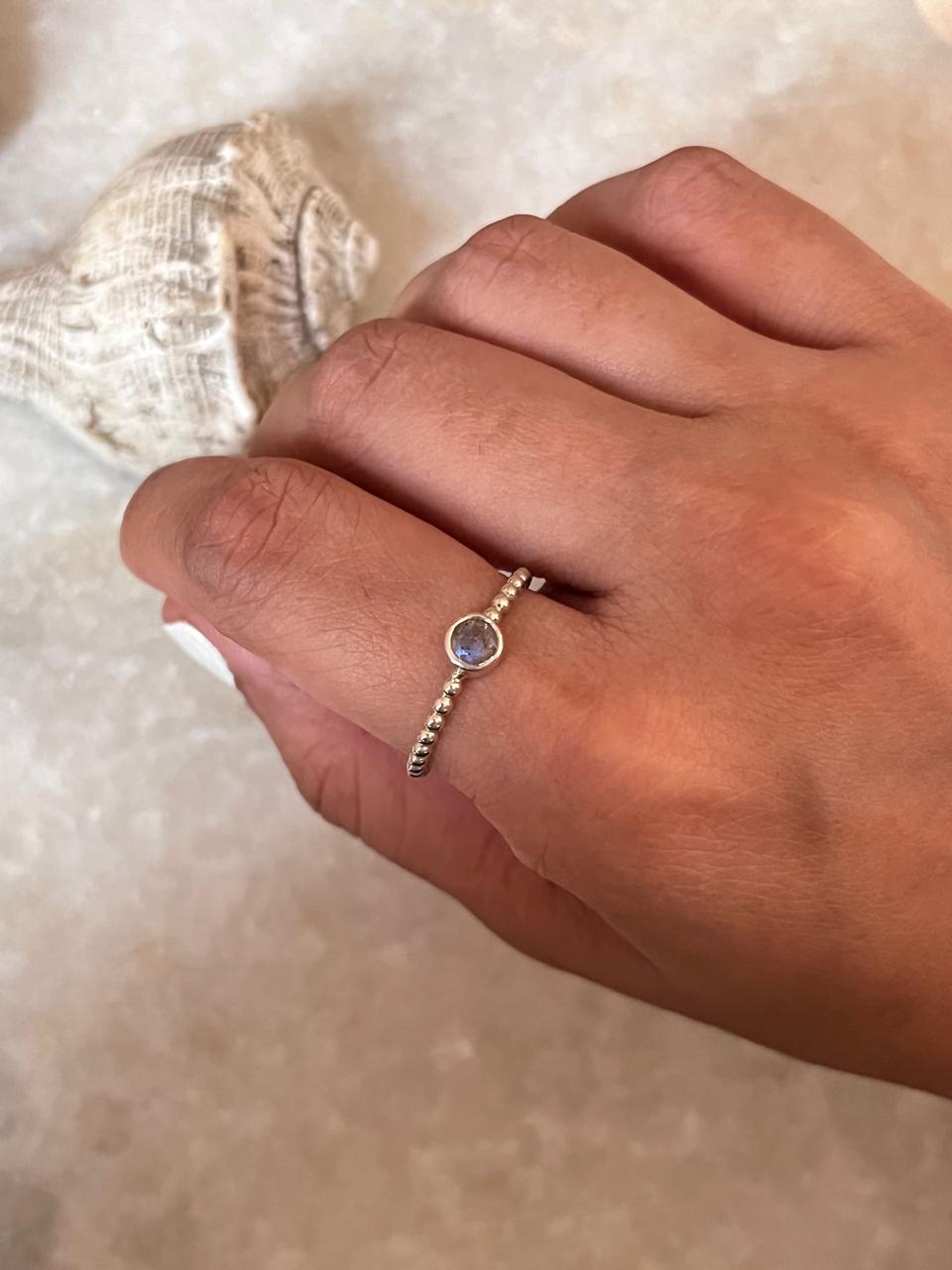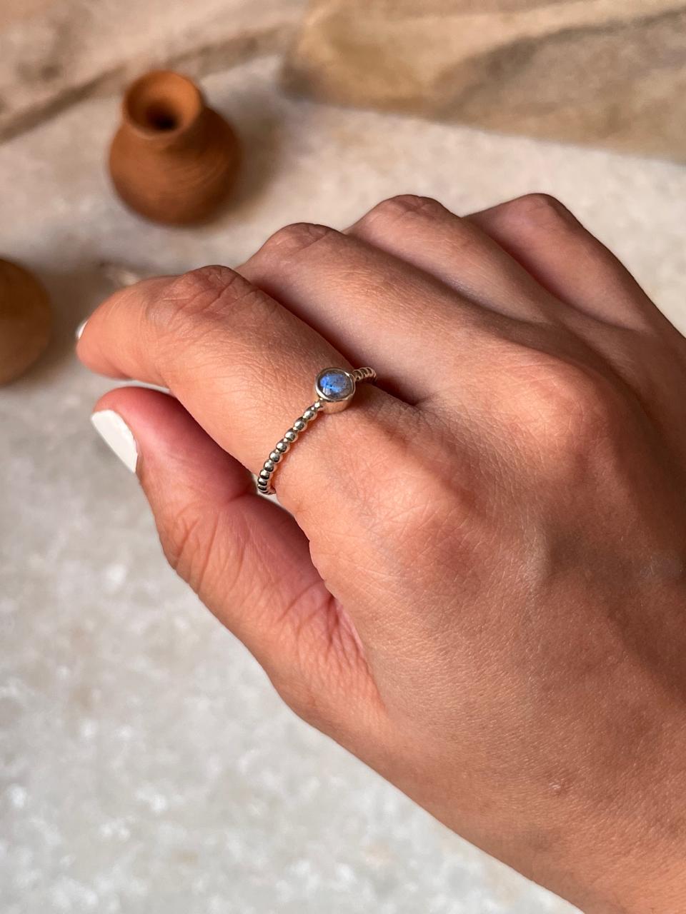 Full Dot Band Labradorite 925 Sterling Silver Ring