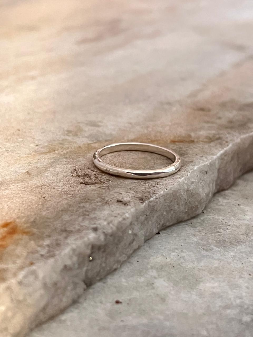 Random Hammered Sleek Stack Band 925 Sterling Silver Ring
