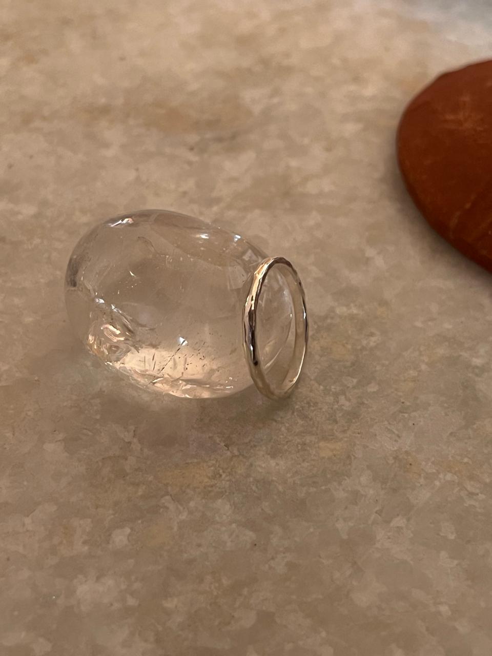 The Random Hammered Sleek Stack Band 925 Sterling Silver Ring features a modern, textured design with irregular hammered patterns that catch the light beautifully. Its sleek, stackable style adds versatility, allowing you to mix and match for a personalized look. Crafted from sterling silver, this ring combines contemporary edge with artisanal charm, perfect for adding subtle yet striking detail to your jewelry collection.