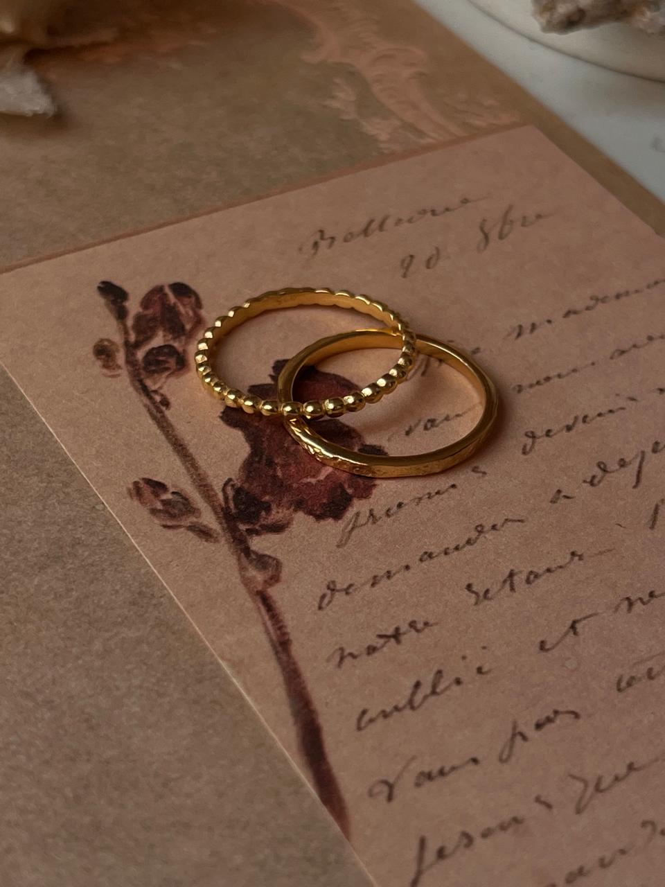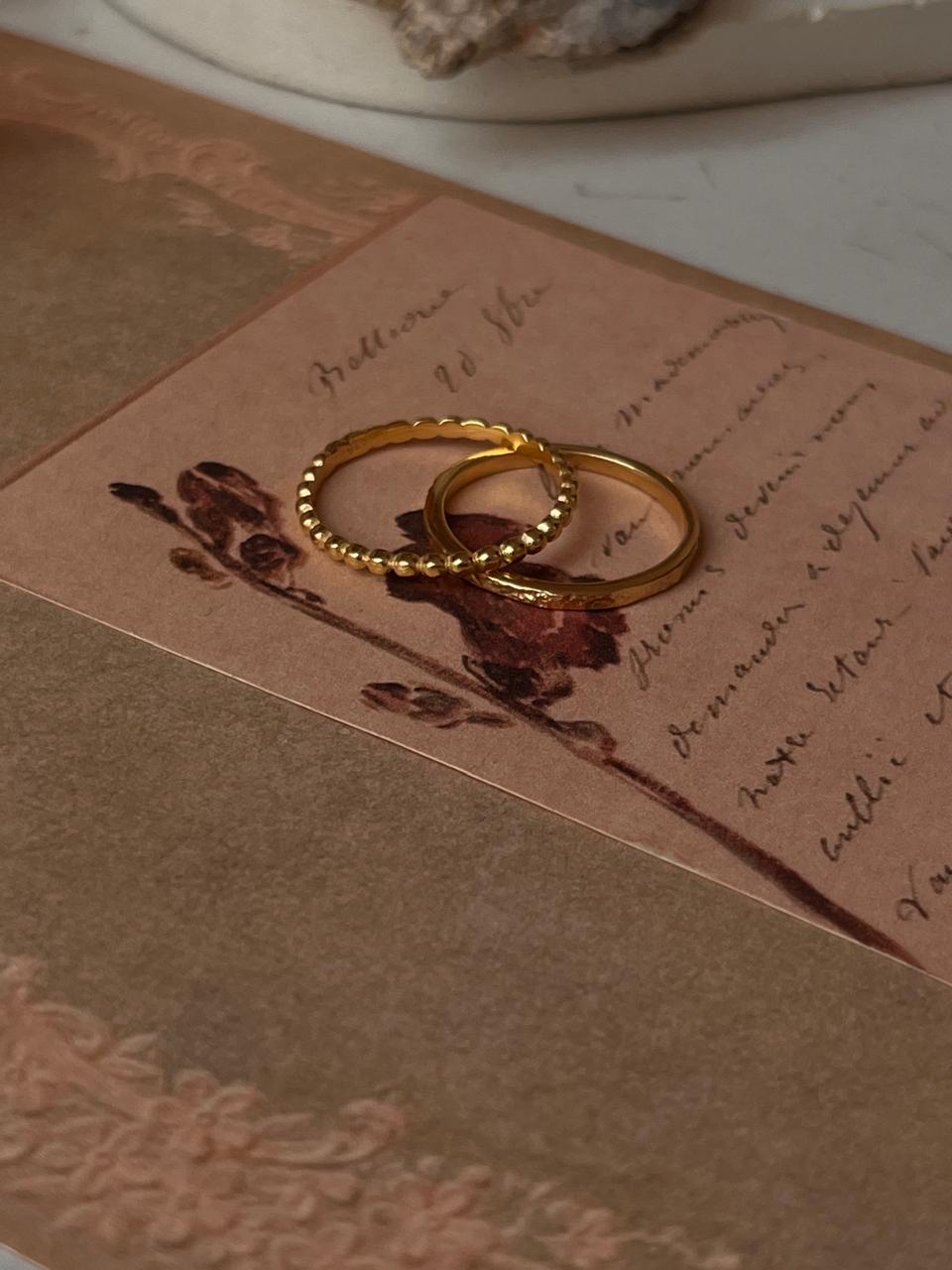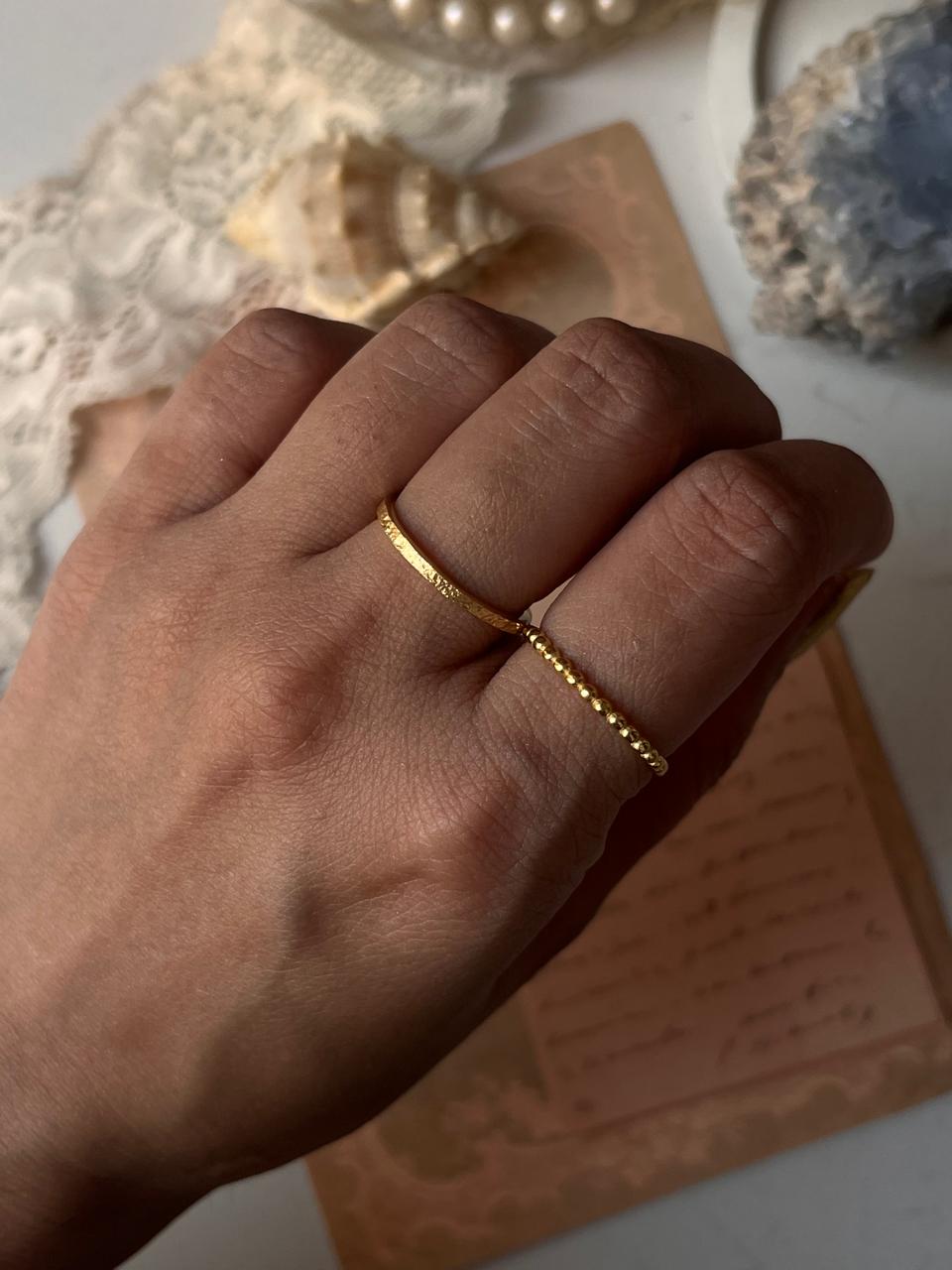The Gold Vermeil Textured & Big Dot Stack Set 925 Sterling Silver Ring features a striking combination of textures that exude a contemporary charm. The set includes a richly textured band and a playful big dot-studded band, both crafted in warm gold vermeil over sterling silver. This dynamic pairing offers a modern, eye-catching look perfect for stacking or wearing alone, symbolizing confidence, creativity, and individuality in any jewelry collection.