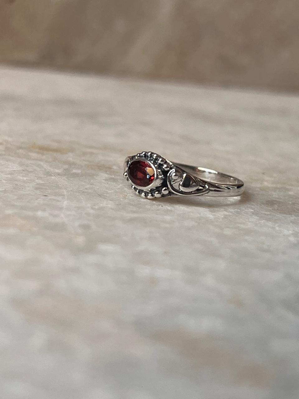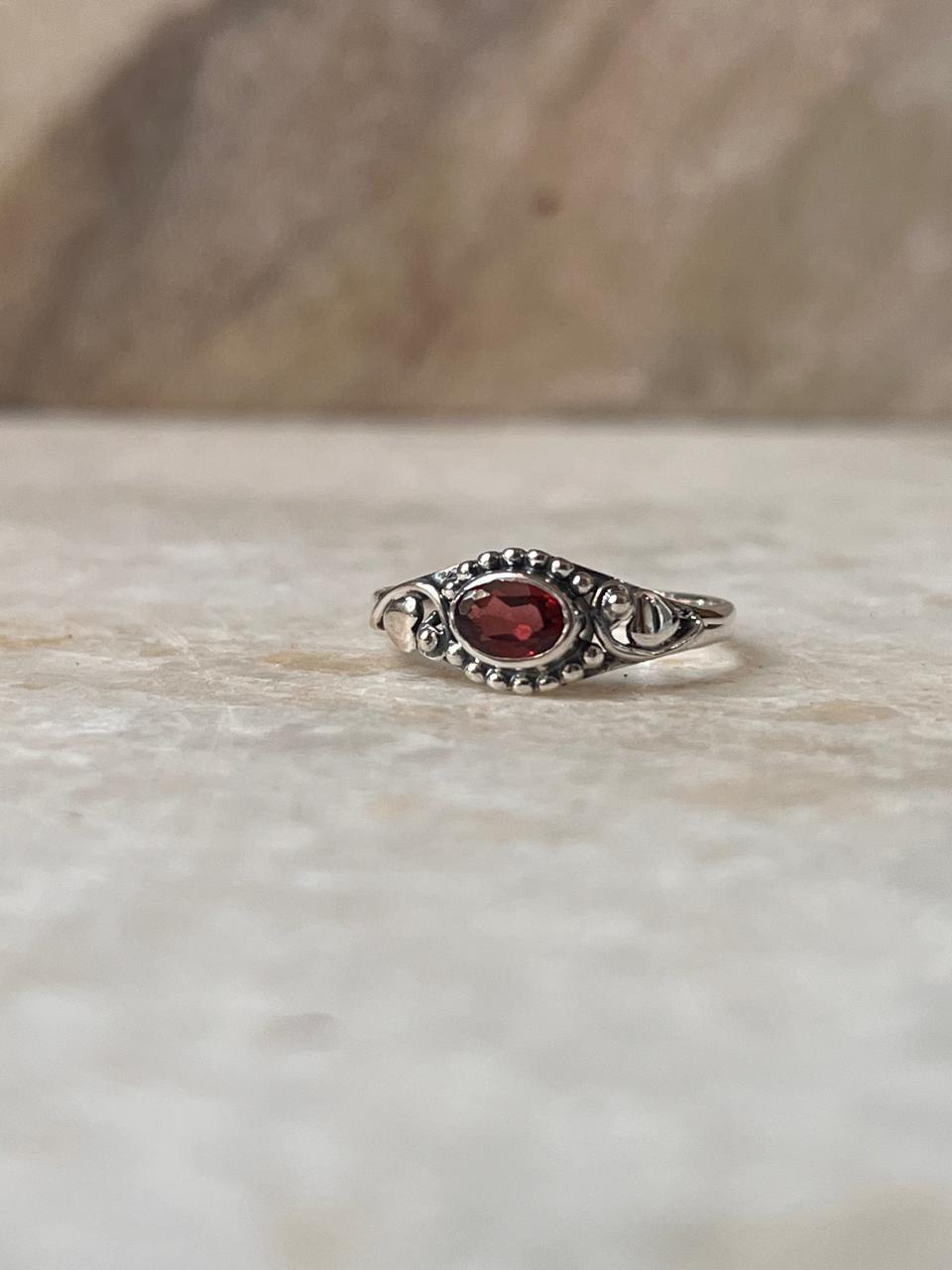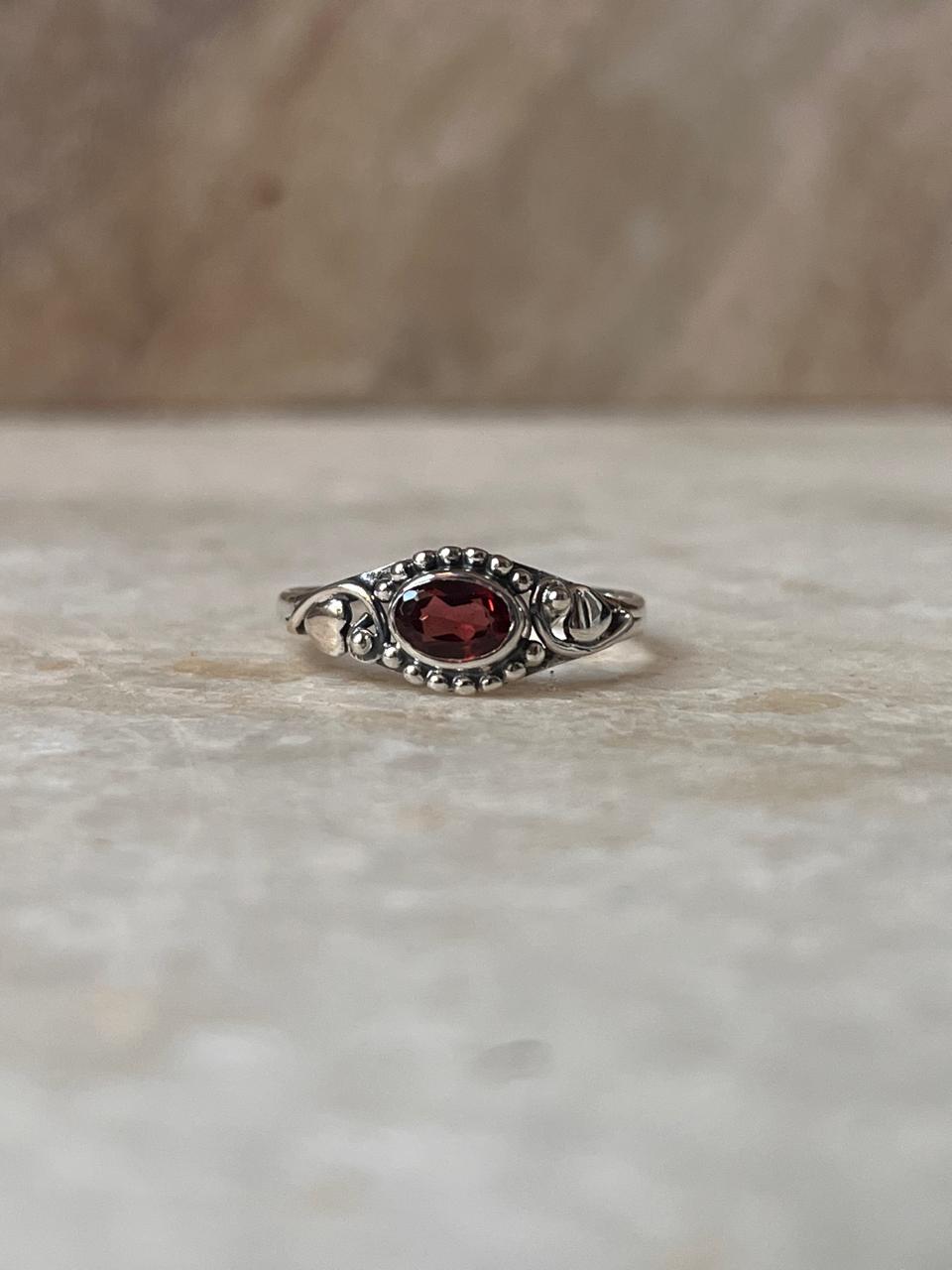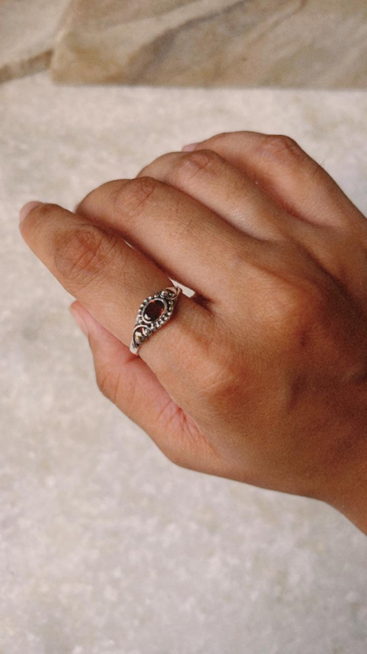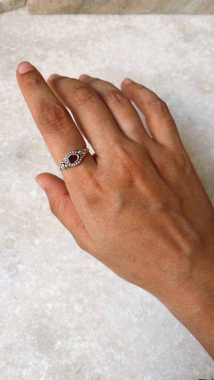 Elegant and timeless, the Garnet Oval Rawa 925 Sterling Silver Ring features a deep red garnet in a detailed rawa setting. A perfect blend of vintage charm and bold energy.