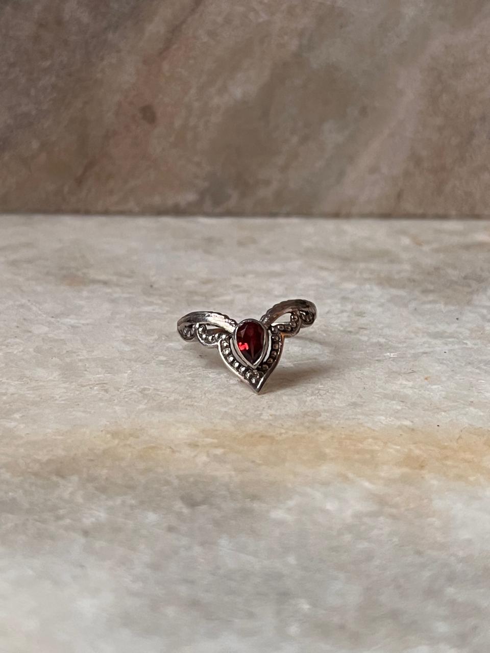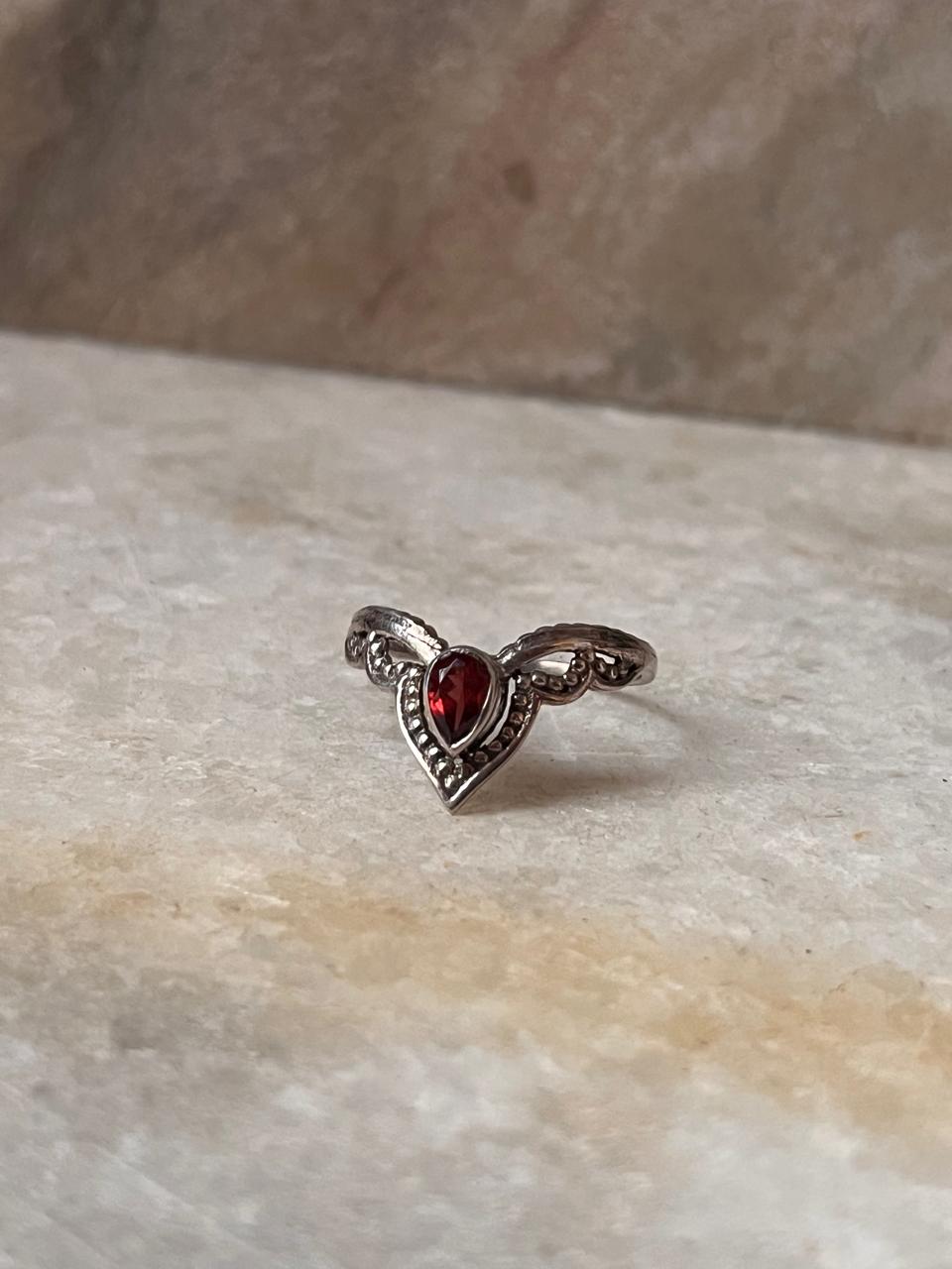 Discover elegance and sophistication with our Garnet V Crown Boho Silver Ring.