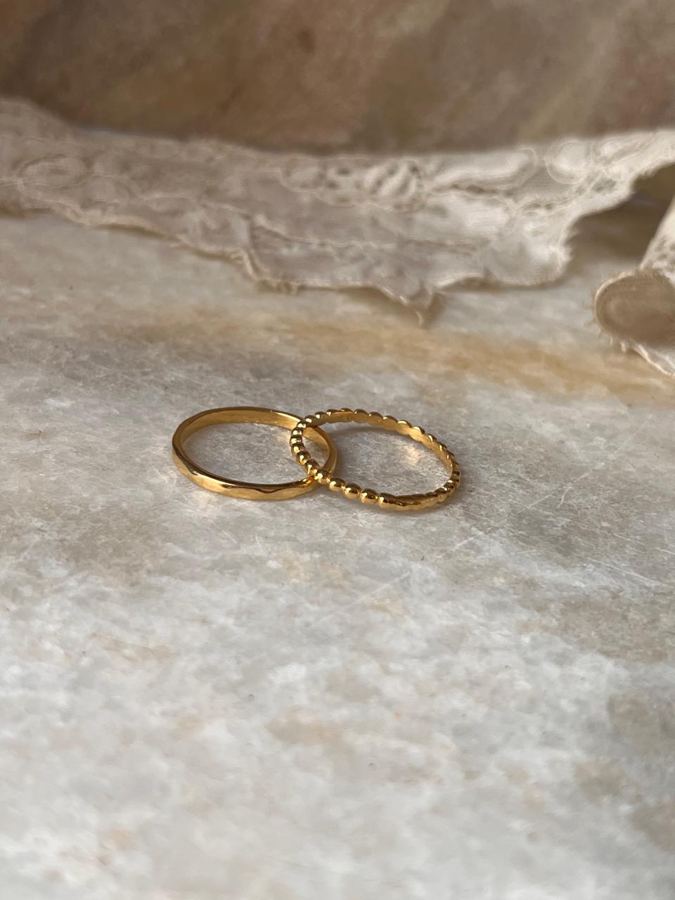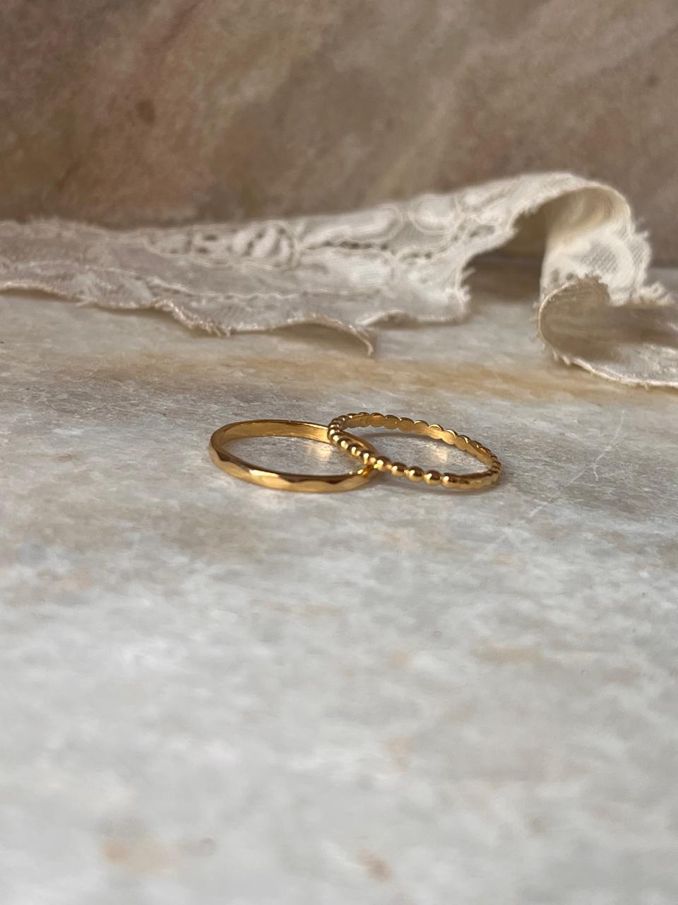 Gold Vermeil Big Dot & Hammered Stack Set 925 Sterling Silver Ring