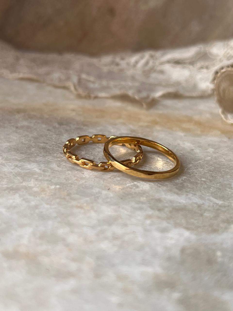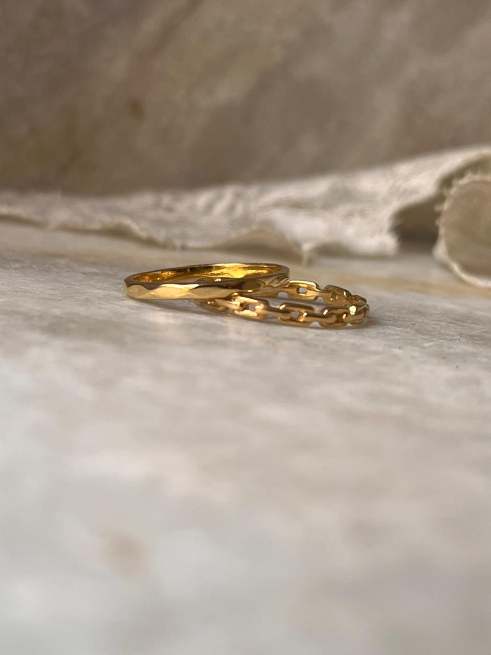 The Gold Vermeil Hammered & Thin Link Band Stack Set 925 Sterling Silver Ring beautifully merges textured artistry with delicate design. Featuring a bold hammered band alongside a refined thin link band, both finished in luxurious gold vermeil over sterling silver, this set embodies strength and elegance. Perfect for stacking or wearing separately, it symbolizes resilience and connection, adding a sophisticated, handcrafted touch to any outfit.