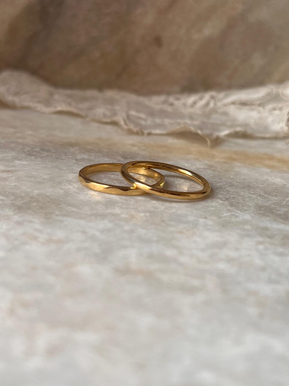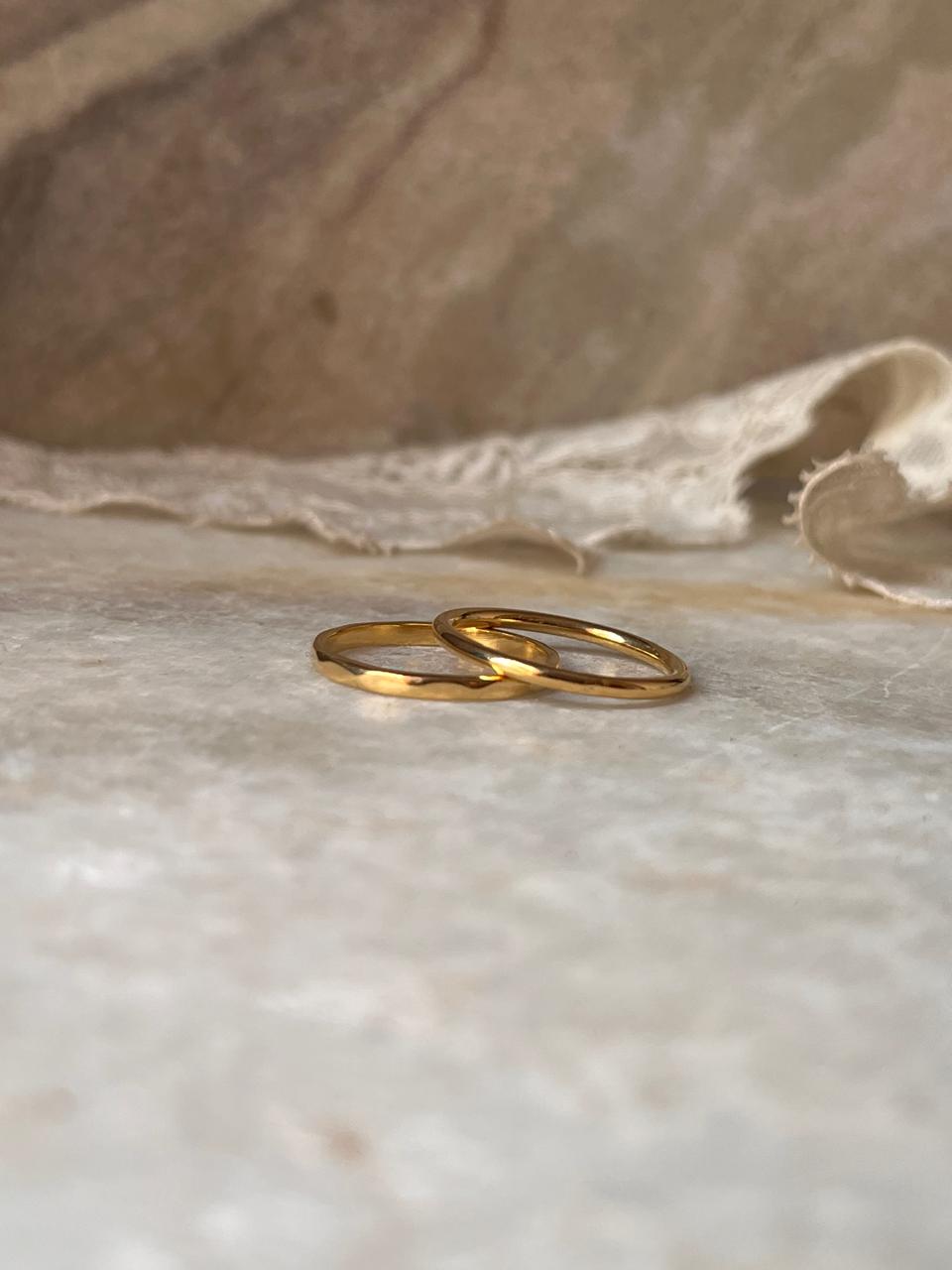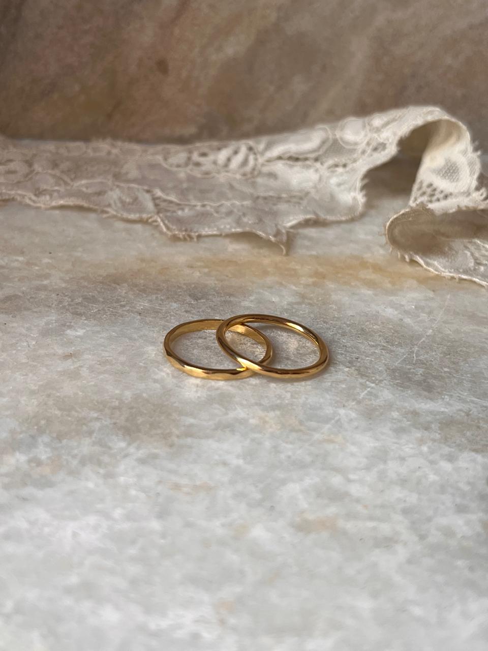 The Gold Vermeil Plain Round & Hammered Stack Set 925 Sterling Silver Ring pairs sleek minimalism with artisanal texture. Featuring a smooth, polished plain round band alongside a bold hammered band, both crafted in rich gold vermeil over sterling silver, this set offers a versatile and stylish layering option. Symbolizing balance between simplicity and strength, it’s perfect for everyday wear or special occasions, adding a subtle yet striking accent to your jewelry collection.