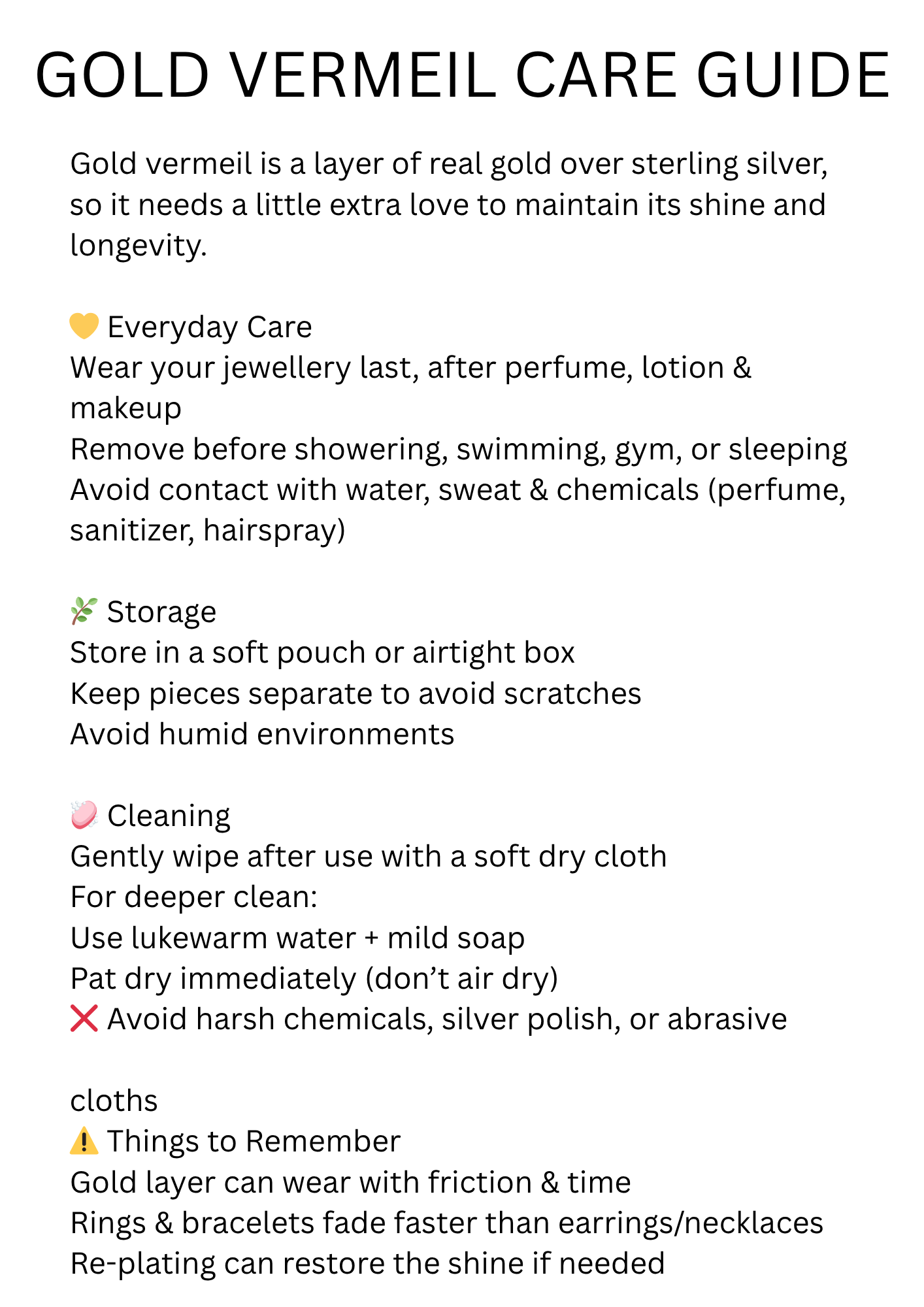 Avoid moisture: Remove jewelry before showering, swimming, or exposing it to water and humidity.