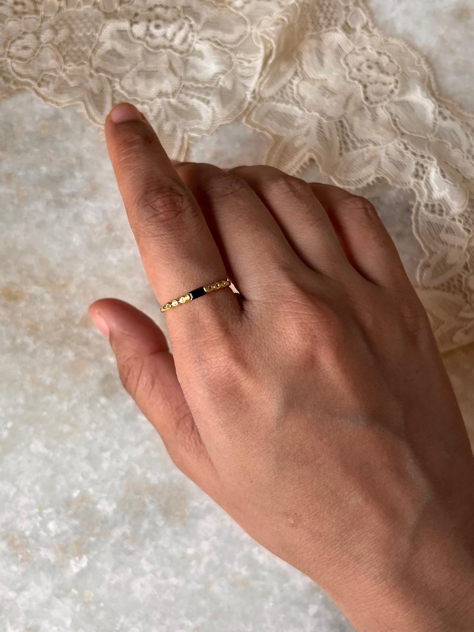 The Gold Vermeil Black Spinel & White Topaz Twilight Stack 925 Sterling Silver Ring is a captivating blend of dark elegance and radiant sparkle. Featuring contrasting black spinel and shimmering white topaz gemstones set in a luxurious gold vermeil finish over durable 925 sterling silver, this stackable ring symbolizes balance, protection, and clarity. Its twilight-inspired design evokes the magic of dusk, making it a perfect piece to layer or wear solo for a bold, sophisticated look. This ring adds a touch of mystical charm and timeless style to any jewelry collection.