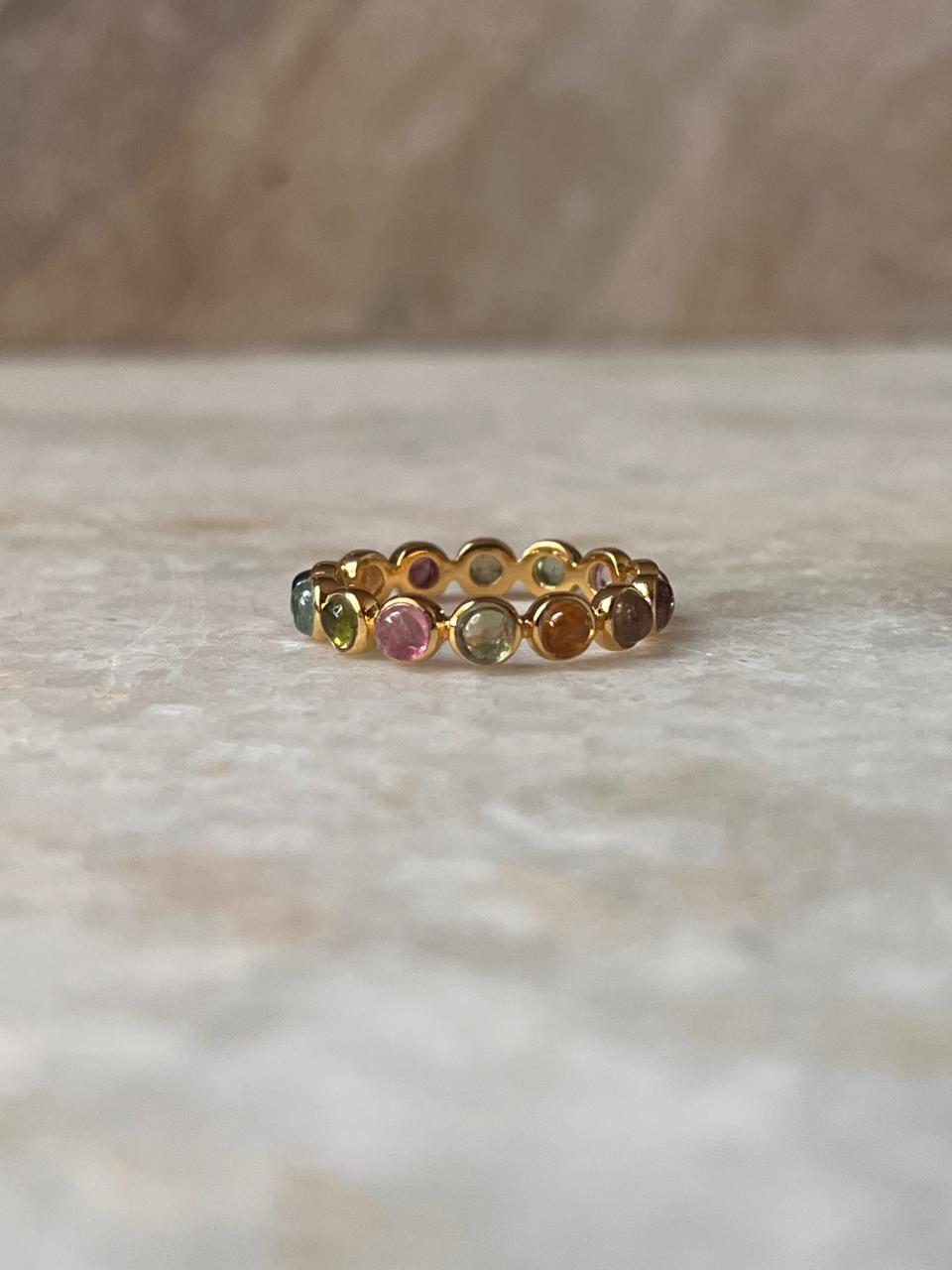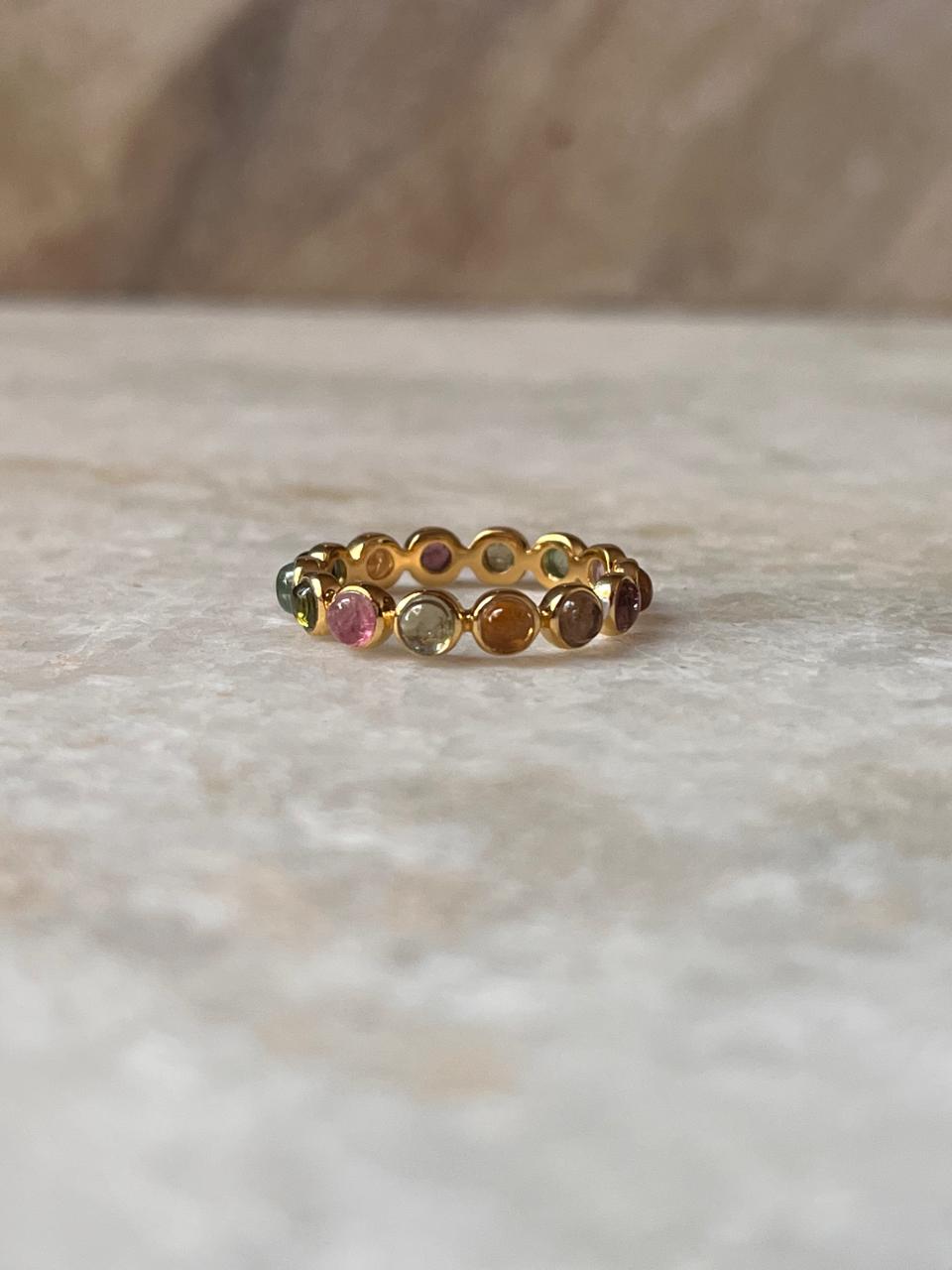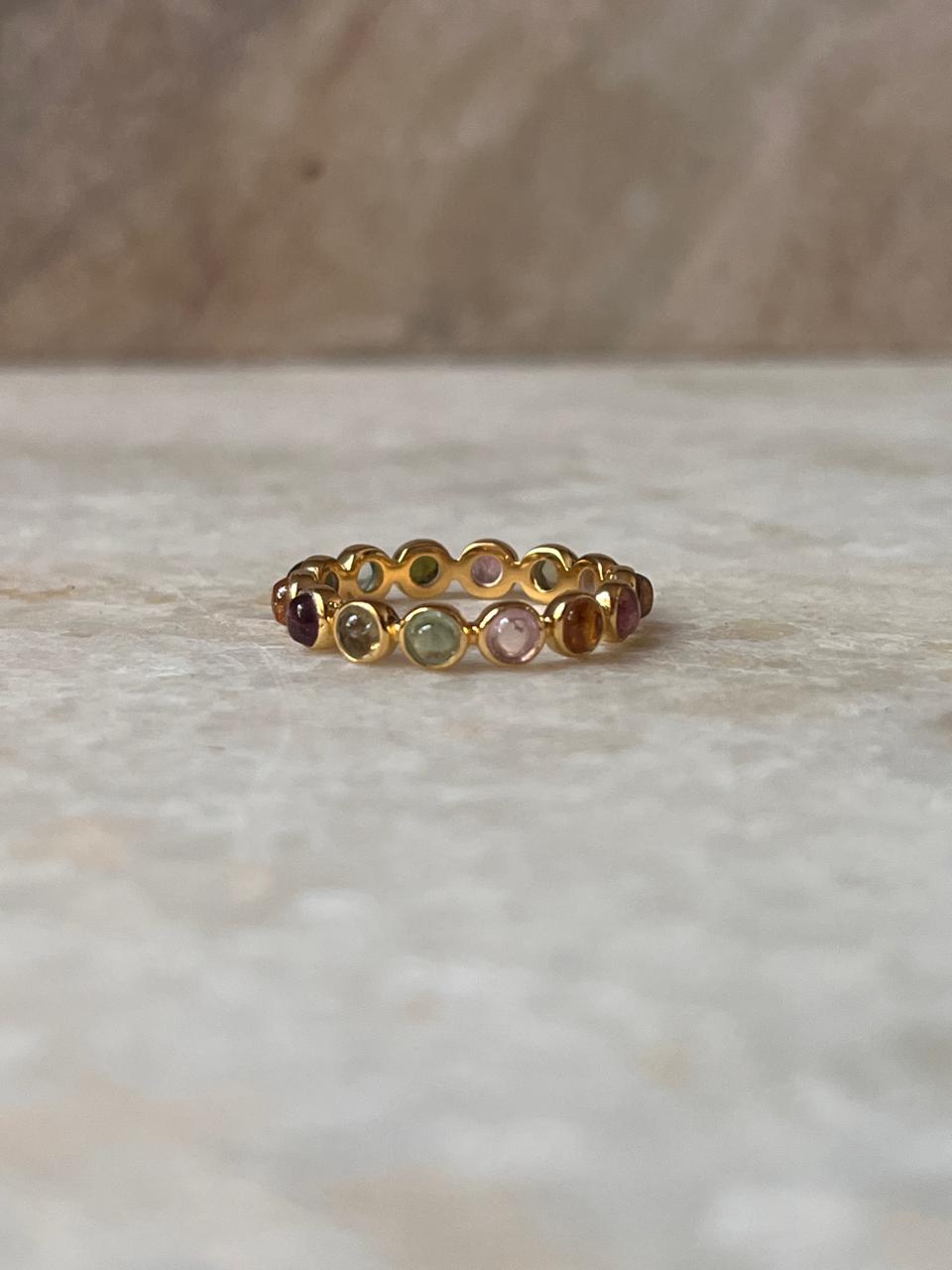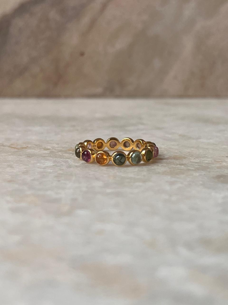 Gold Vermeil Multi Tourmaline Round Band 925 Sterling Silver Ring