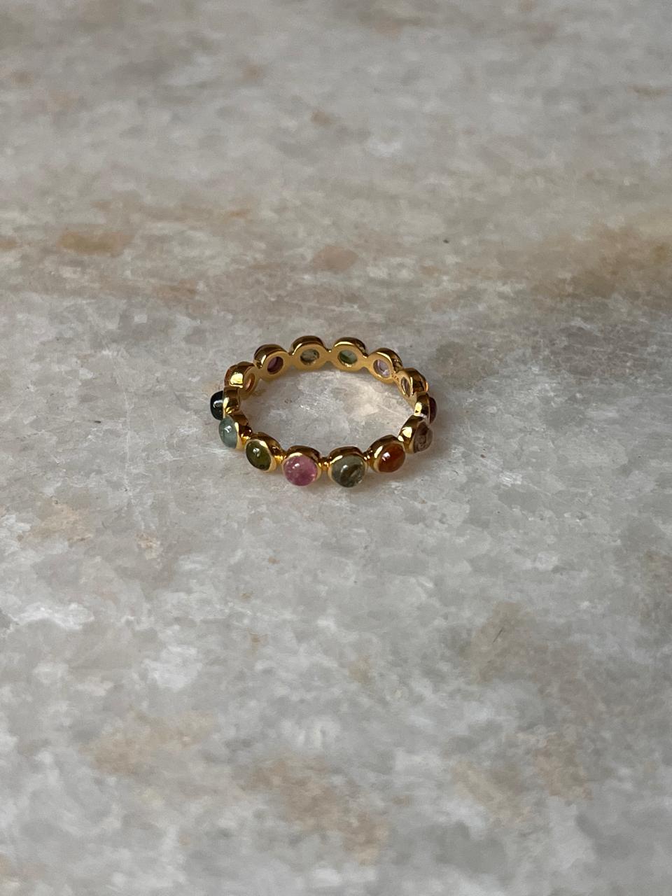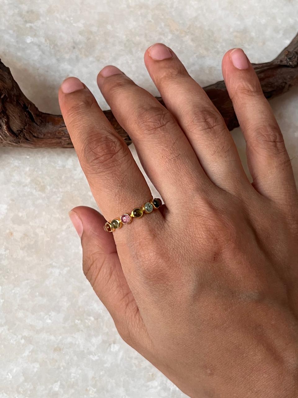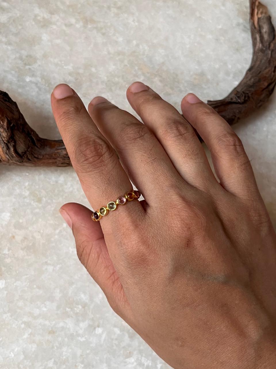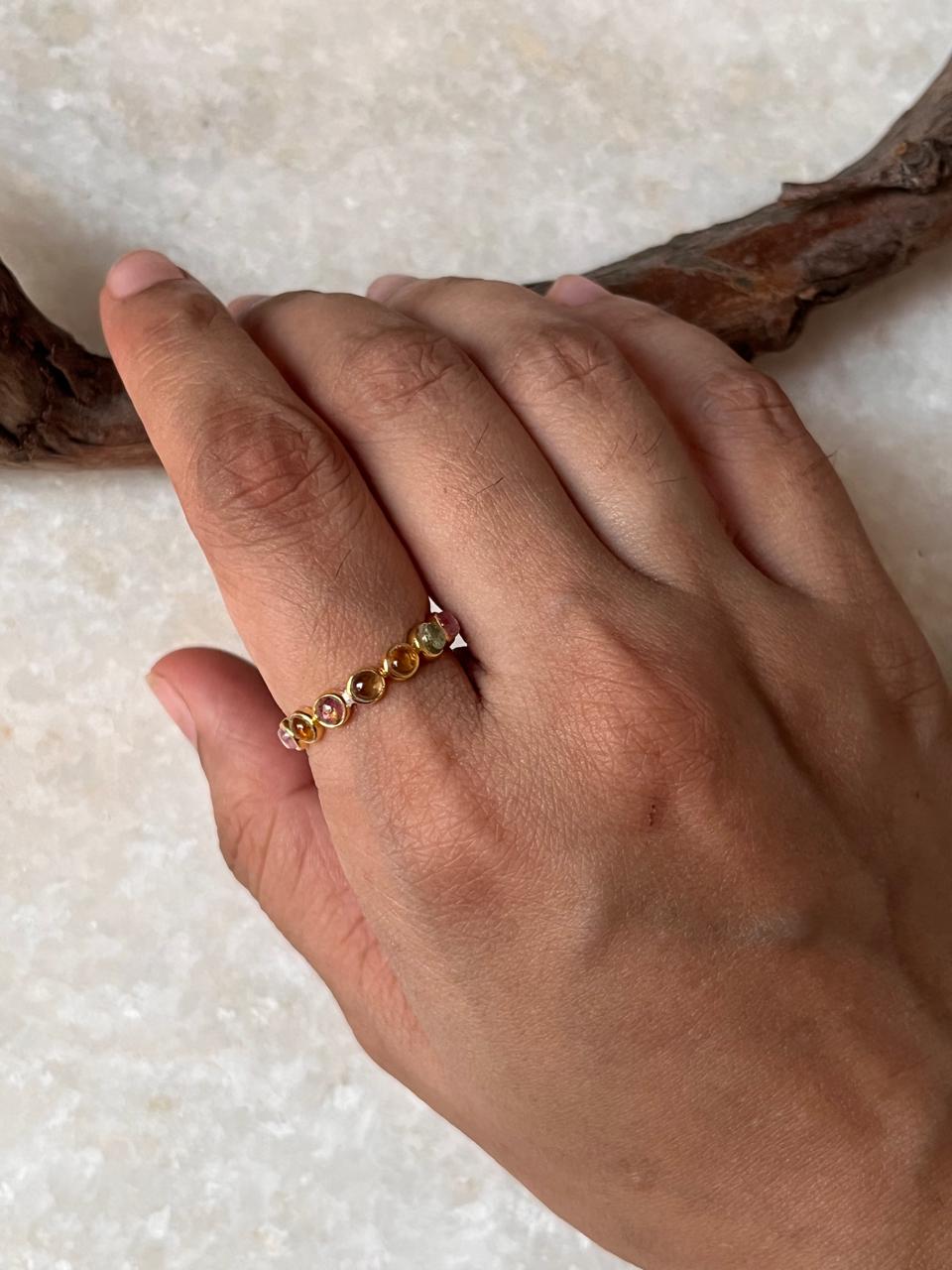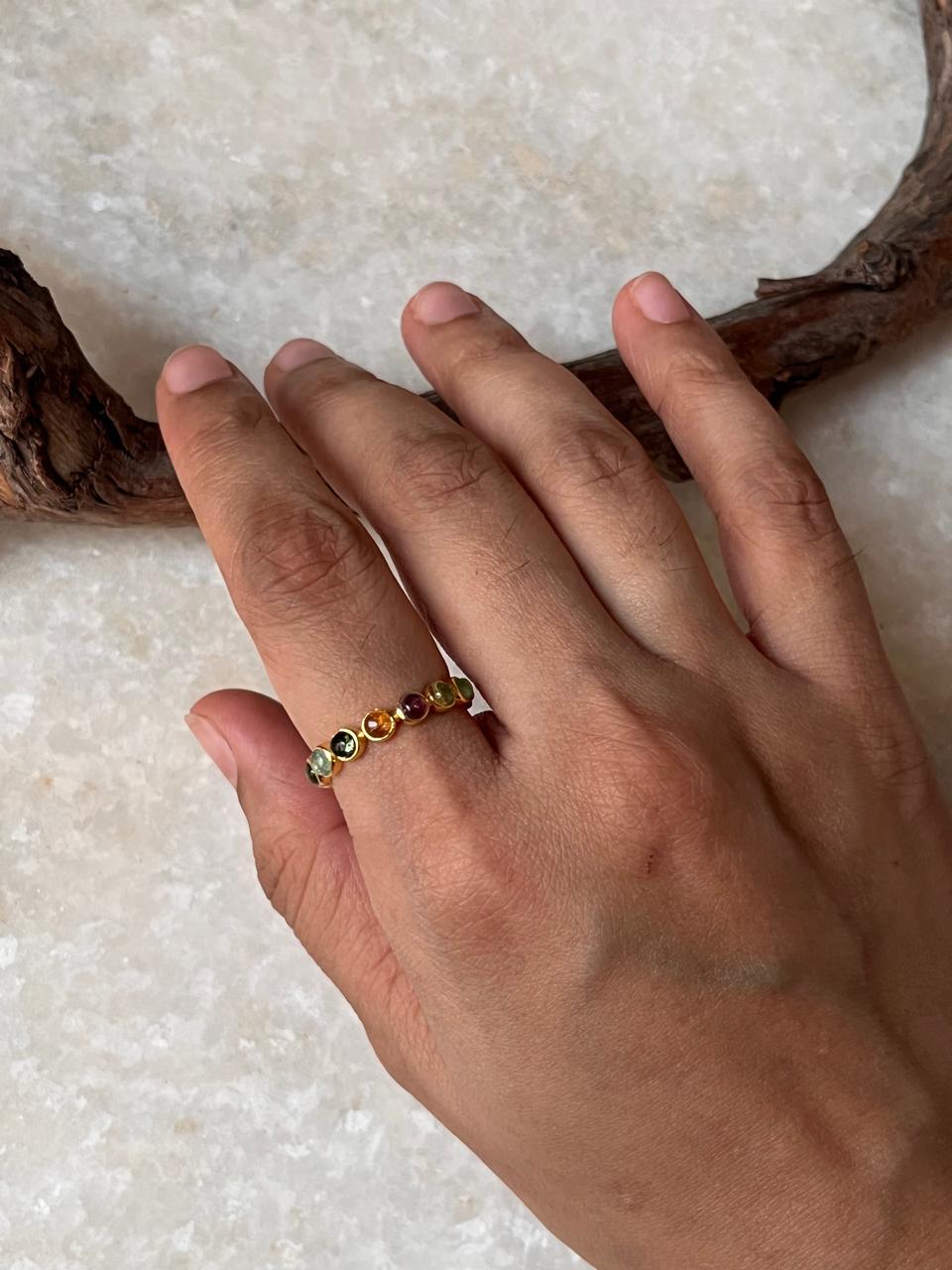 Gold Vermeil Multi Tourmaline Round Band 925 Sterling Silver Ring