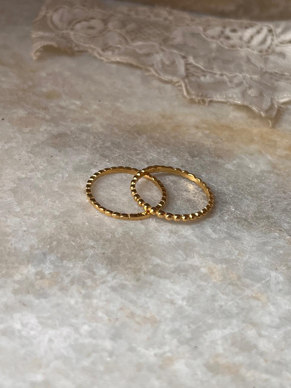 Gold Vermeil Small Dot & Big Dot Stack Set 925 Sterling Silver Ring