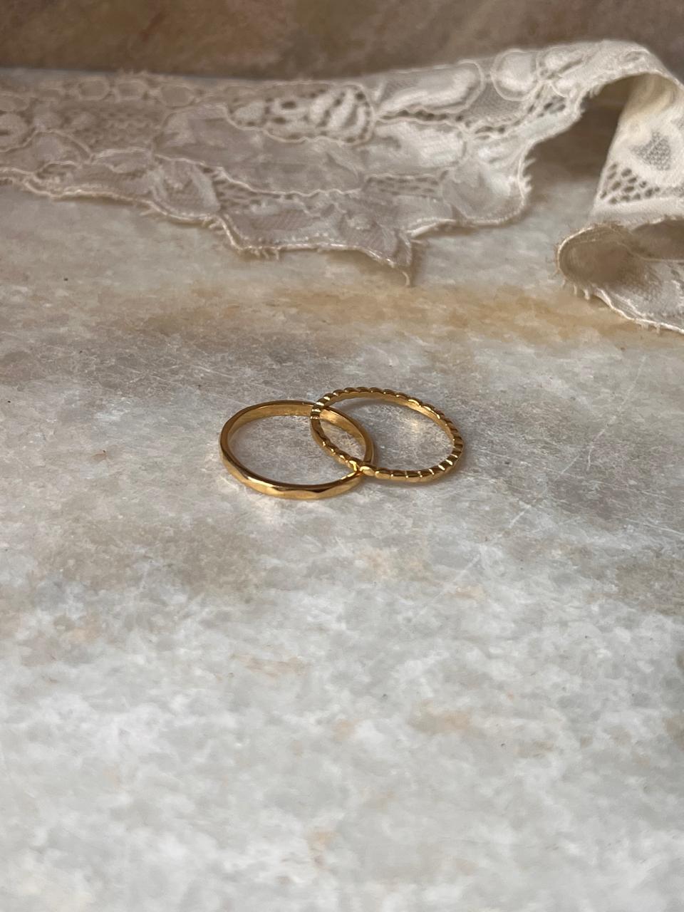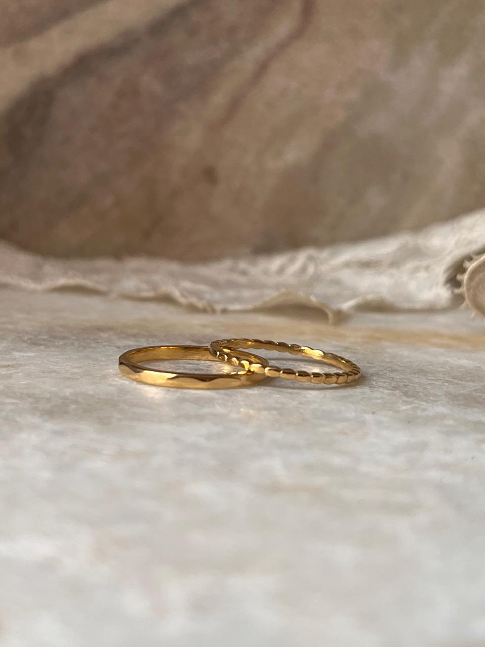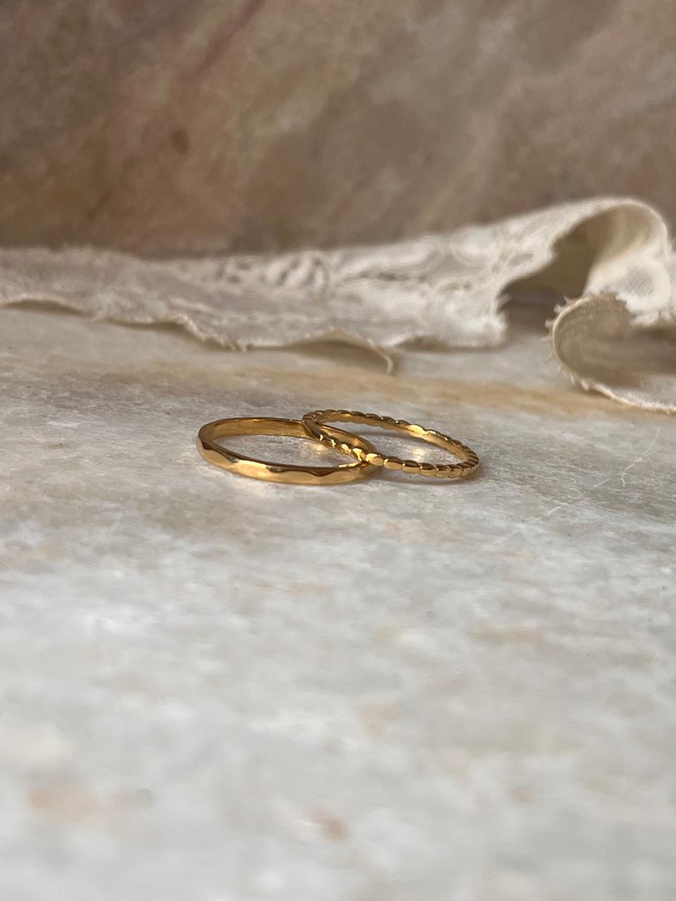 The Gold Vermeil Small Dot & Hammered Stack Set 925 Sterling Silver Ring blends subtle texture with artisanal charm. Featuring a delicately dotted small dot band paired with a rustic hammered band, both finished in warm gold vermeil over sterling silver, this set offers a perfect balance of refined detail and handcrafted elegance. Ideal for stacking or wearing individually, it symbolizes timeless style and craftsmanship, adding a sophisticated touch to any jewelry collection.