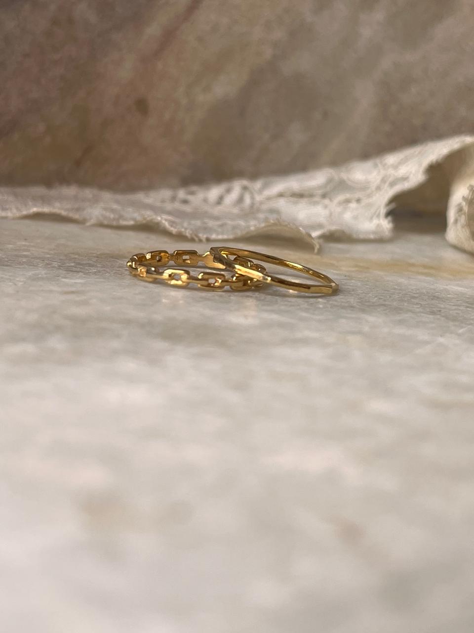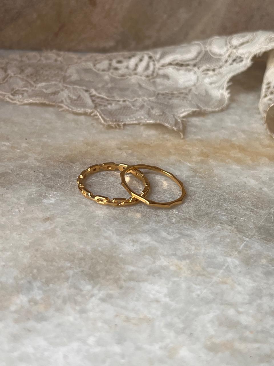 Gold Vermeil Star Hammered & Thin Link Band Stack Set 925 Sterling Silver Ring