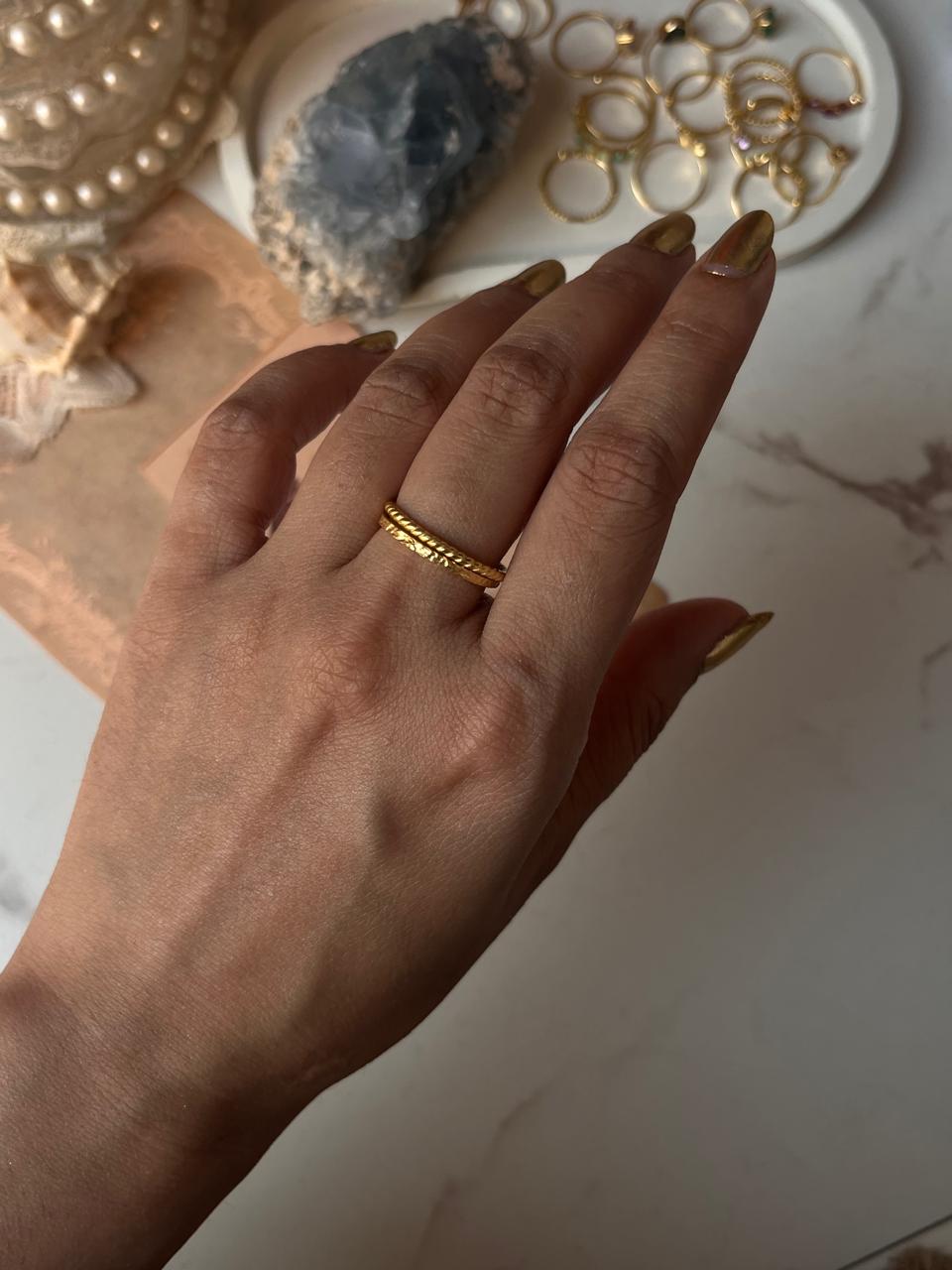 The Gold Vermeil Textured & Rope Stack Set 925 Sterling Silver Ring elegantly combines rich texture with classic craftsmanship. Featuring a beautifully textured band paired with a twisted rope band, both finished in warm gold vermeil over sterling silver, this set offers a harmonious blend of artisanal detail and timeless style. Perfect for stacking or wearing individually, it symbolizes strength and sophistication, making it a versatile and refined addition to any jewelry collection.