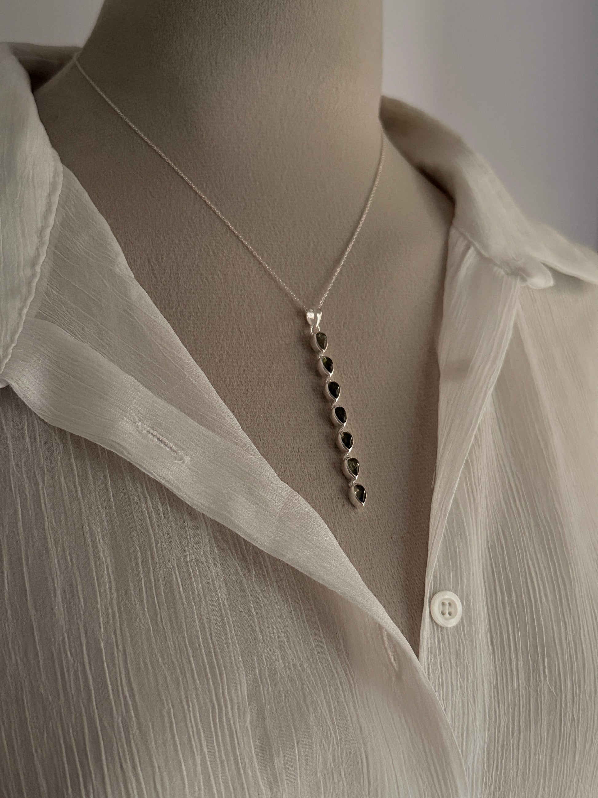 The Green Tourmaline Pear Straight 925 Sterling Silver Pendant is a sophisticated blend of natural vitality and refined design. Green tourmaline is known for its energizing and healing properties, believed to attract prosperity, boost vitality, and encourage personal growth. The pear shape represents renewal and graceful transformation, while the straight setting gives the piece a clean, contemporary look. Set in polished 925 sterling silver, this pendant is both a meaningful symbol and a timeless accessory—perfect for those seeking balance, abundance, and a touch of earthy elegance.