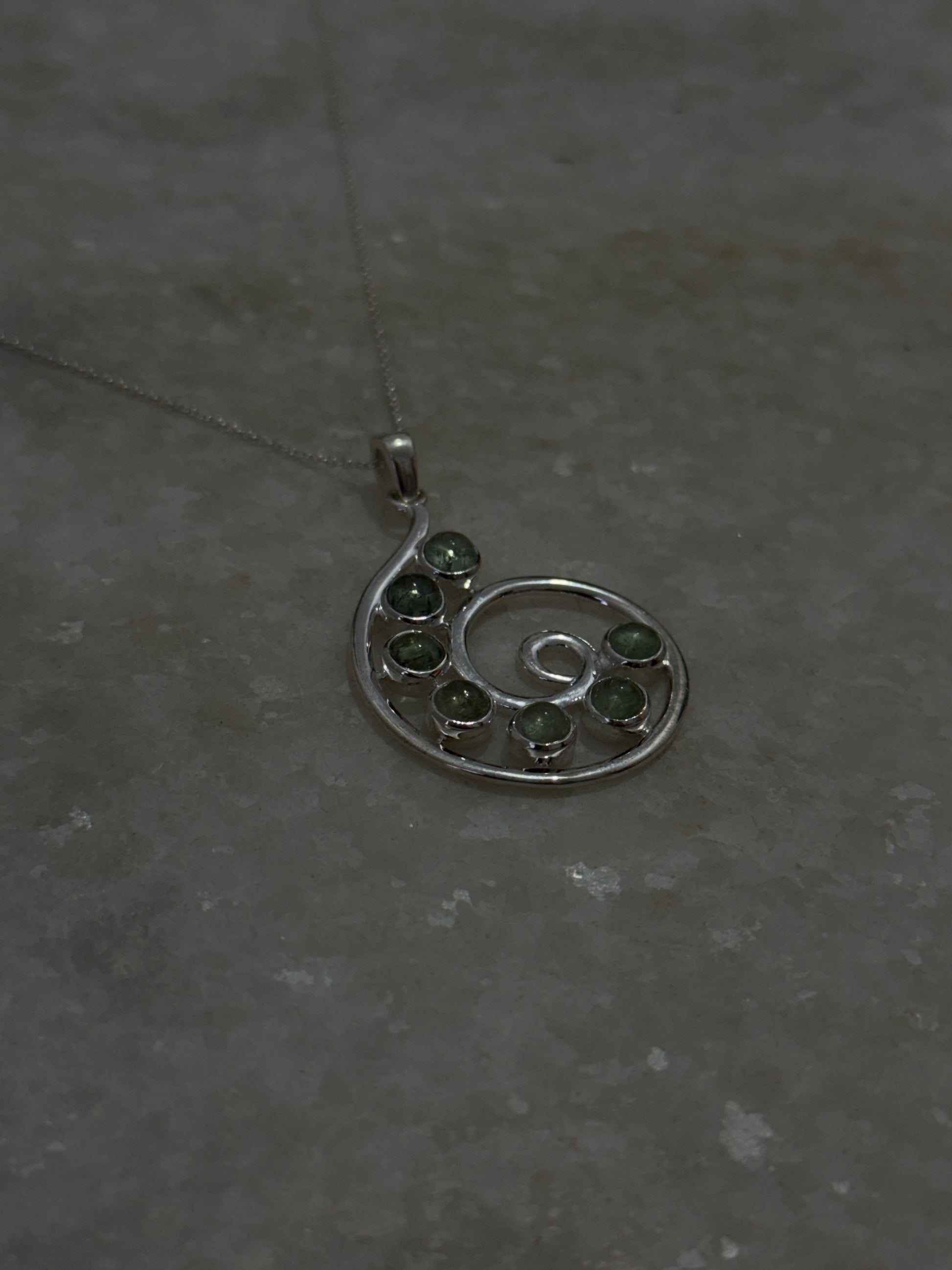 Green Tourmaline Spiral 925 Sterling Silver Pendant