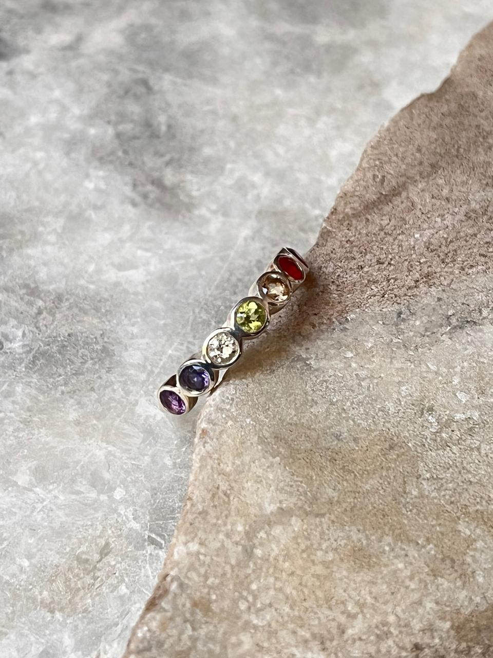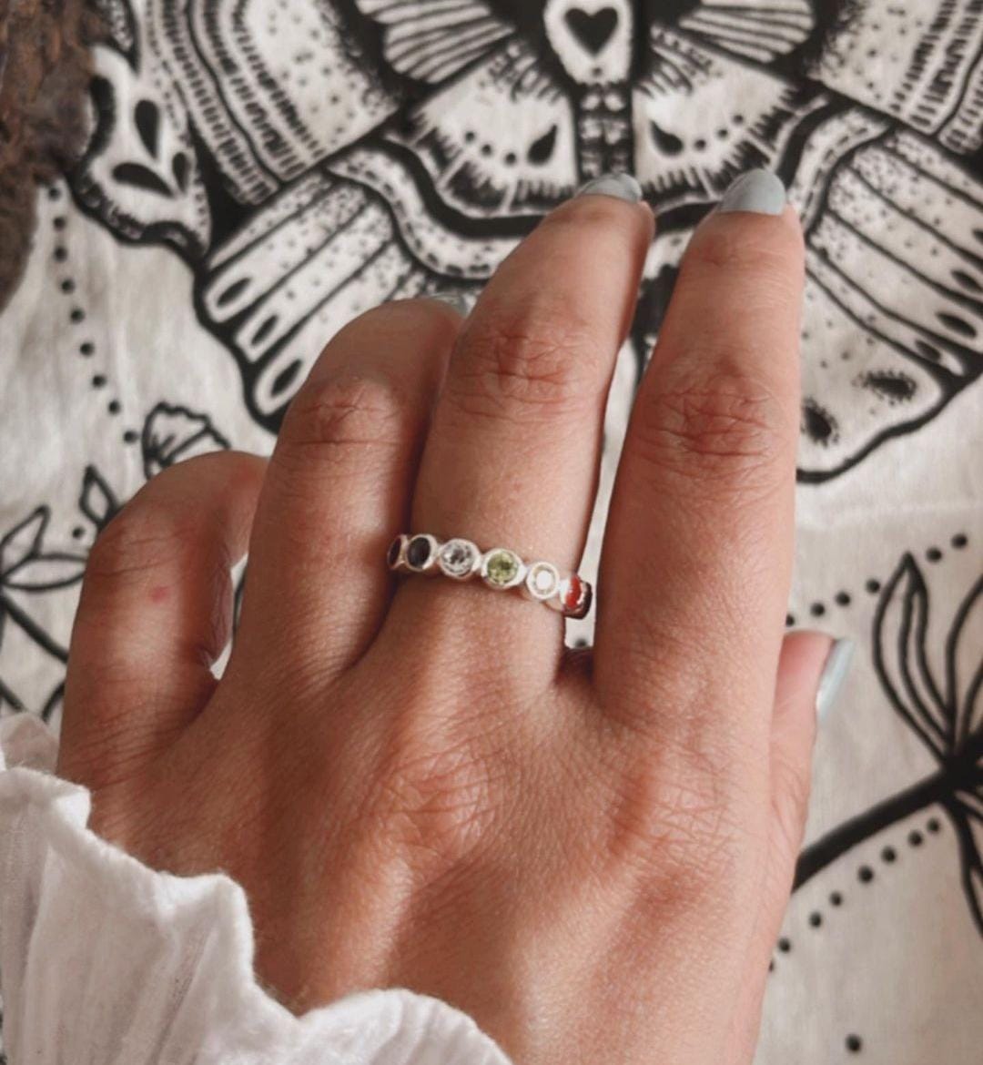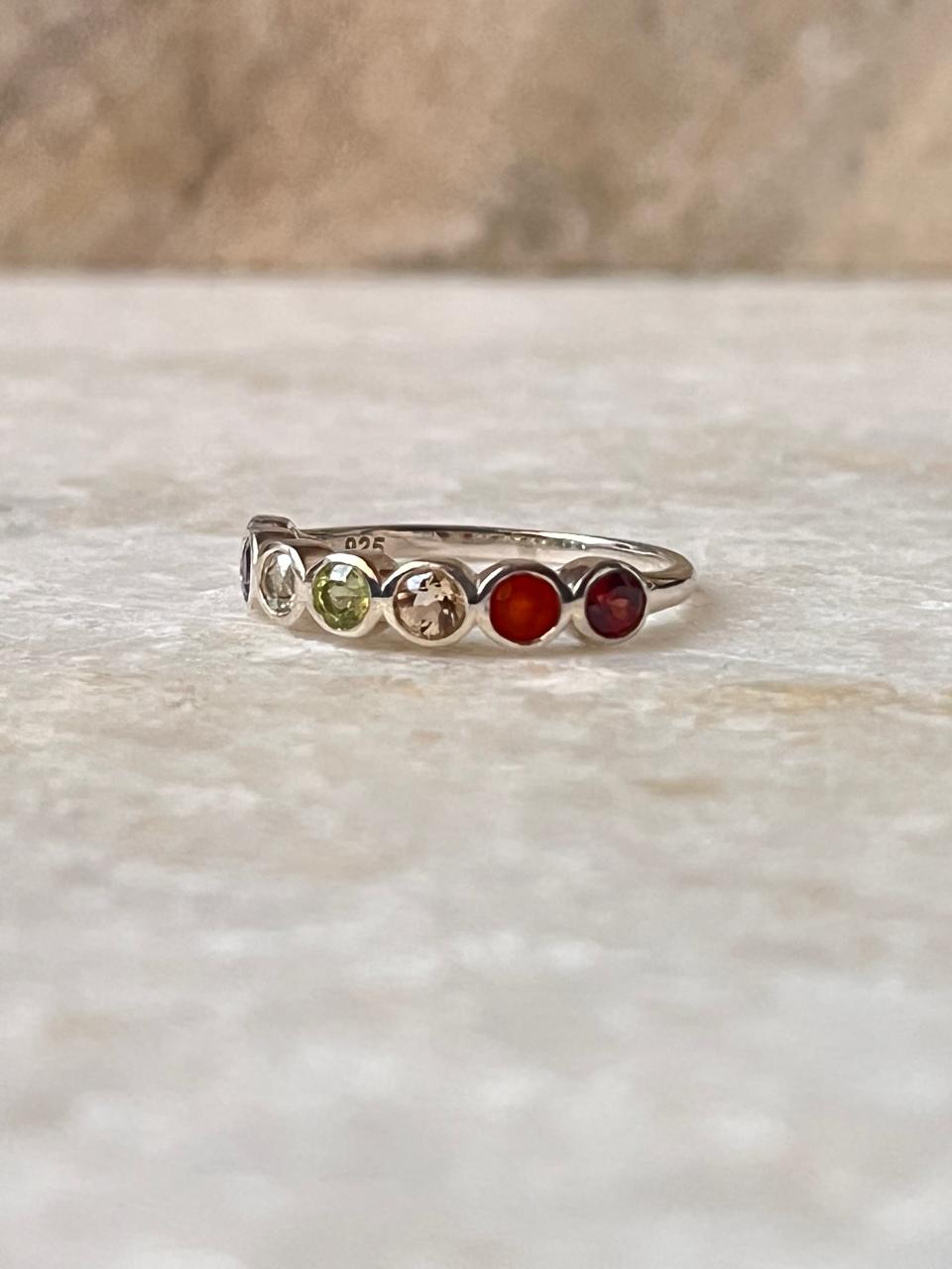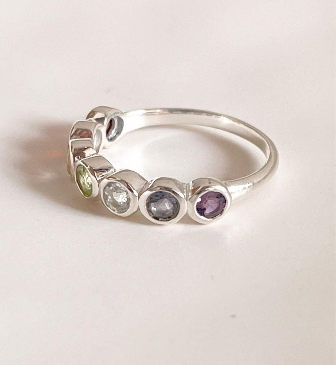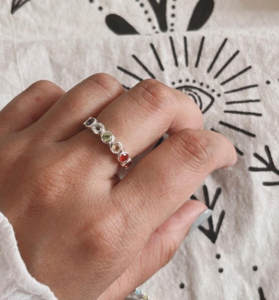 The Seven Chakra Round Eternity Band is a beautifully crafted ring made from 925 sterling silver, designed to symbolize balance and harmony. Featuring seven vibrant, round gemstones representing each of the body’s chakras, this eternity band promotes spiritual alignment and holistic well-being. Its sleek, timeless design makes it perfect for everyday wear or as a meaningful gift for those on a journey of inner peace and self-discovery.