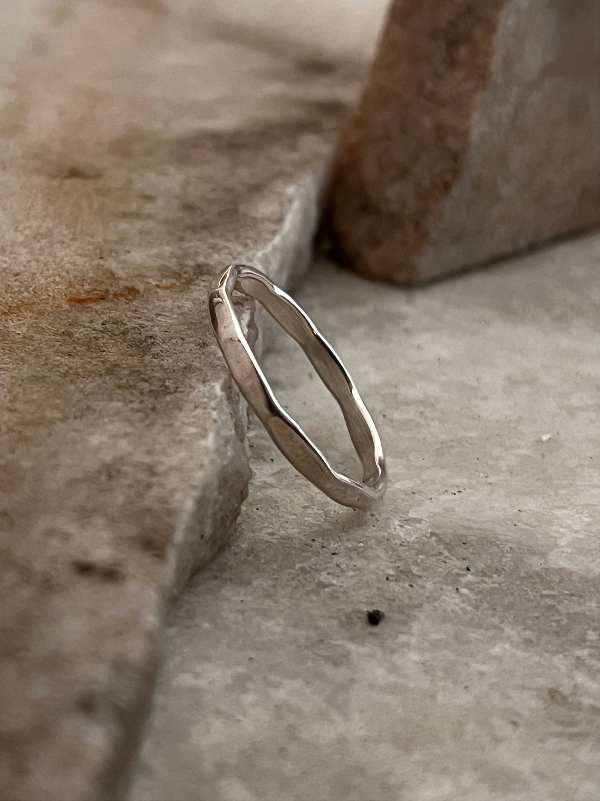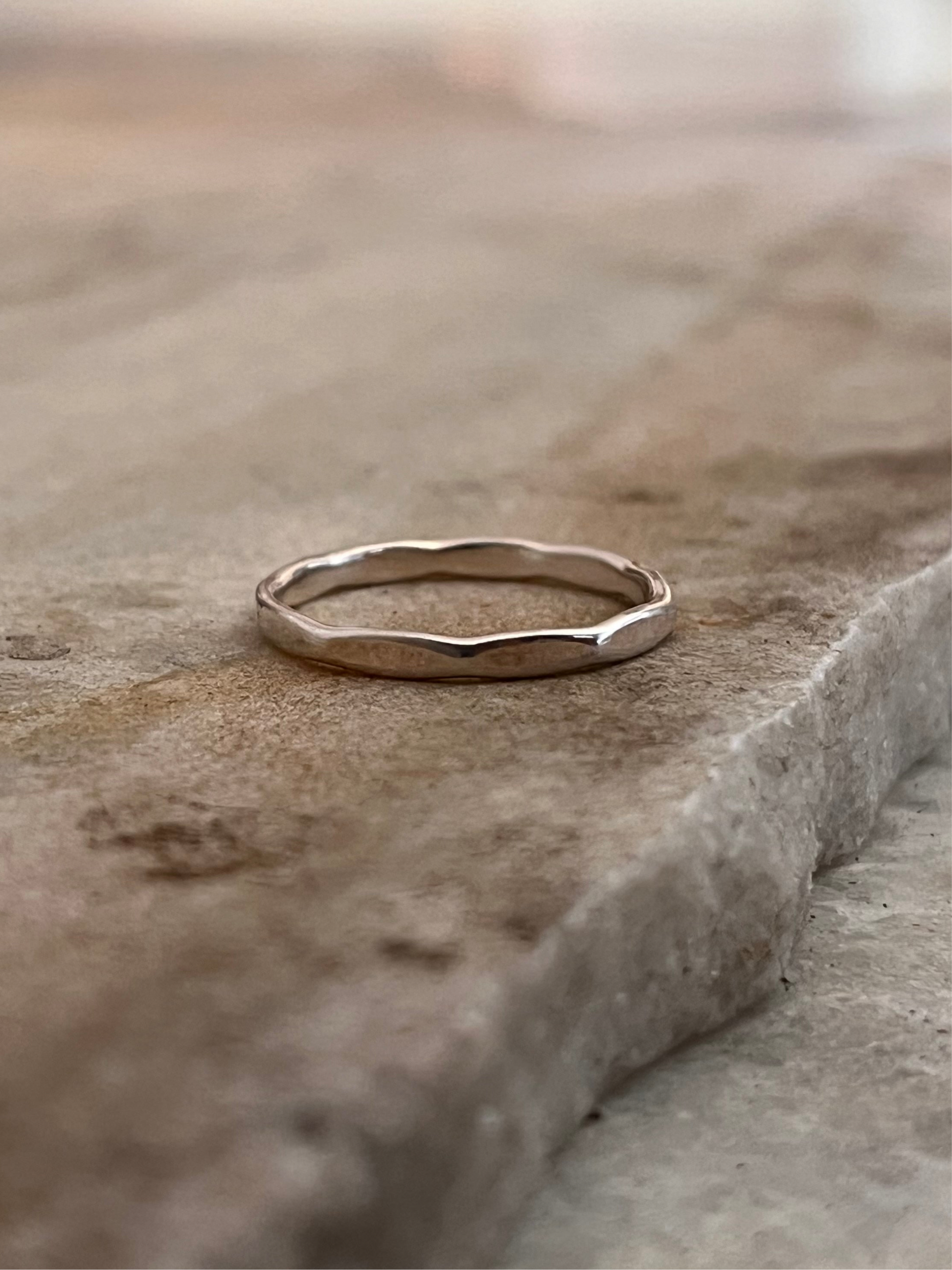 "Add a touch of artisanal charm with this hammered stack ring. Its textured finish brings a unique, handcrafted look to your layered style."