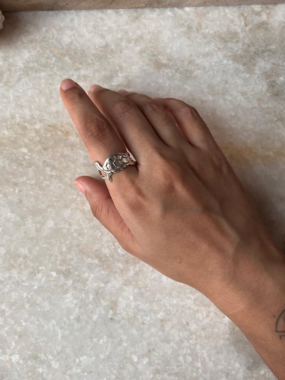 Horizontal Tortoise 925 Sterling Silver Ring