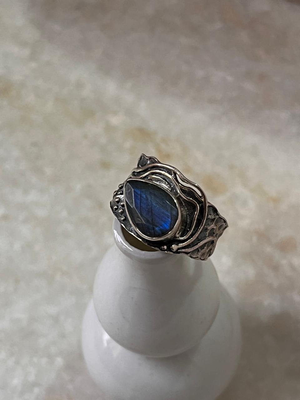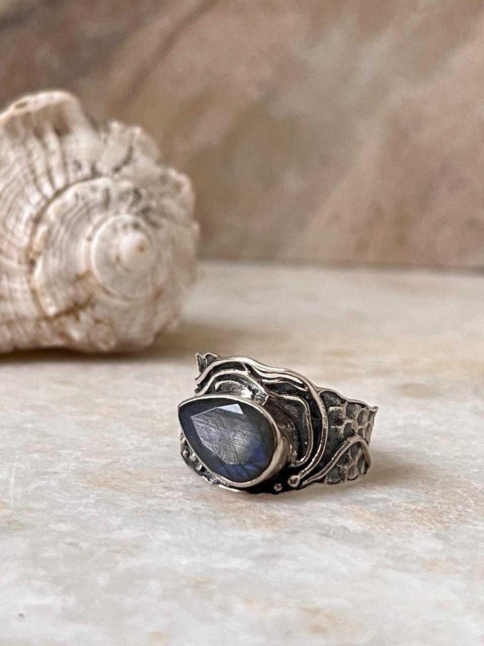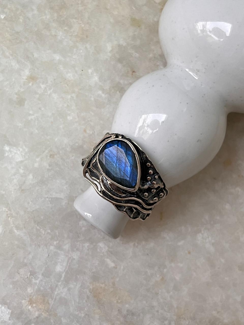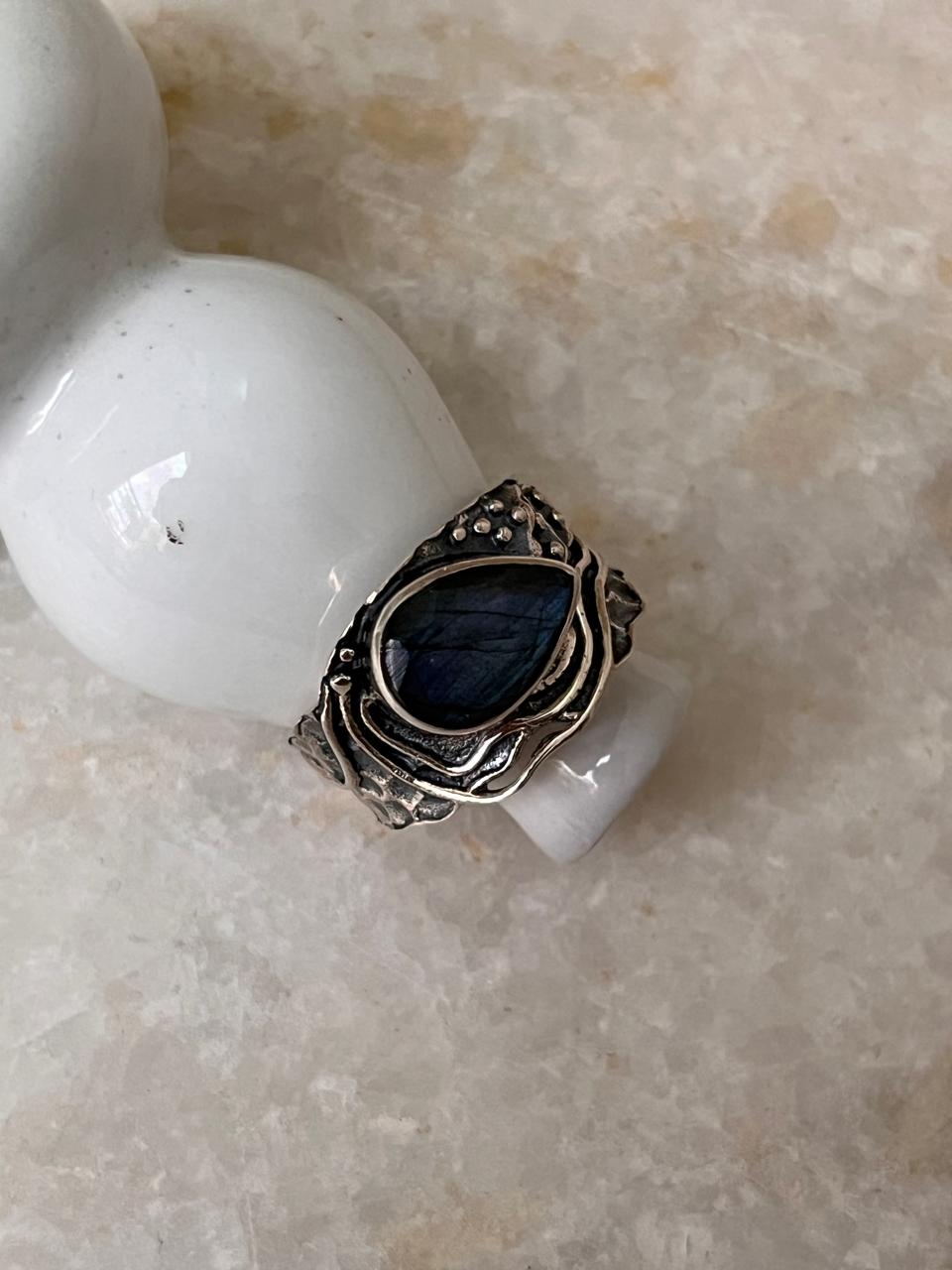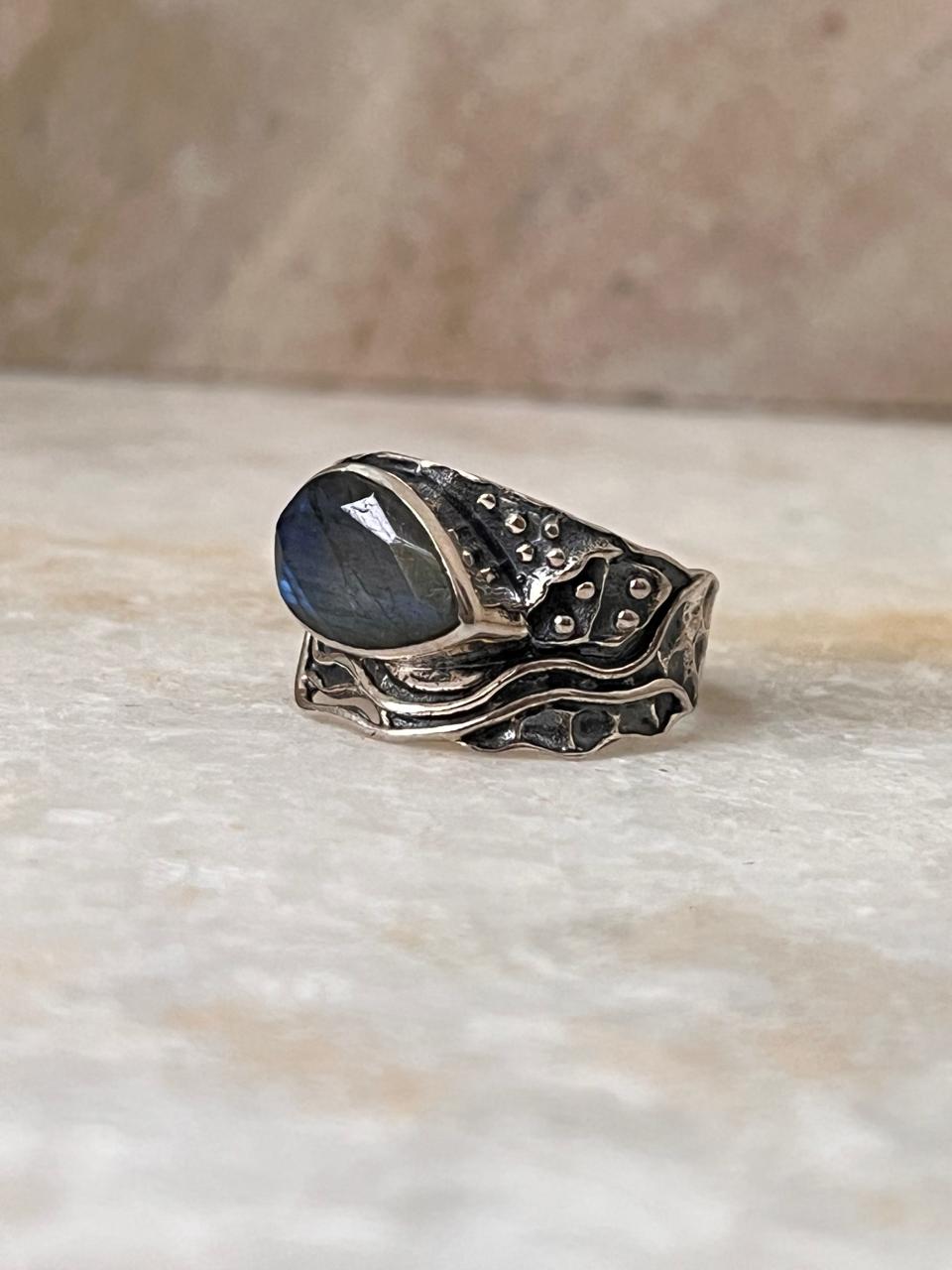 Expertly crafted and beautifully designed, our Labradorite Pear Rustic Silver Ring showcases the unique beauty of this semi-precious stone.
