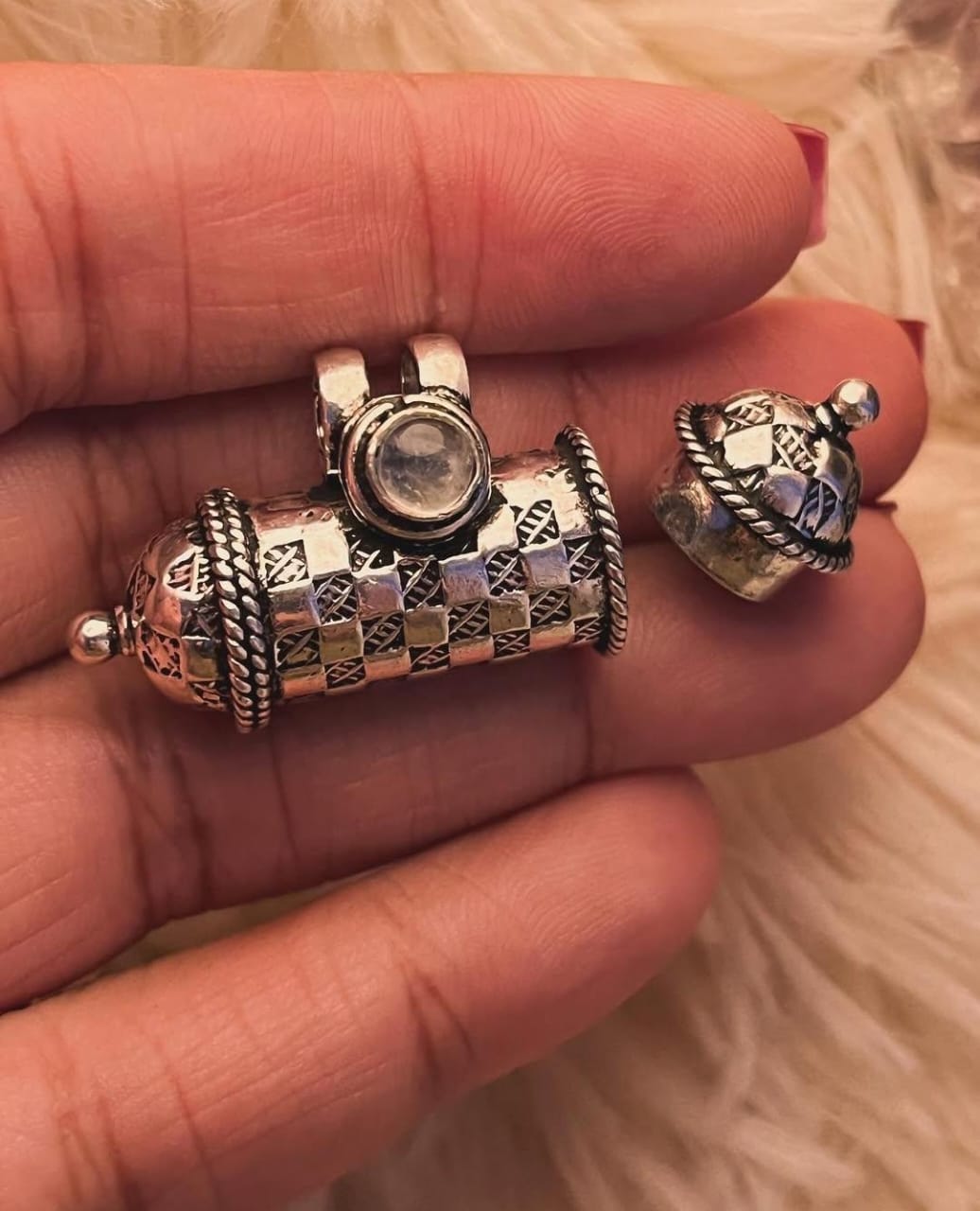 The Labradorite Taveez 925 Sterling Silver Pendant is a mystical and protective talisman inspired by traditional amulets. Featuring a shimmering labradorite stone—renowned for its iridescent flashes and ability to shield the aura—set within a classic taveez (amulet) design, this pendant symbolizes spiritual protection, intuition, and transformation. Crafted in polished 925 sterling silver, it combines ancient symbolism with modern elegance, making it a powerful piece for those seeking guidance, strength, and a deeper connection to their inner light.