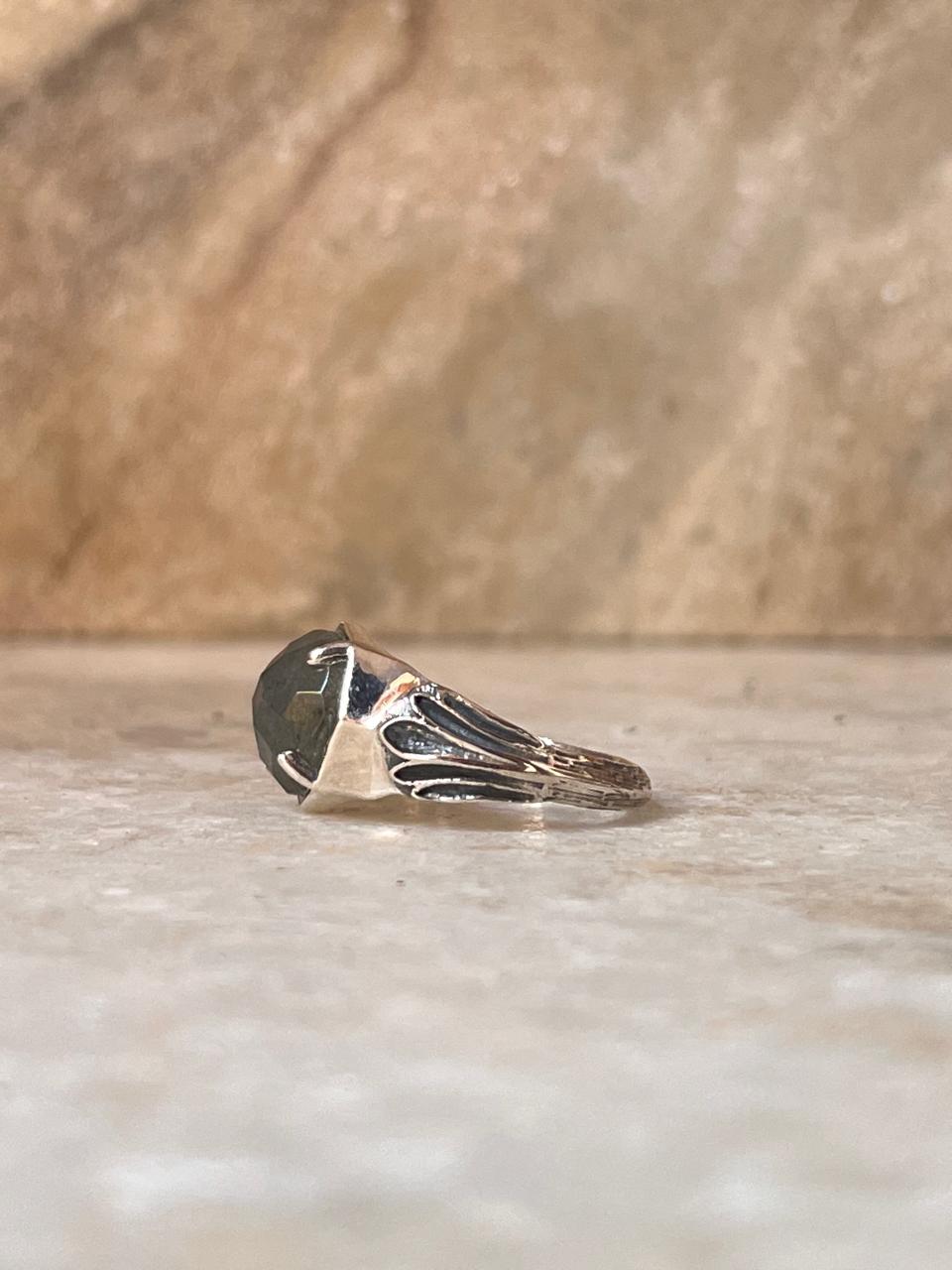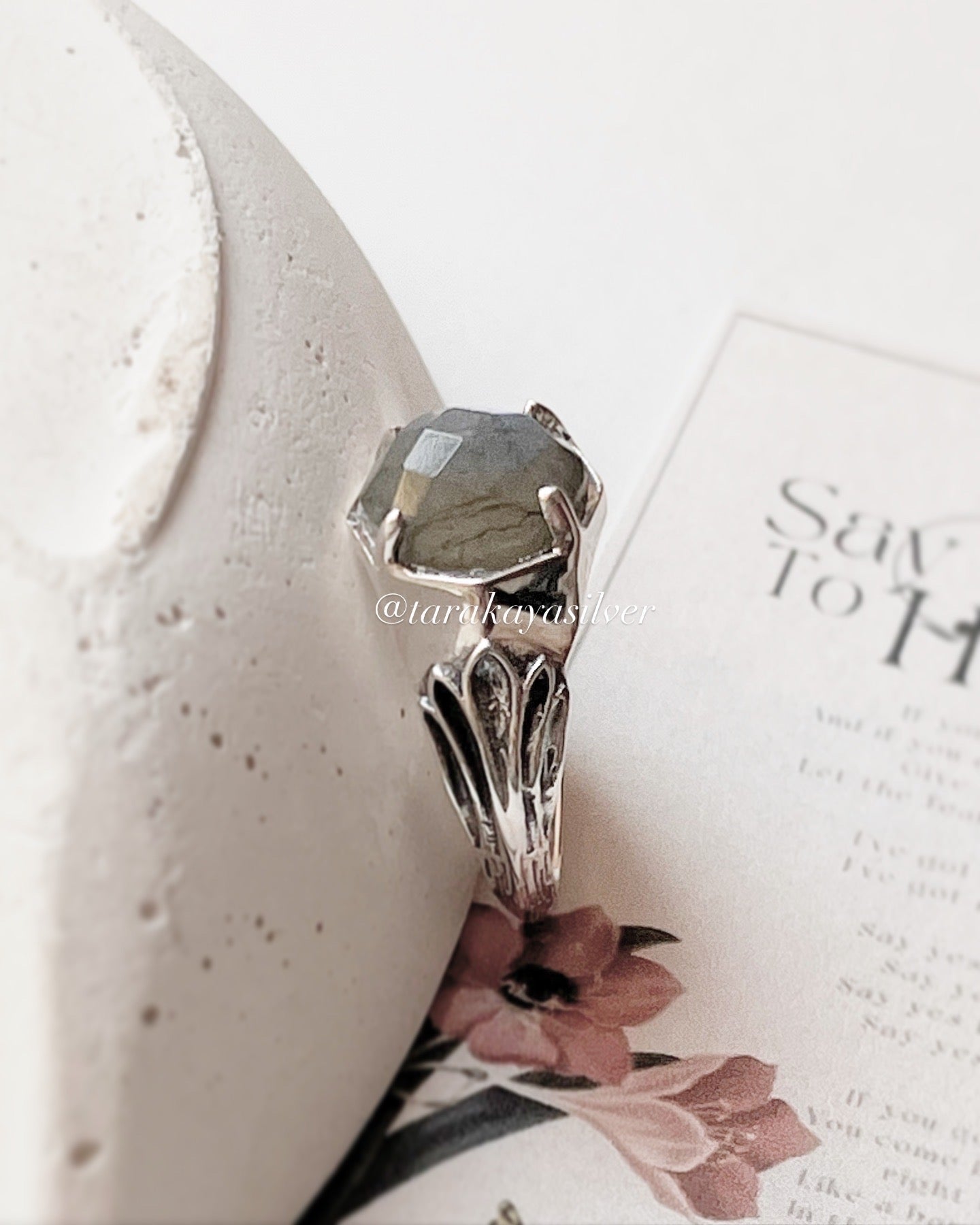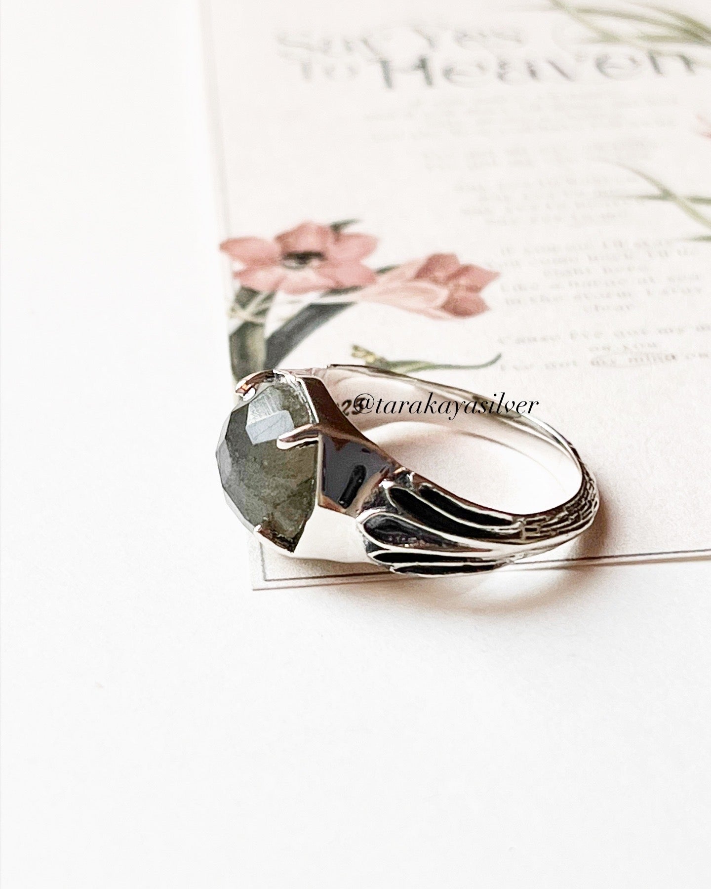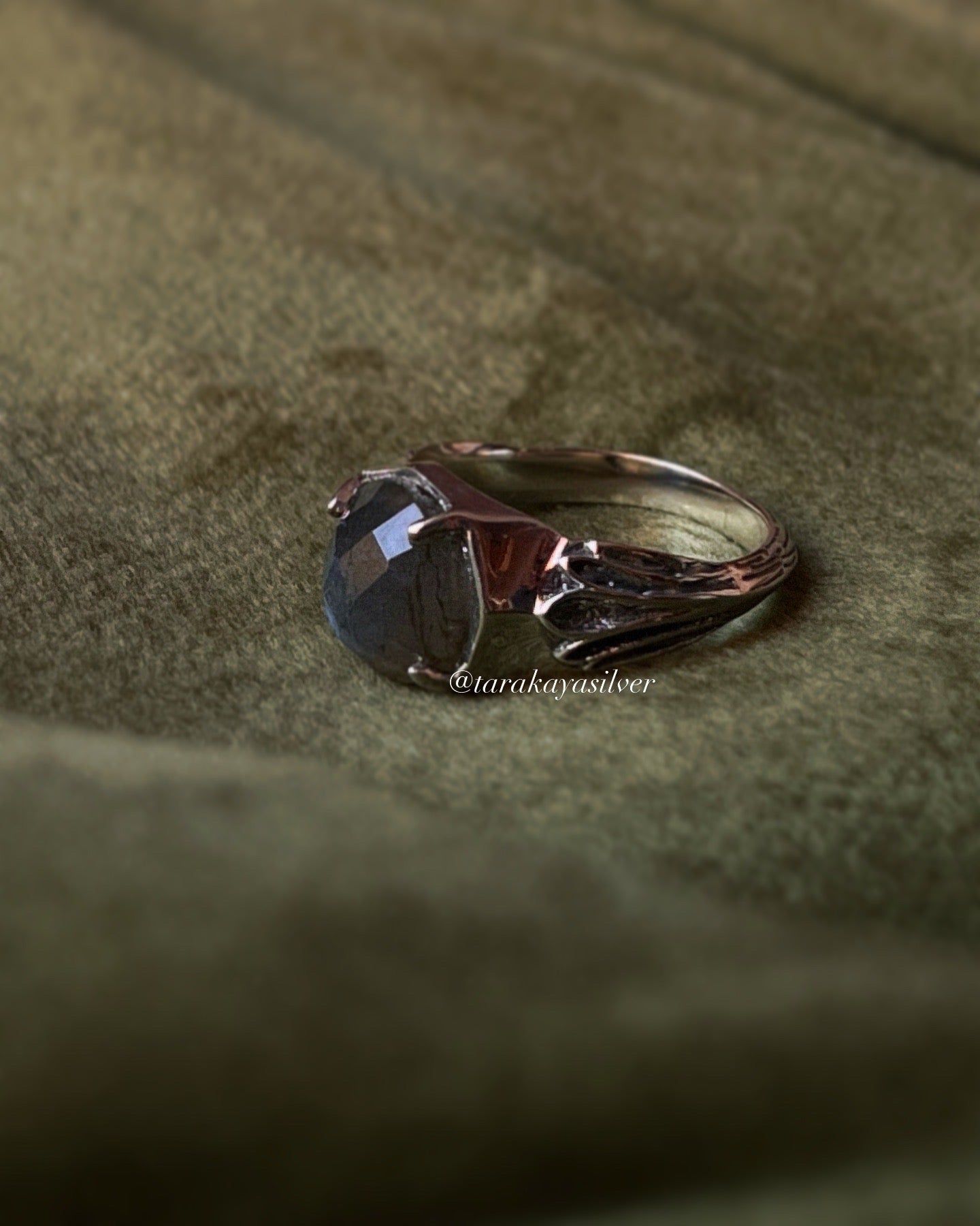 Labradorite Vintage Goth Style Checker Board Cut 925 Sterling Silver Ring