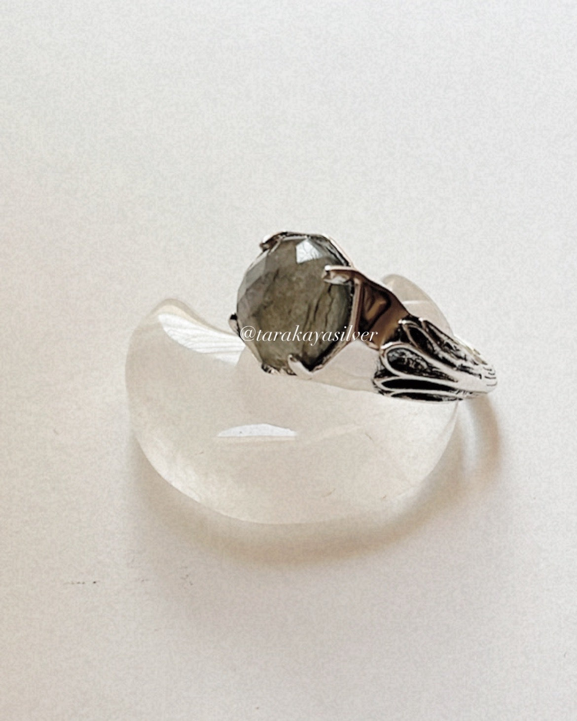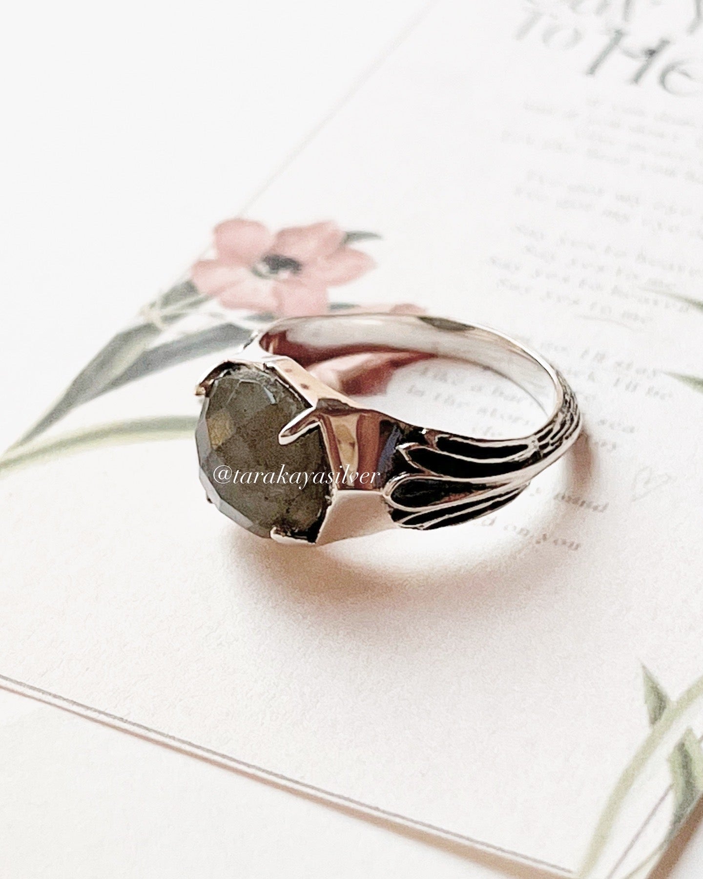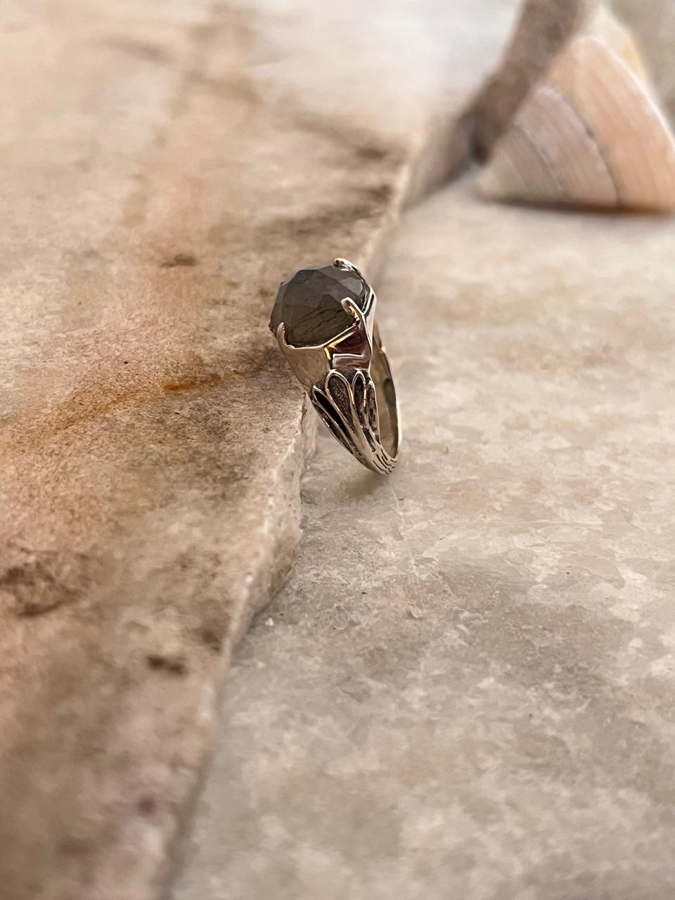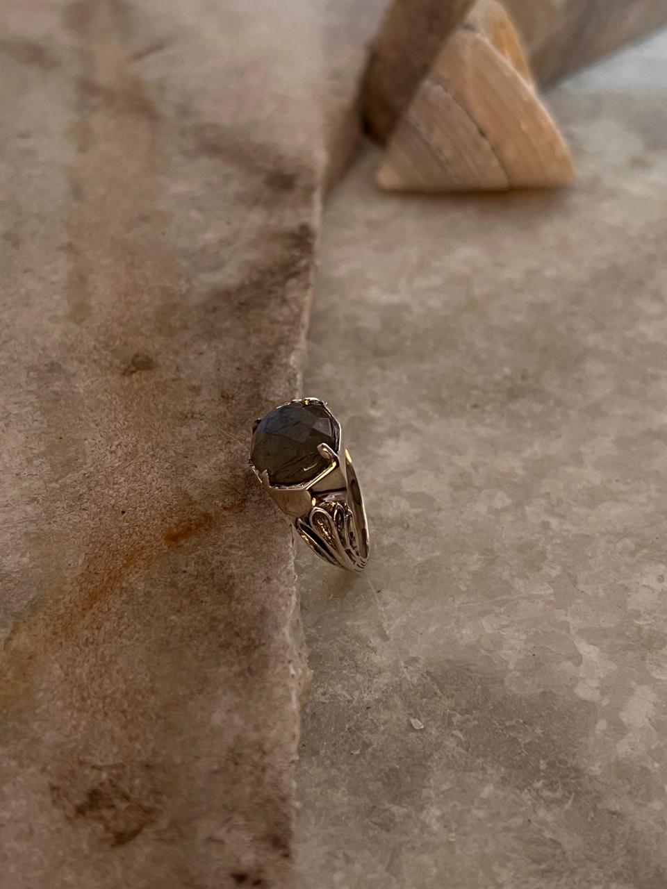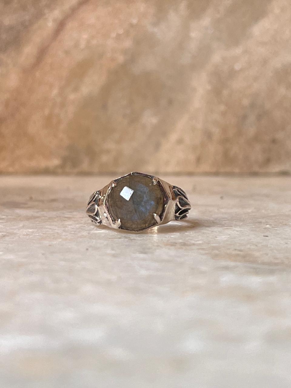 Labradorite Vintage Goth Style Checker Board Cut 925 Sterling Silver Ring