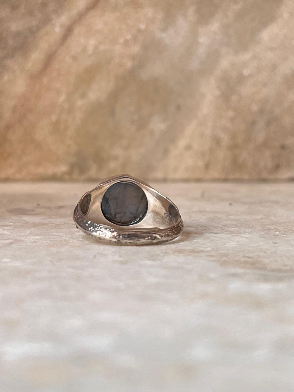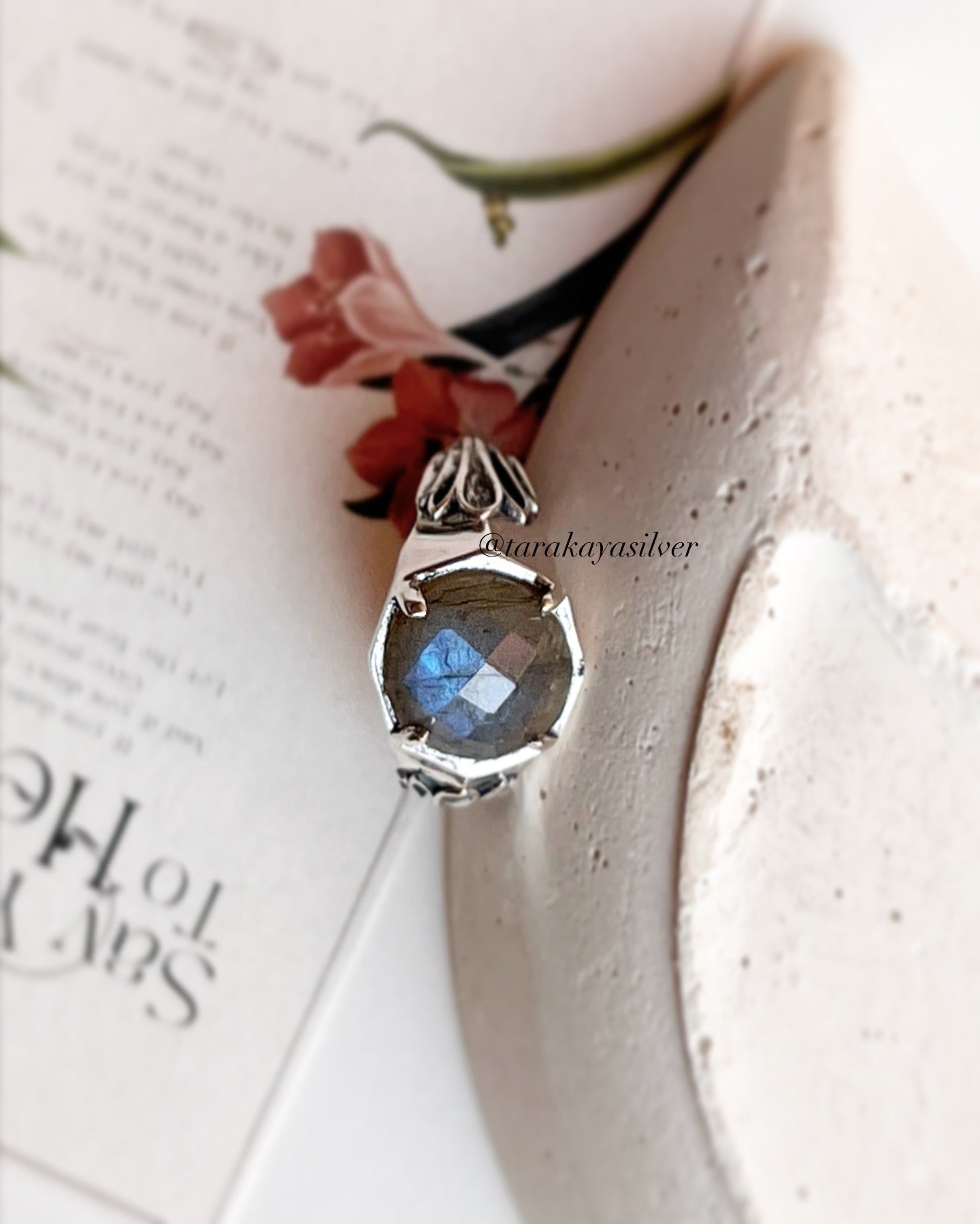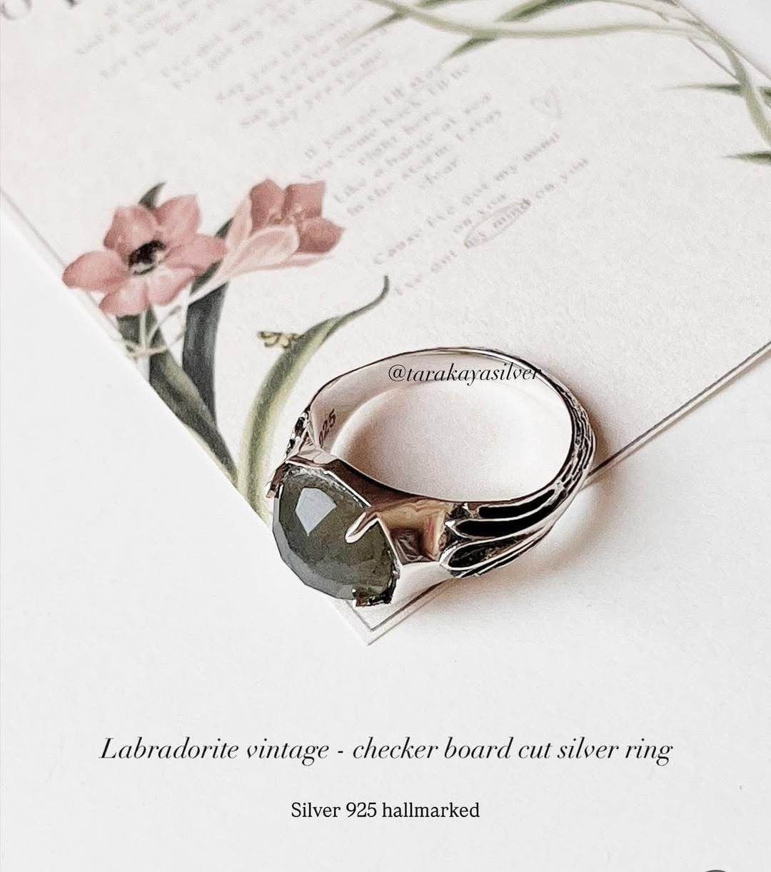 As an expert in precious gemstones, I can confidently recommend this stunning Labradorite Vintage Checker Board Silver Ring.