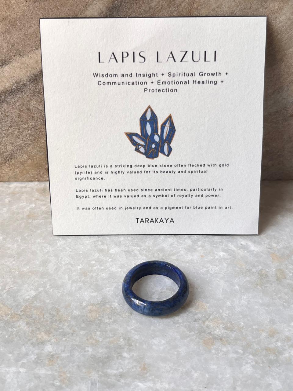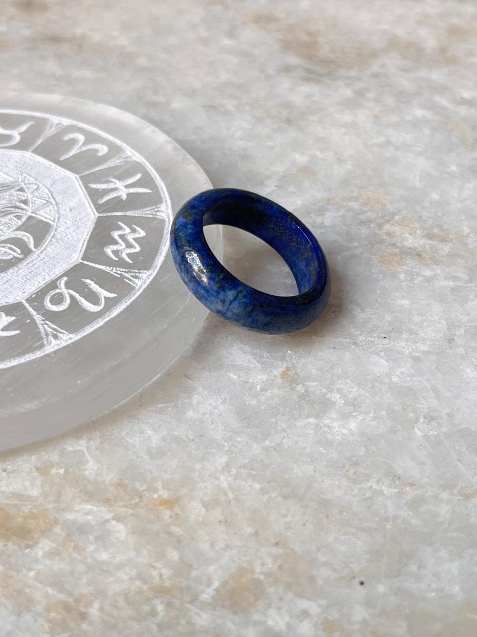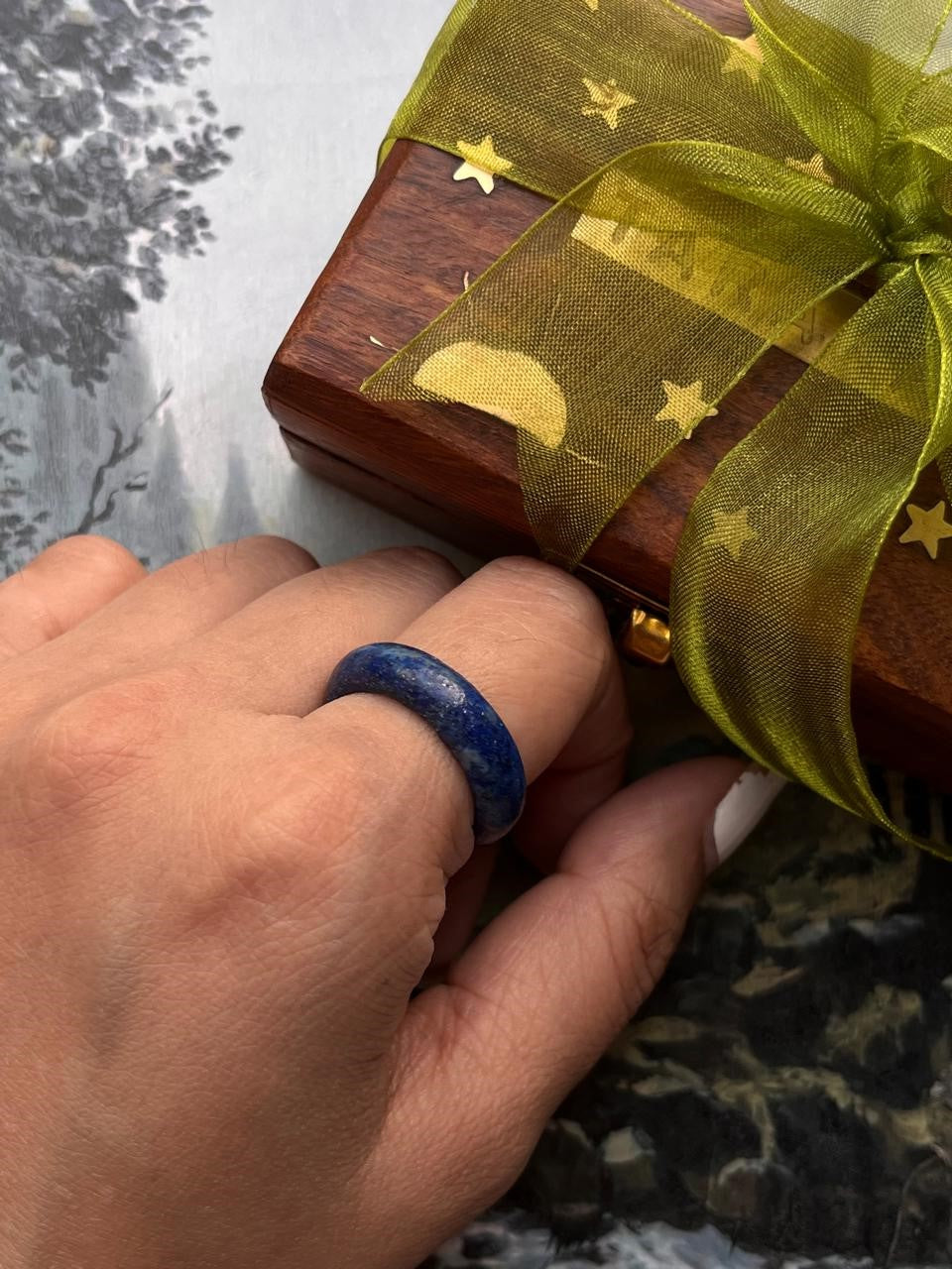 The Lapis Lazuli Crystal Band Ring is a striking piece that showcases the deep blue beauty of lapis lazuli, a stone revered for its connection to wisdom, truth, and spiritual insight. Known for its rich color and golden flecks, lapis lazuli is believed to enhance mental clarity, promote self-awareness, and encourage inner peace. Set in a sleek, minimalist band, this ring makes a bold statement while offering powerful metaphysical benefits. Ideal for those seeking both style and spiritual growth, it’s a timeless addition to any jewelry collection.