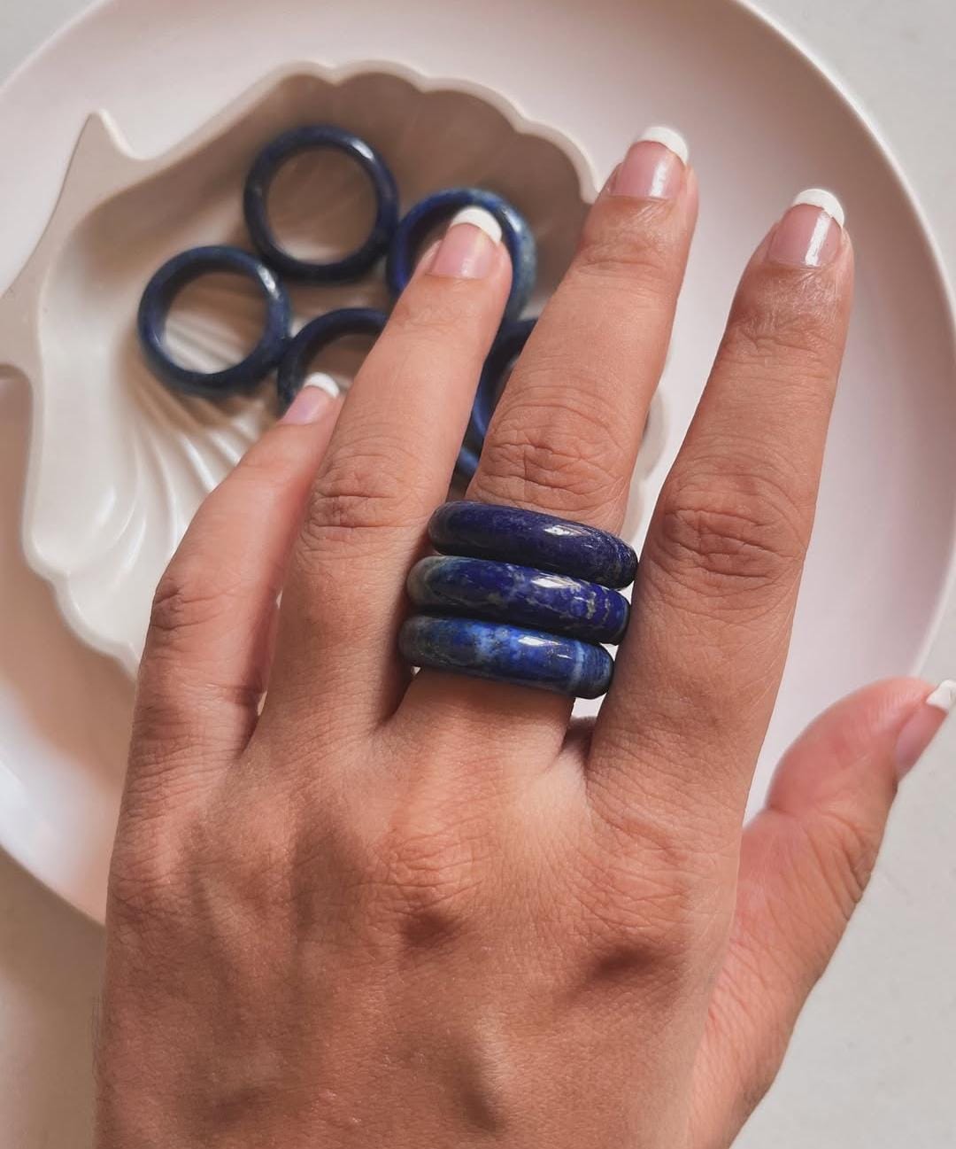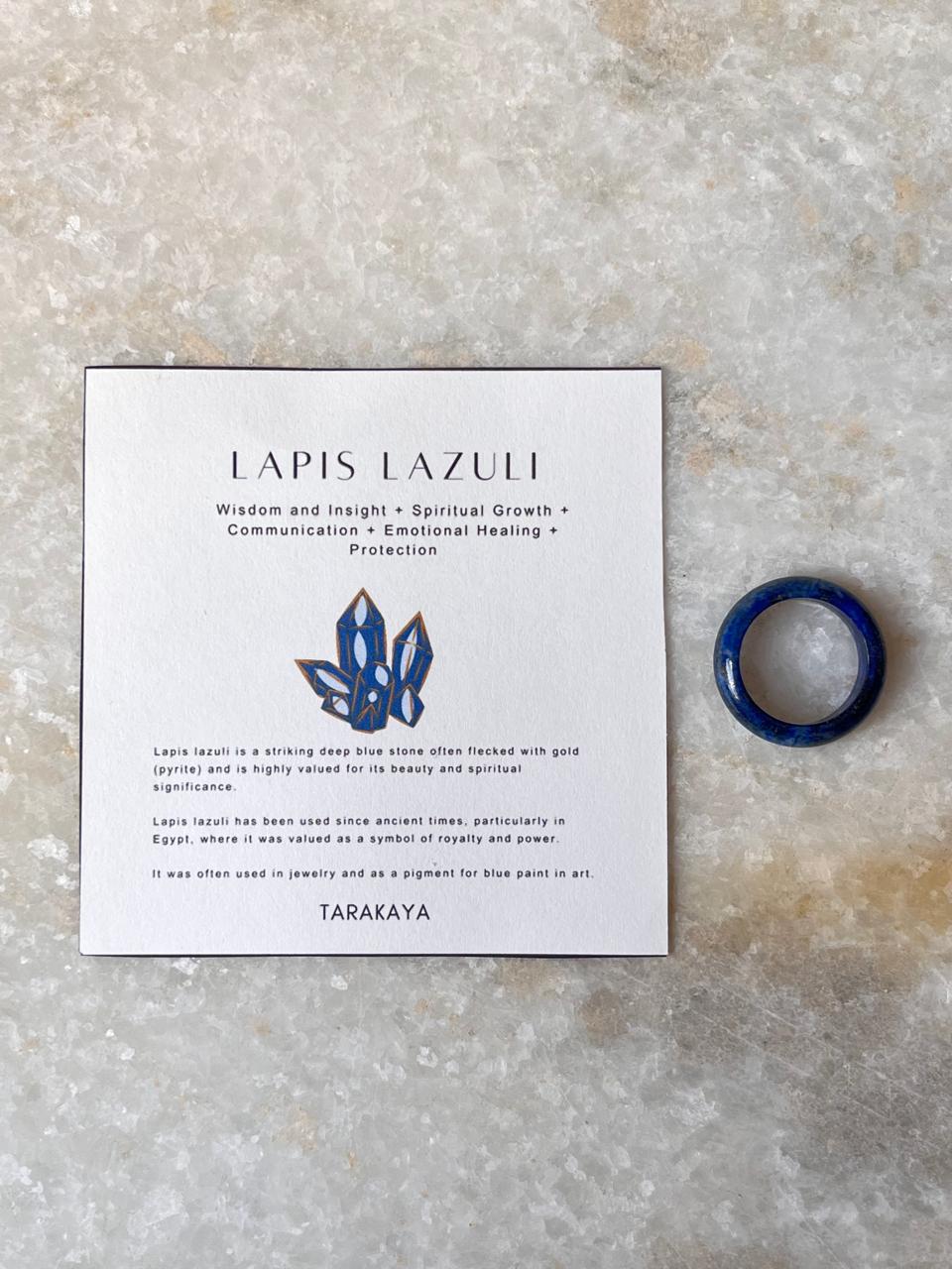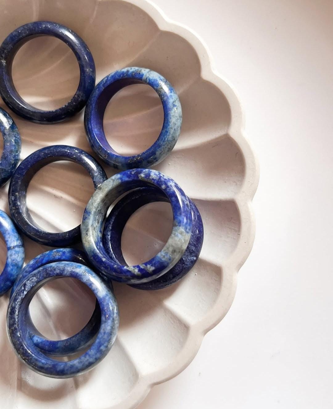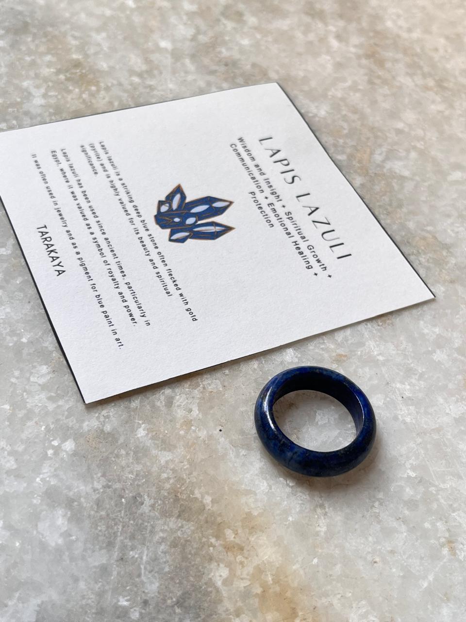 The Lapis Lazuli Crystal Band Ring is a striking piece that showcases the deep blue beauty of lapis lazuli, a stone revered for its connection to wisdom, truth, and spiritual insight. Known for its rich color and golden flecks, lapis lazuli is believed to enhance mental clarity, promote self-awareness, and encourage inner peace. Set in a sleek, minimalist band, this ring makes a bold statement while offering powerful metaphysical benefits. Ideal for those seeking both style and spiritual growth, it’s a timeless addition to any jewelry collection.