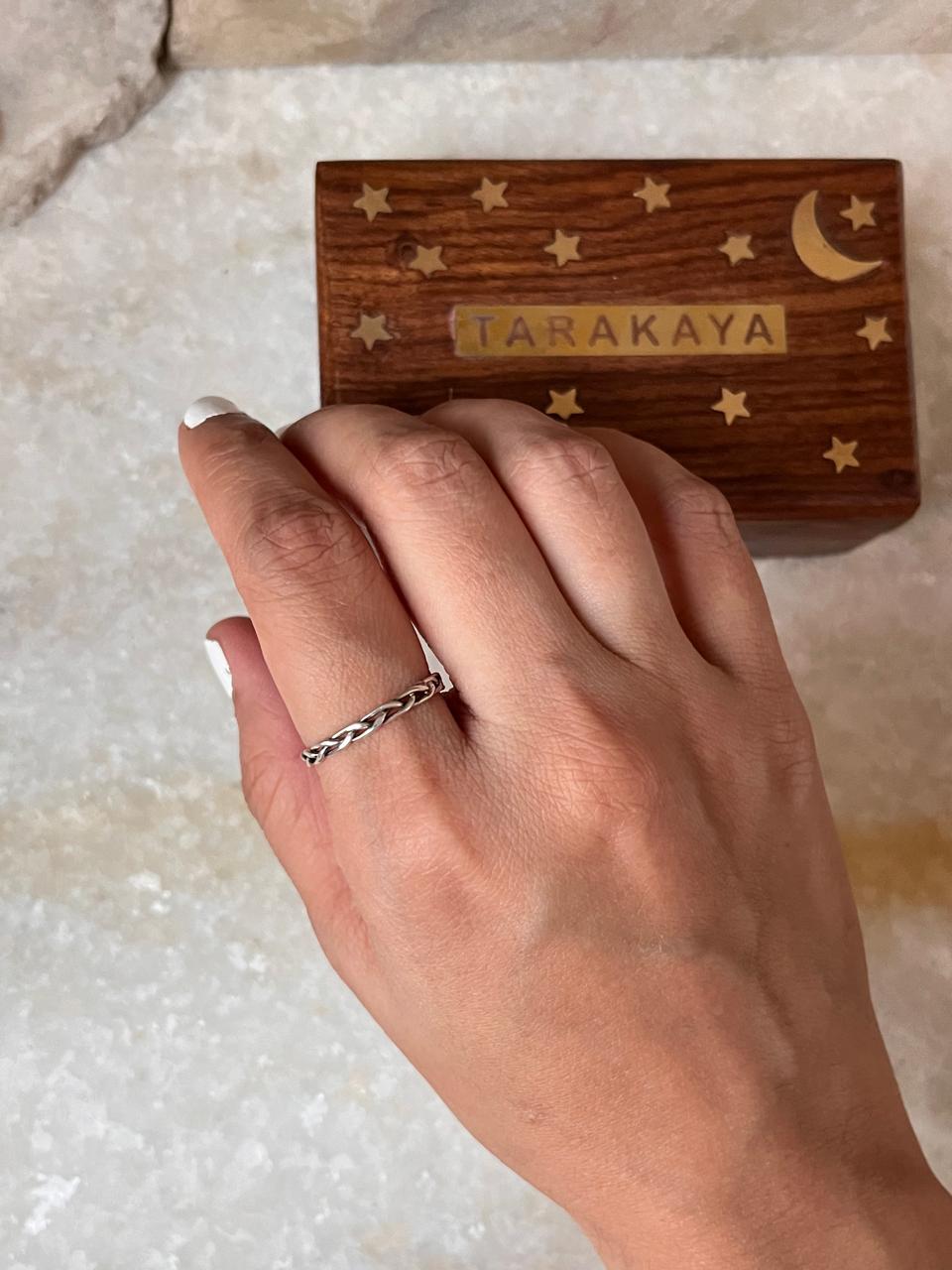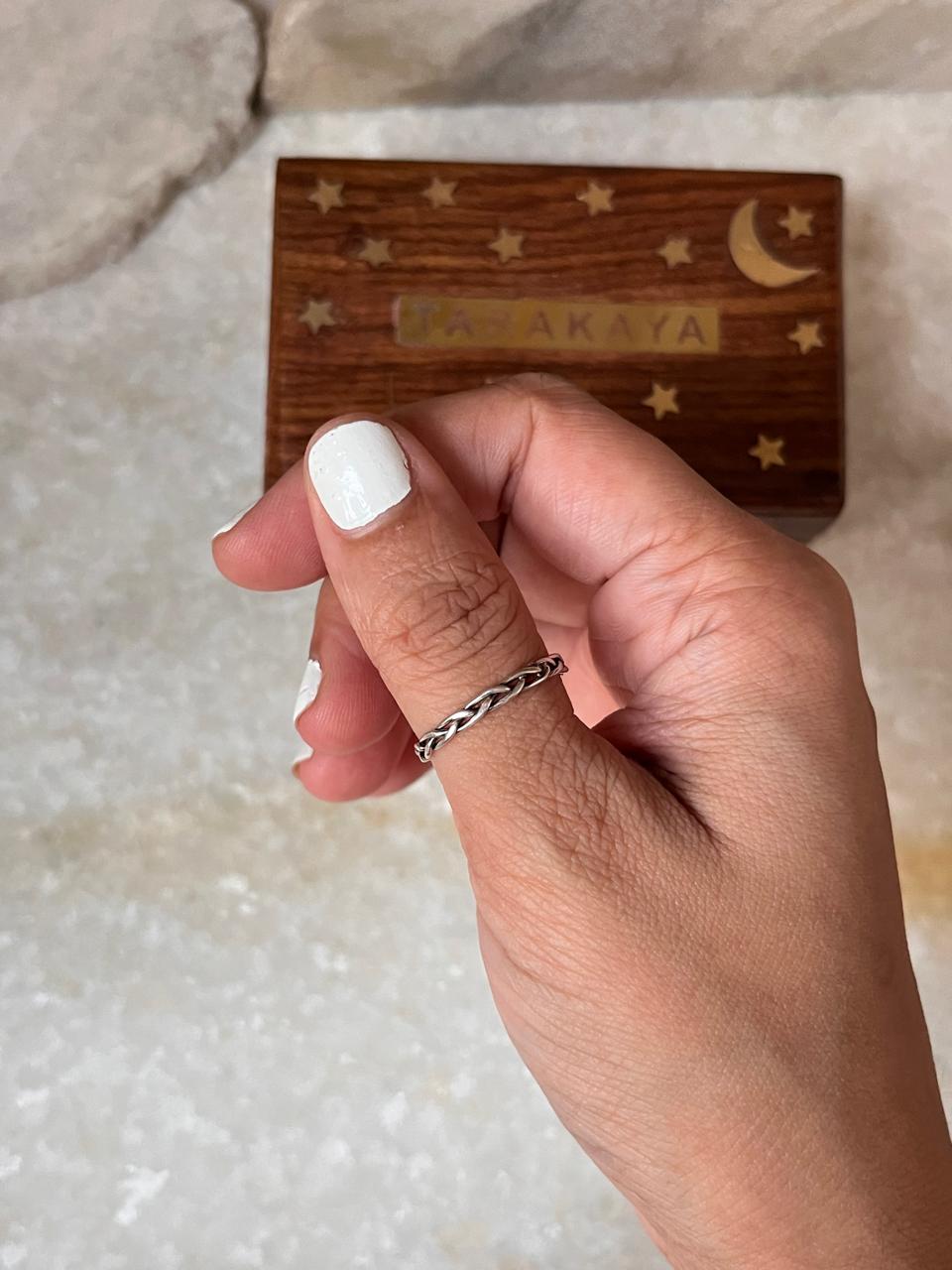 A loose twist braid ring symbolizes elegance, unity, and the intertwining of different paths.