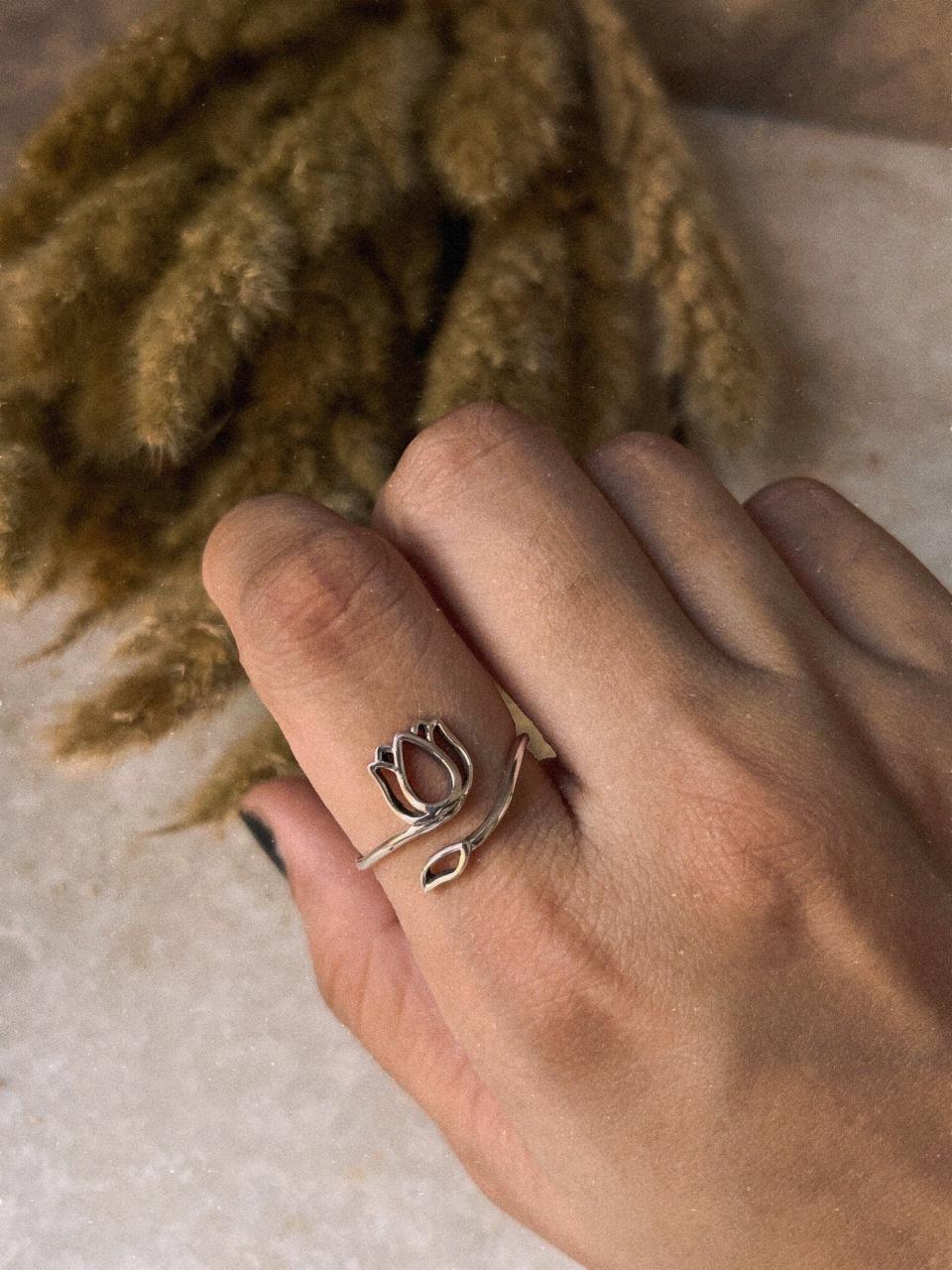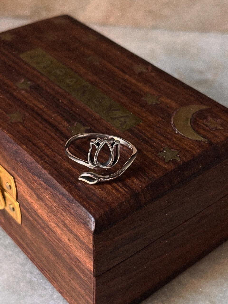 The lotus flower, which rises beautifully from the mud, represents personal growth and spiritual awakening. Worn as a reminder of the potential for transformation and the beauty that can emerge from life's challenges, the lotus ring encourages the wearer to embrace their inner strength and pursue a path of self-discovery and renewal.