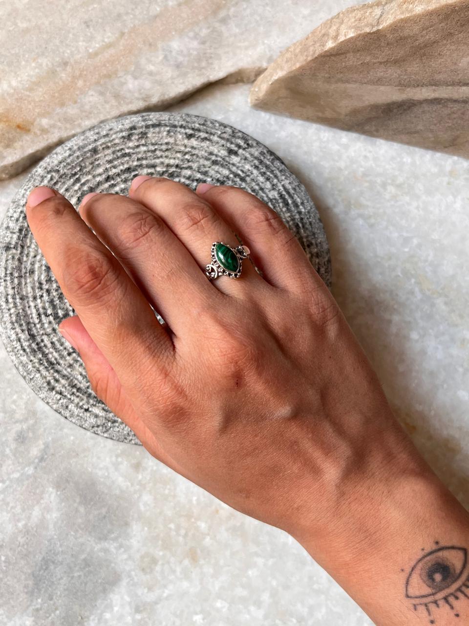 Malachite Boho Rawa 925 Sterling Silver Ring
