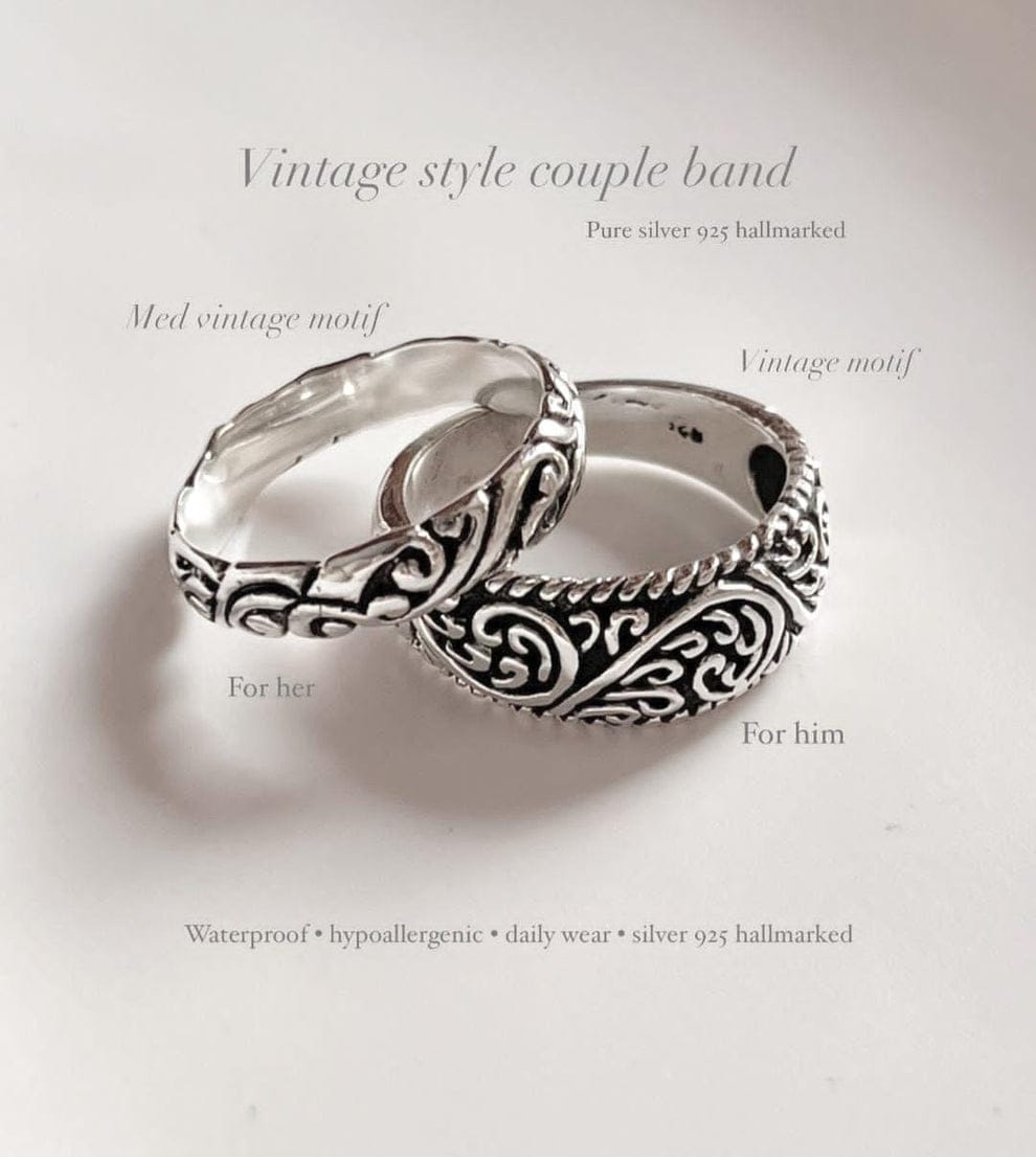 The Medium, Thick Vintage Motif Stack Set Couple 925 Sterling Silver Ring is a striking and timeless design that beautifully symbolizes love and unity. Featuring intricate vintage motifs, this set of rings exudes an antique charm while offering modern durability with high-quality 925 sterling silver. The medium, thick bands create a bold, yet elegant presence, making these rings perfect for couples seeking a meaningful and stylish way to express their commitment. Whether worn individually or stacked together, the detailed design reflects a deep connection, timeless love, and shared history.