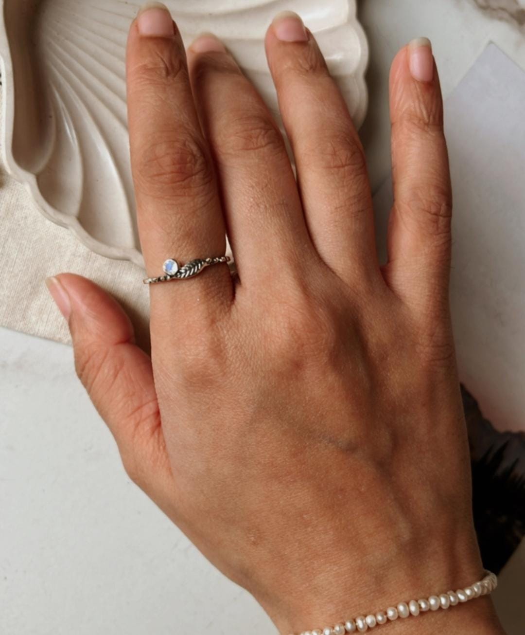 Crafted with a delicate design, this Moonstone Dainty Forest Silver Ring is an elegant addition to any jewelry collection.