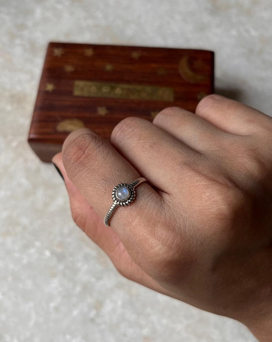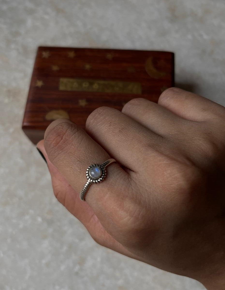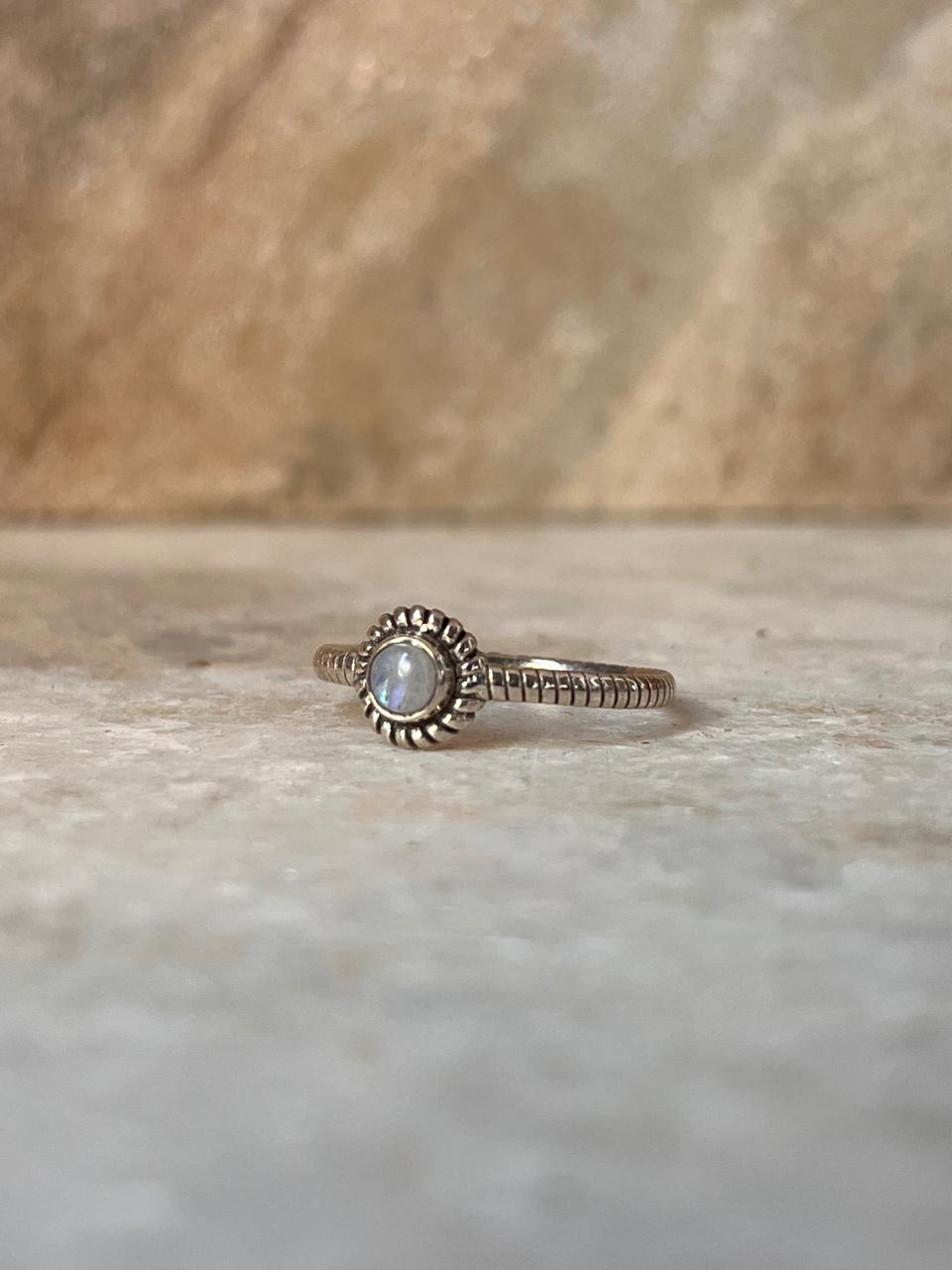 Moonstone Round Boho Stackable 925 Sterling Silver Ring