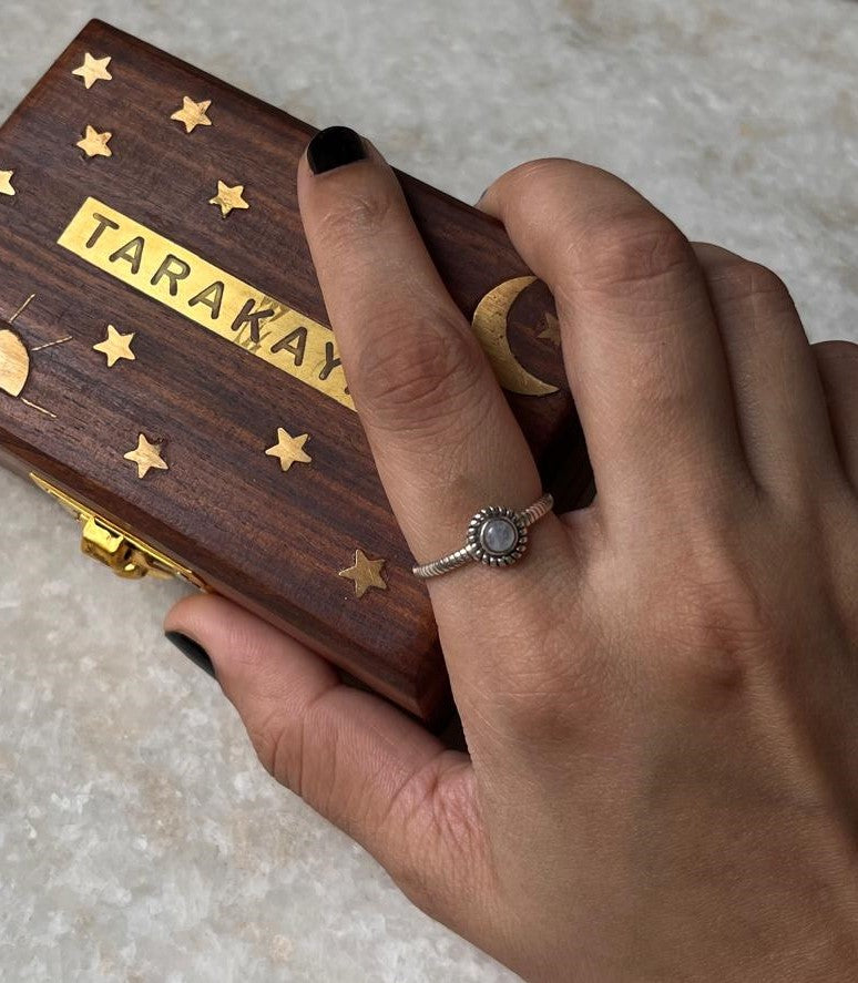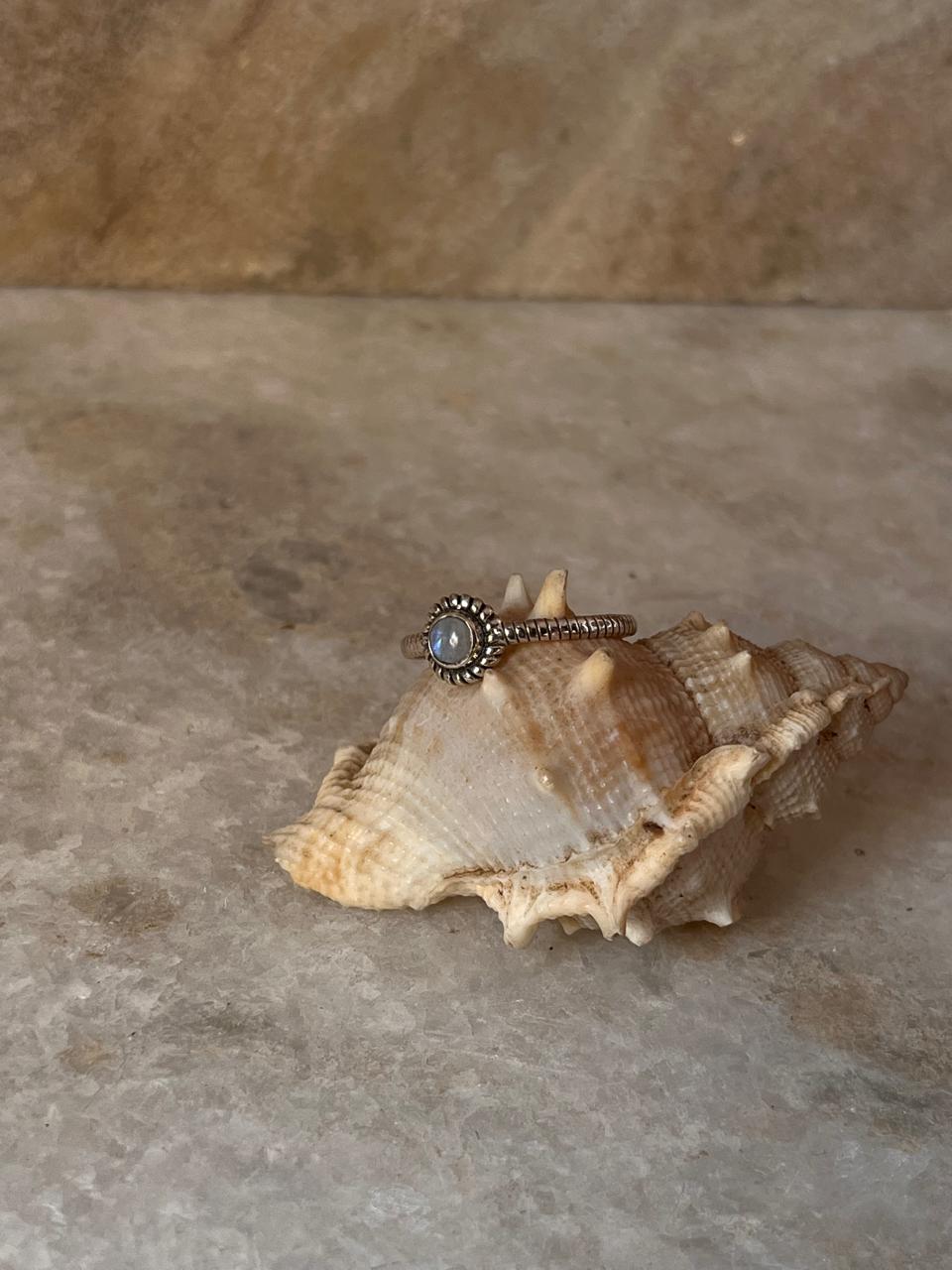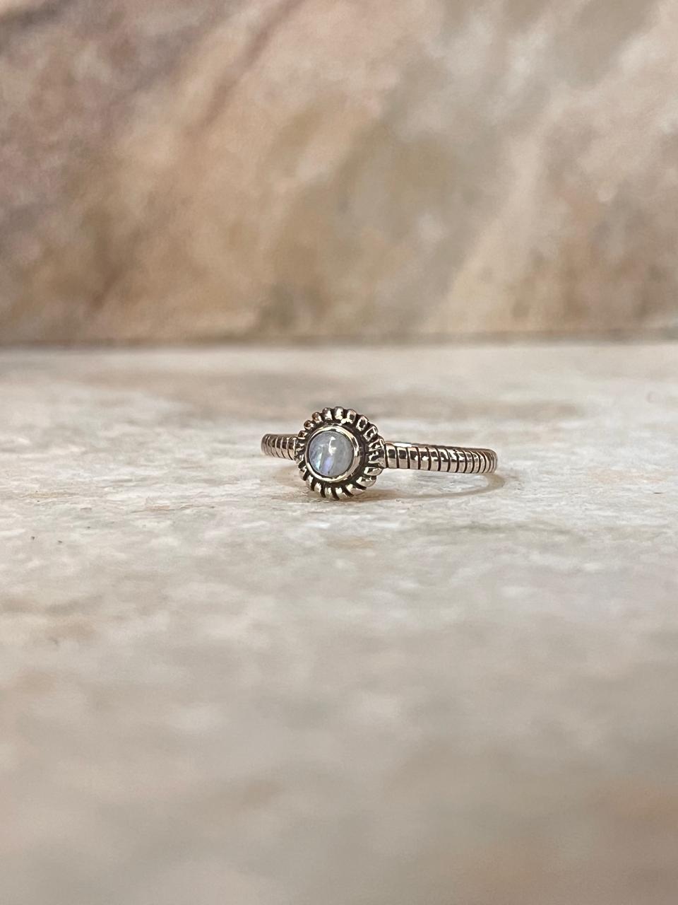 Moonstone Round Boho Stackable 925 Sterling Silver Ring