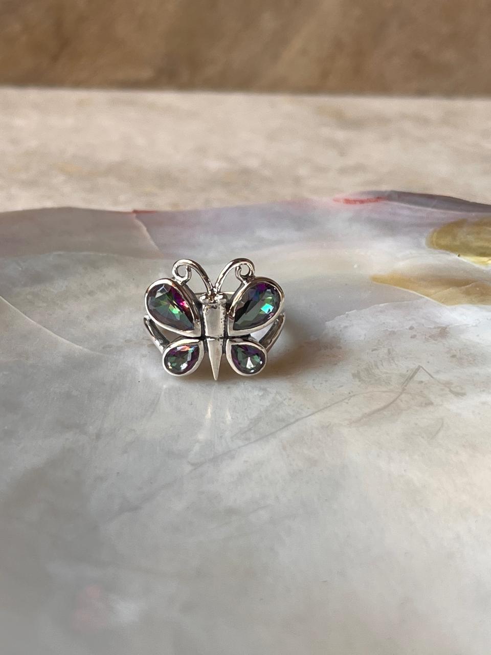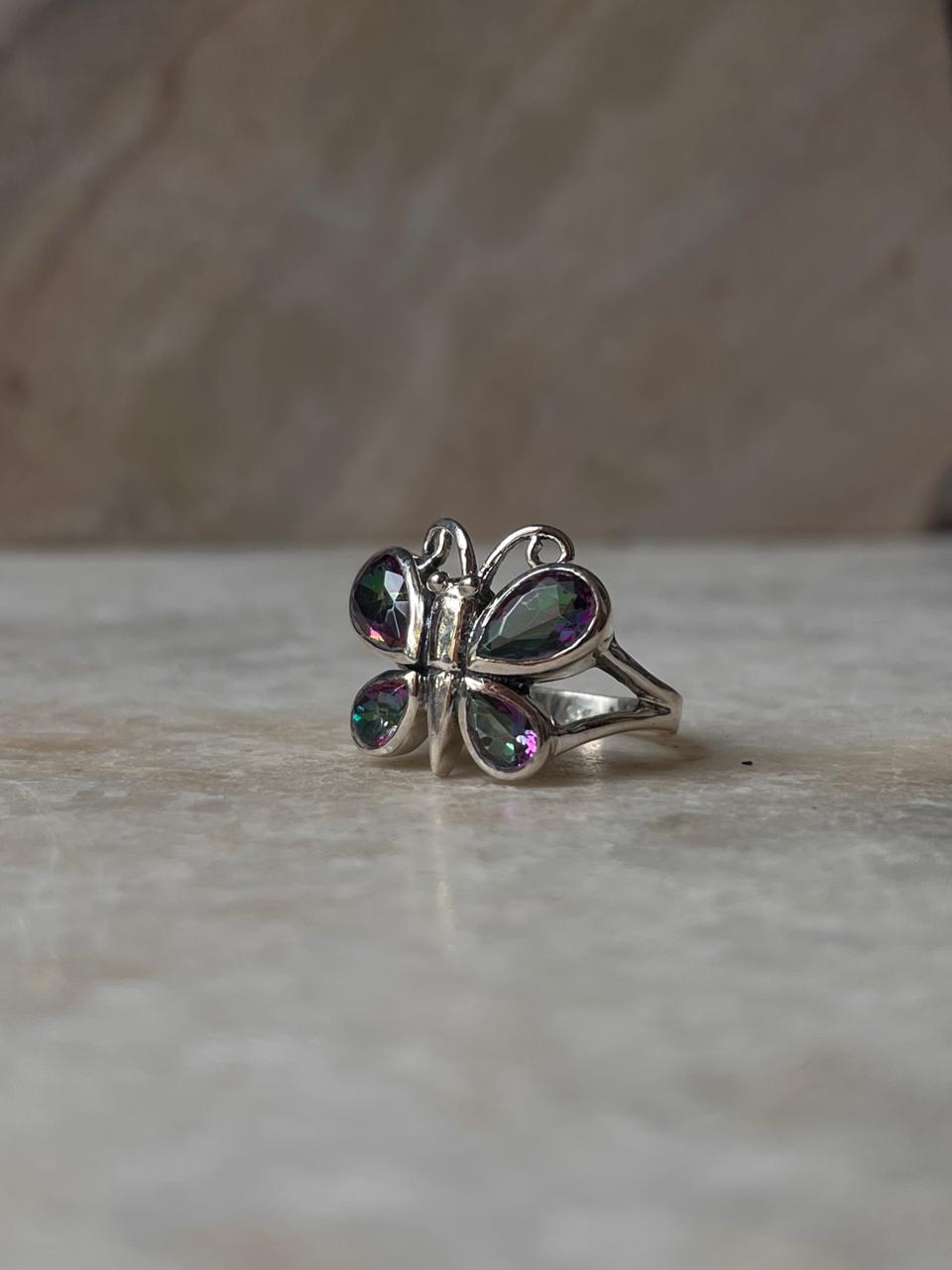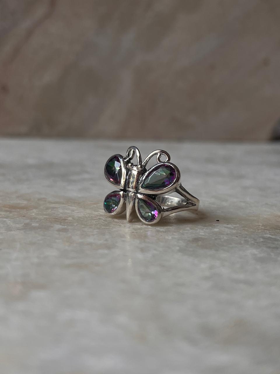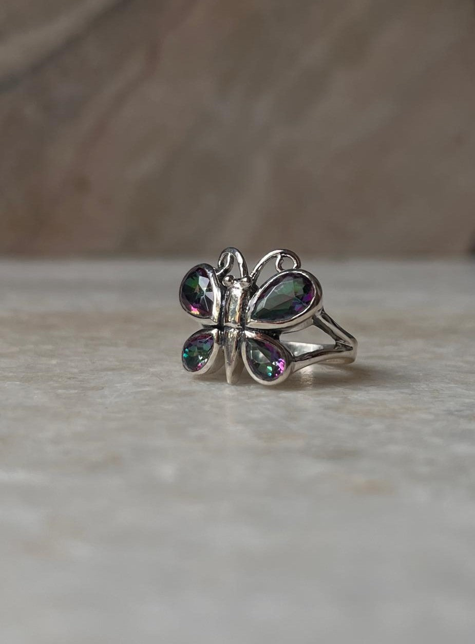 Mystic Topaz Butterfly 925 Sterling Silver Ring