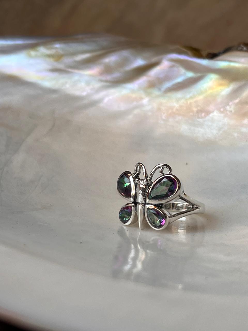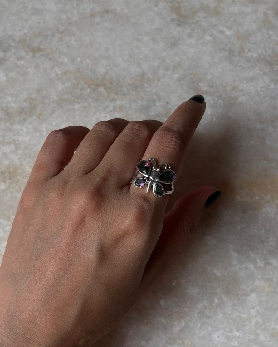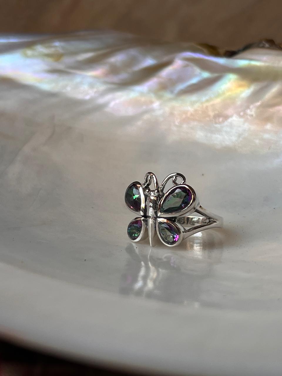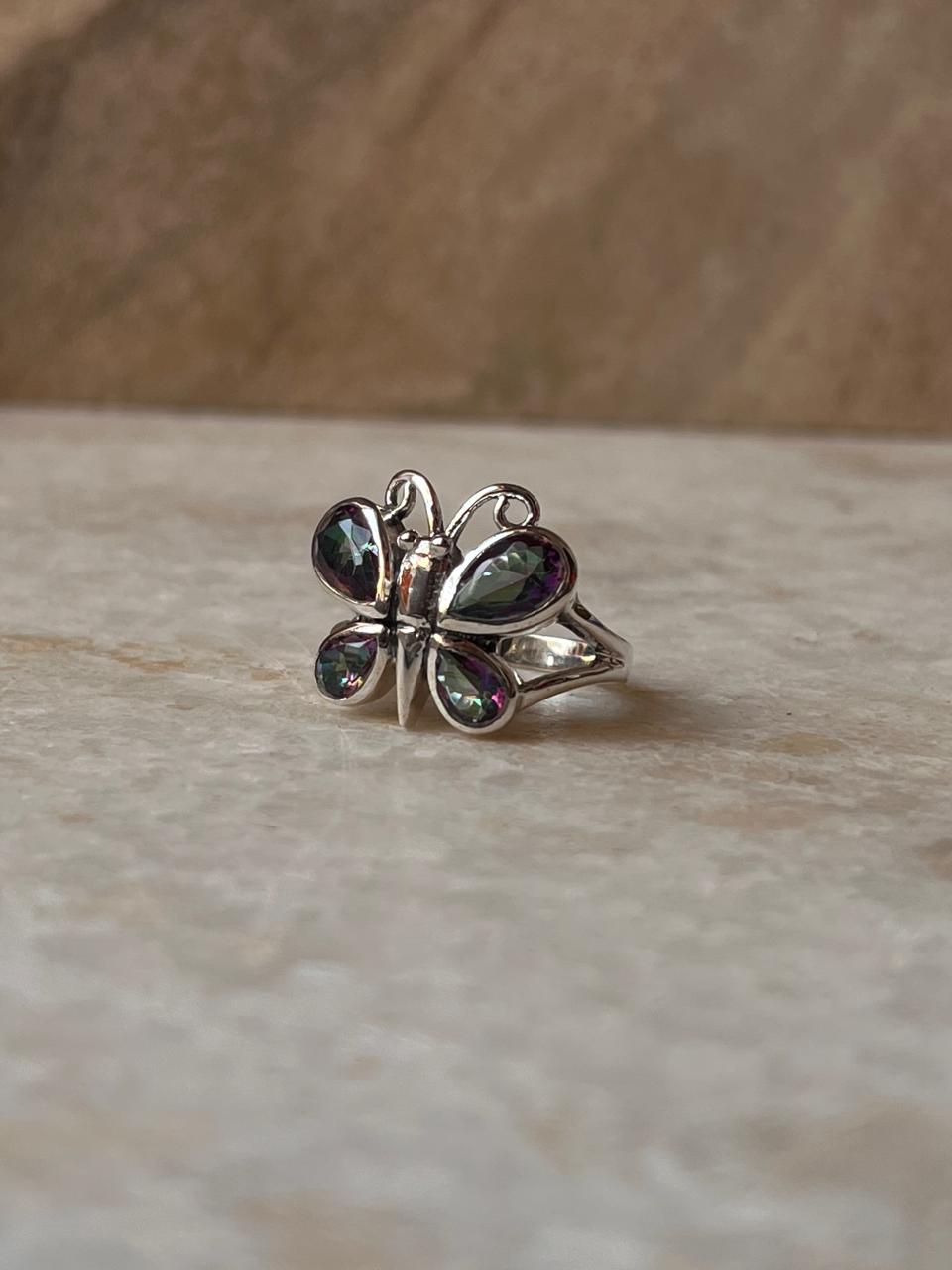 Mystic Topaz Butterfly 925 Sterling Silver Ring