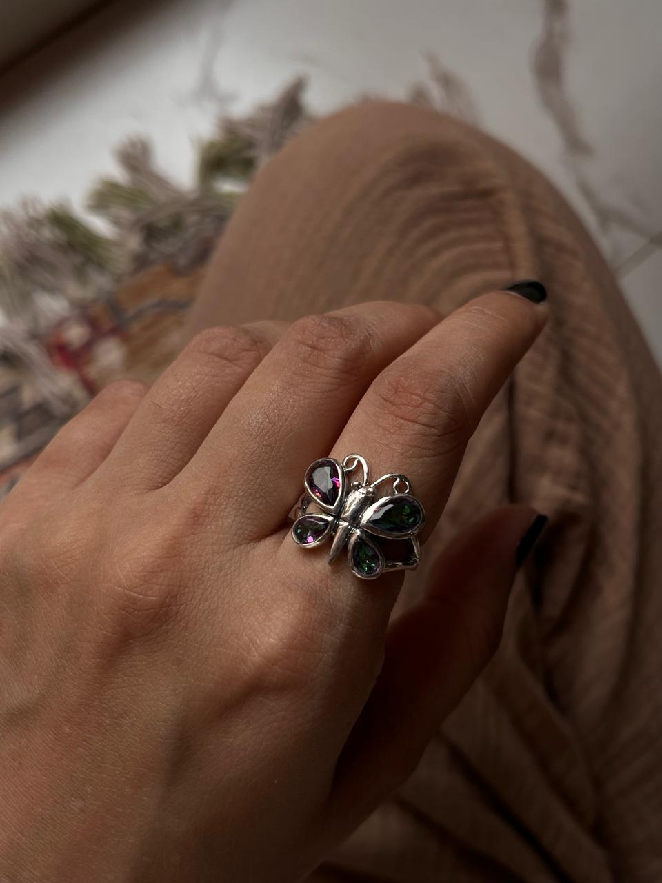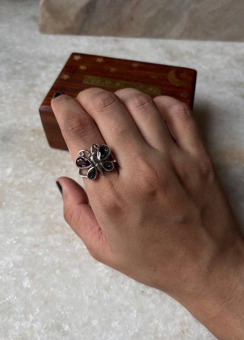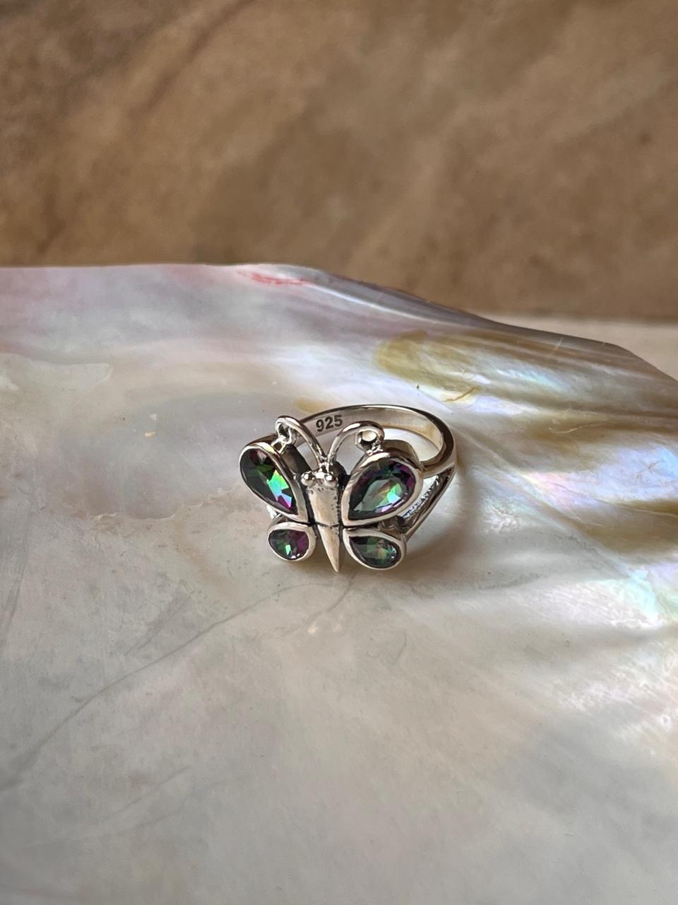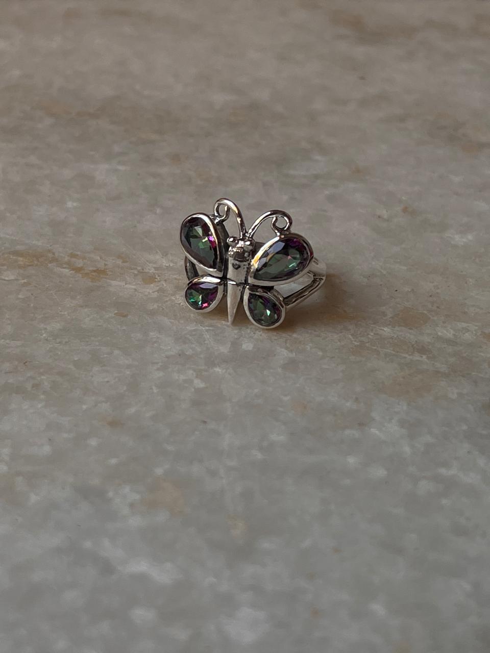 Mystic Topaz Butterfly 925 Sterling Silver Ring