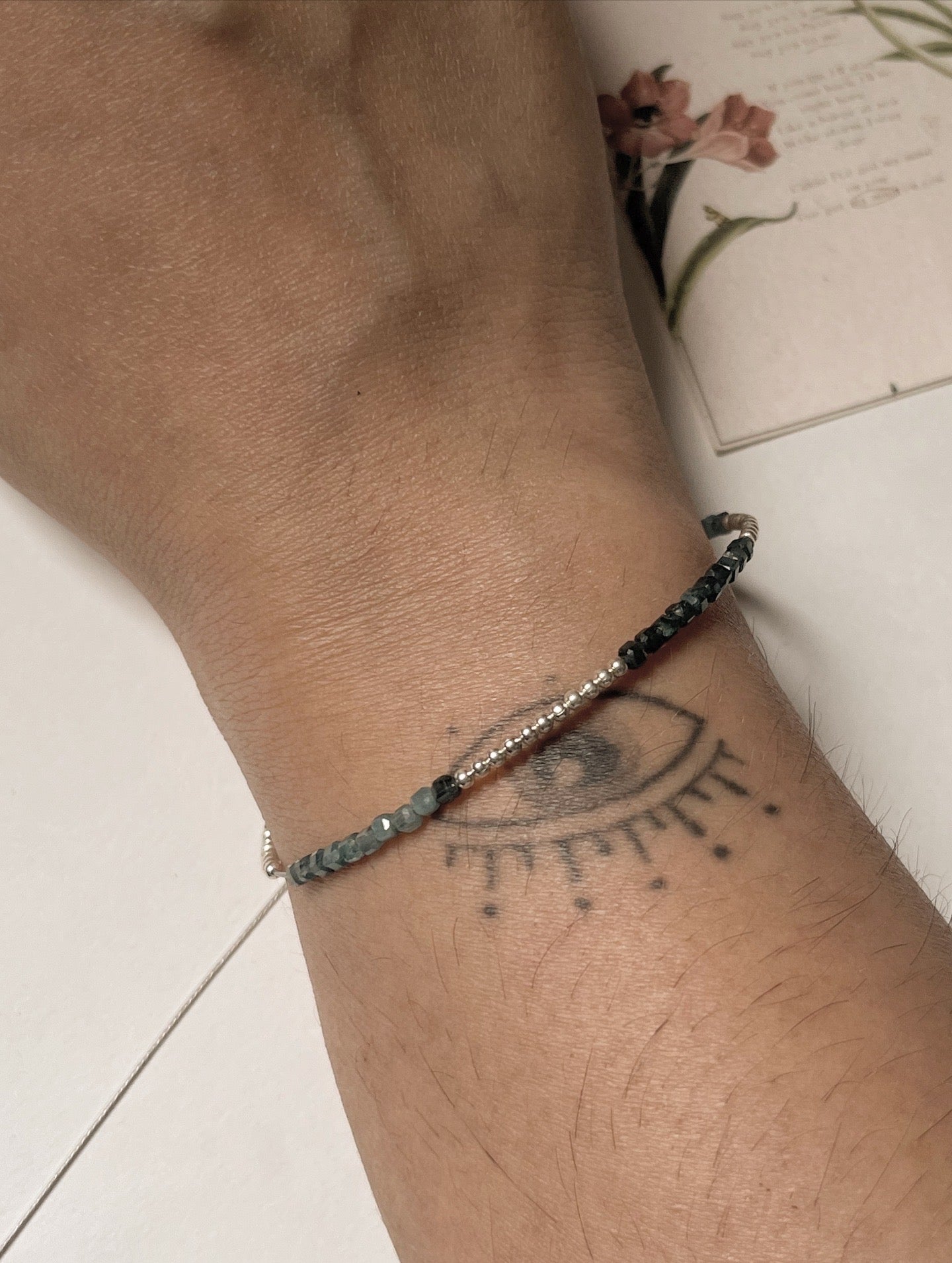 Natural Grandidierite Box Gradient & Silver 2mm Beads Handcrafted 925 Sterling Silver Bracelet