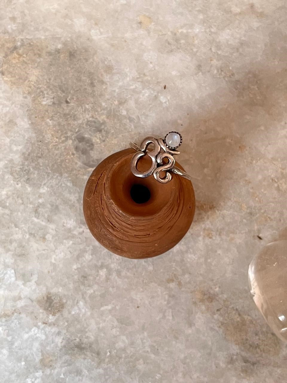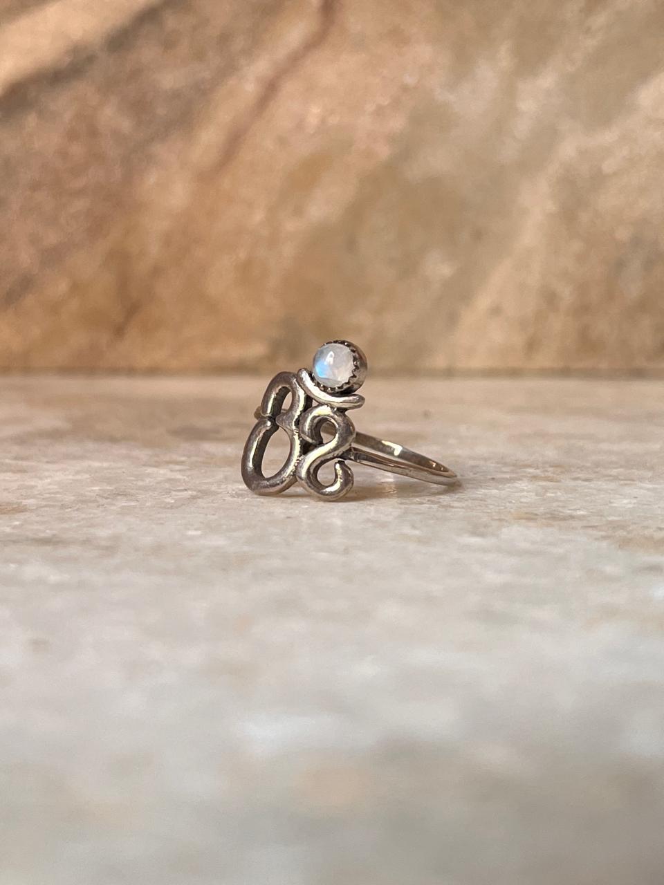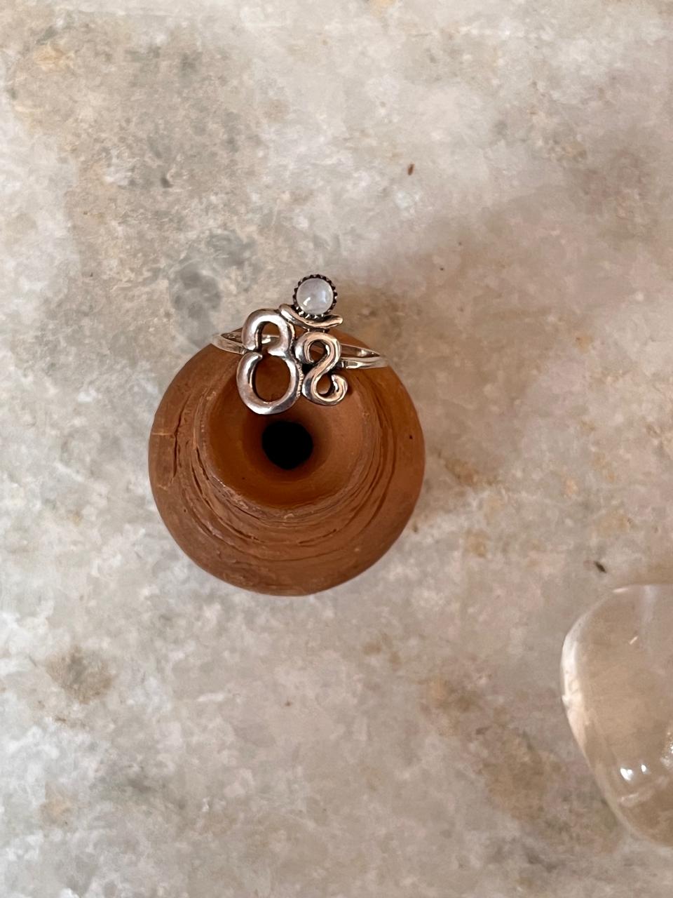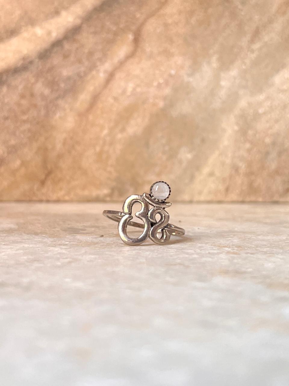 Om/ Aum Moonstone 925 Sterling Silver Ring