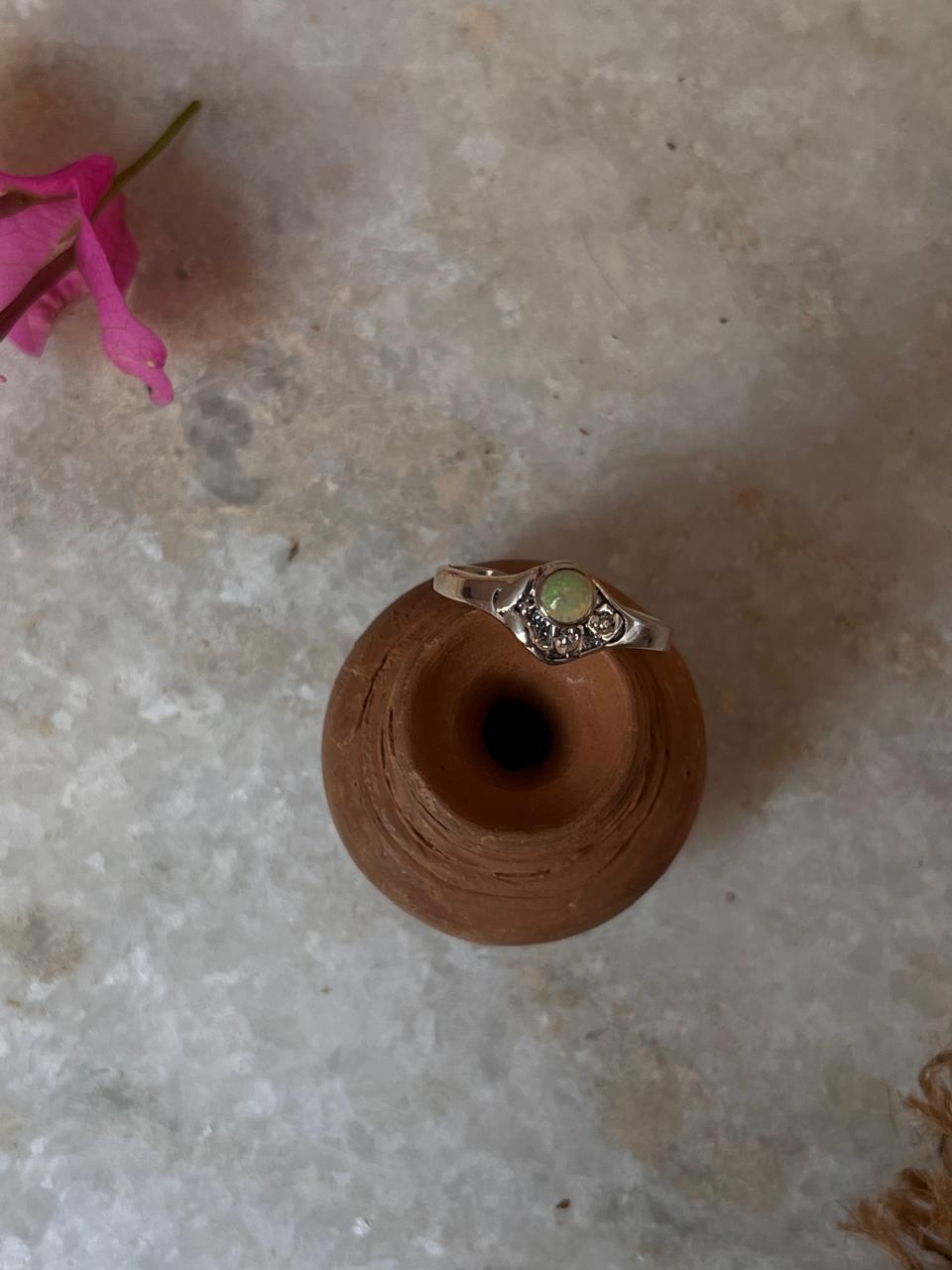 The Natural Ethiopian Opal Cherry Blossom 925 Sterling Silver Ring beautifully combines the enchanting play of colors in Ethiopian opal with the delicate symbolism of cherry blossoms. Ethiopian opal is prized for its vibrant, shifting hues and is believed to inspire creativity, passion, and emotional healing. The cherry blossom design represents renewal, beauty, and the fleeting nature of life. Set in sterling silver, this ring captures both natural wonder and poetic elegance, making it a meaningful and eye-catching piece.