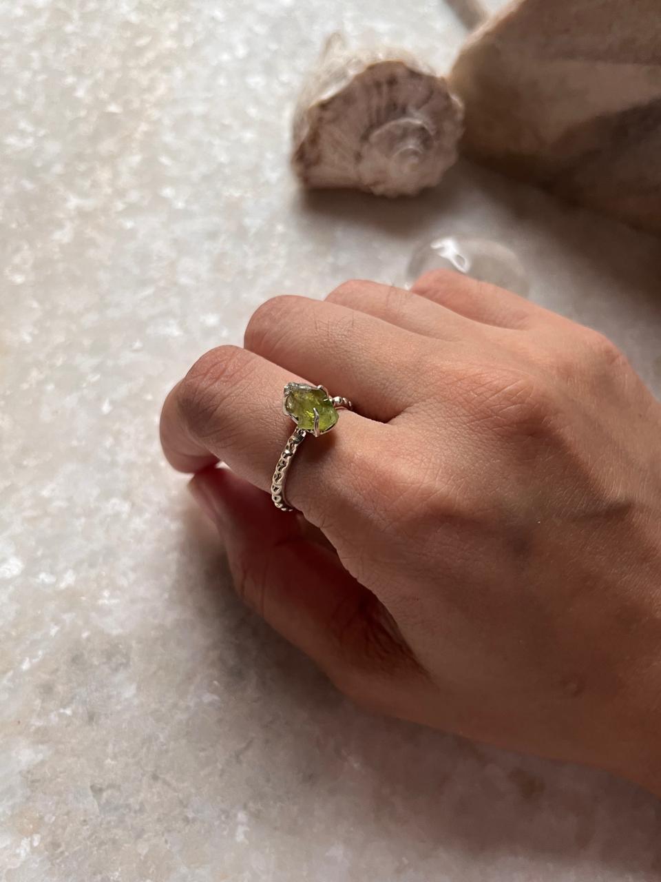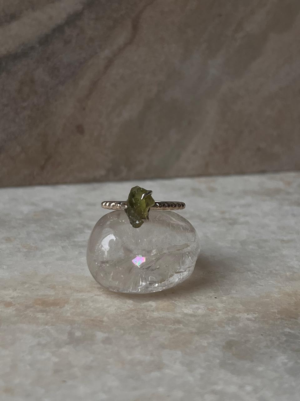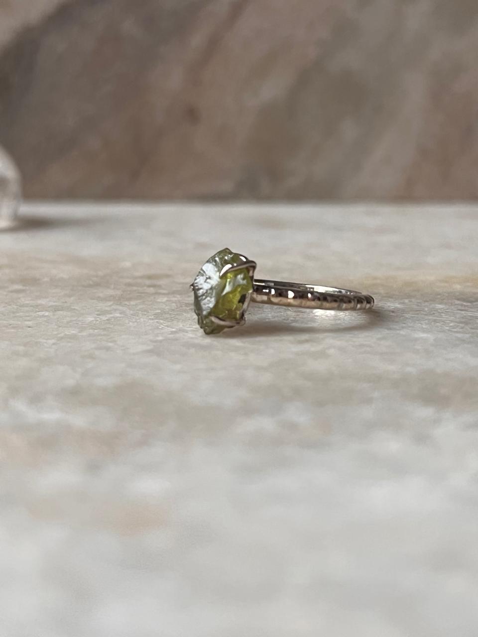 Peridot Raw Uncut Dot Band 925 Sterling Silver Ring