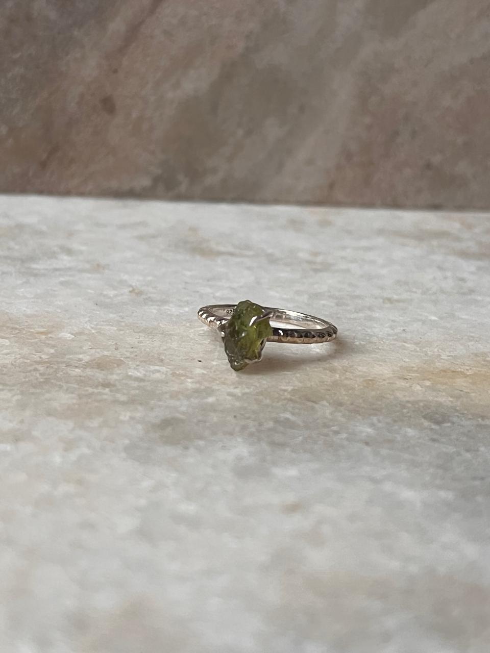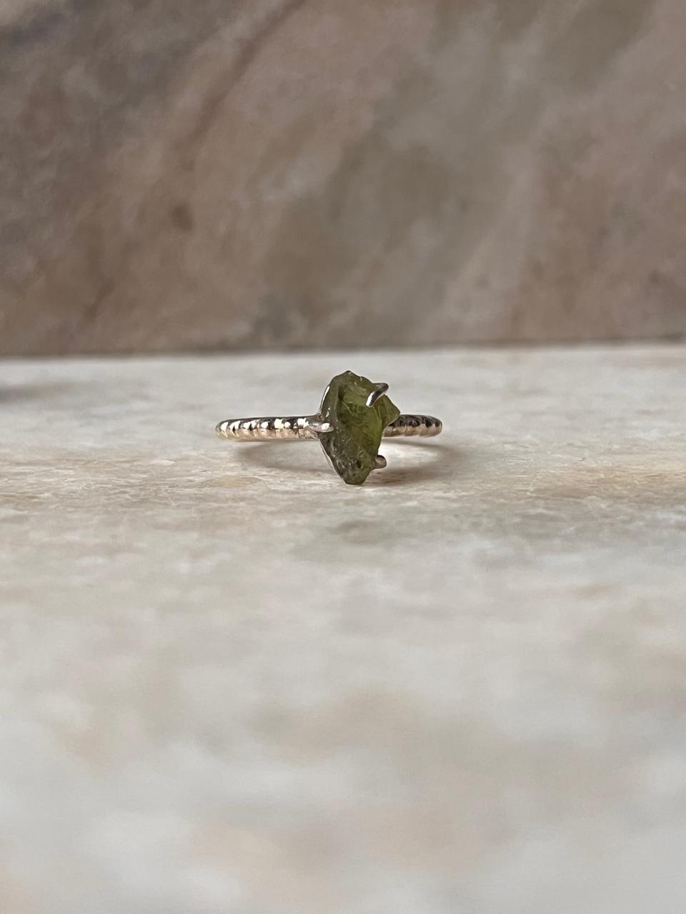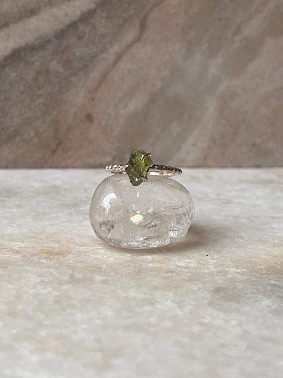 Peridot Raw Uncut Dot Band 925 Sterling Silver Ring