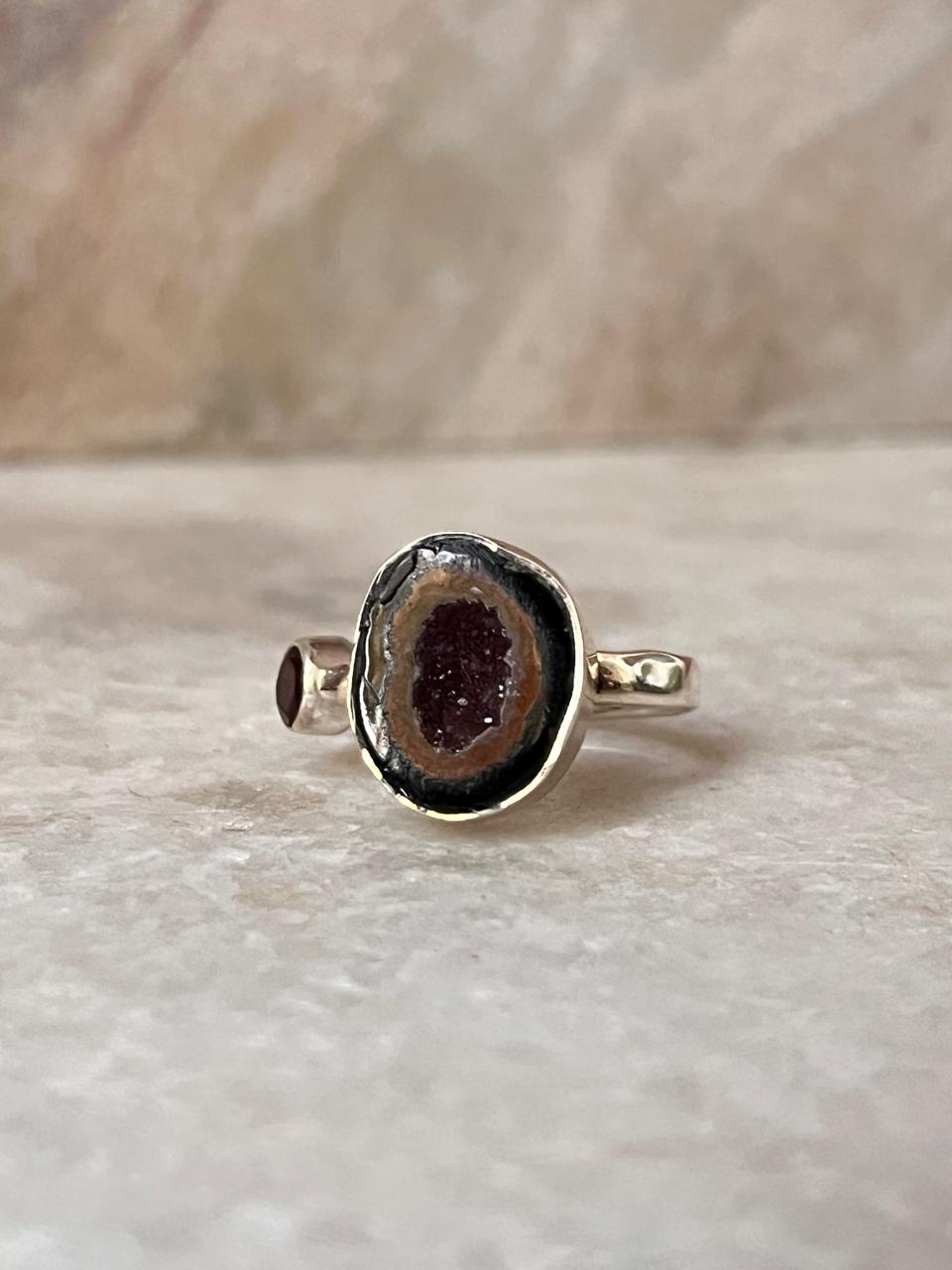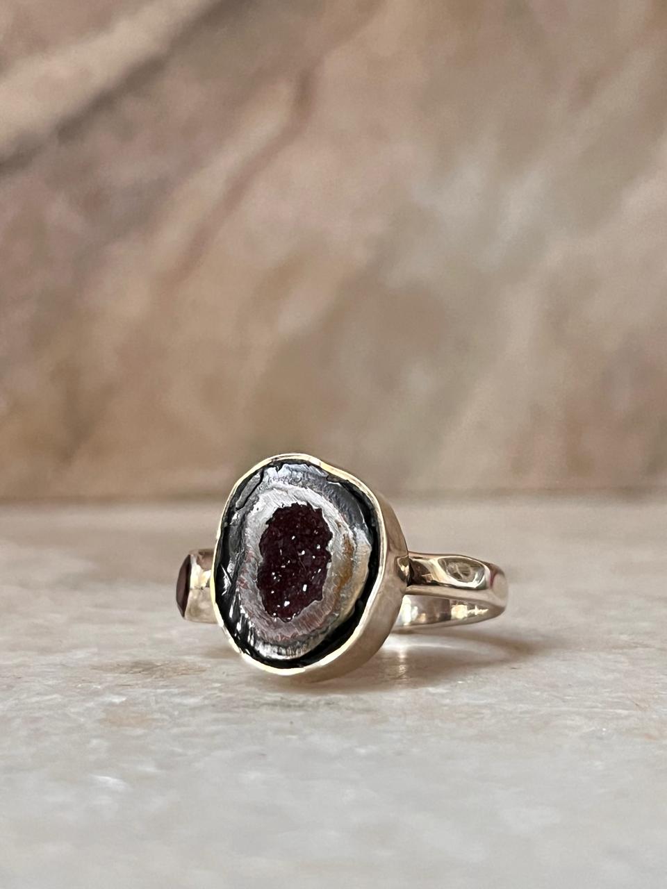 Red Coconut Druzy Geode With Garnet Sterling Silver 925 Ring